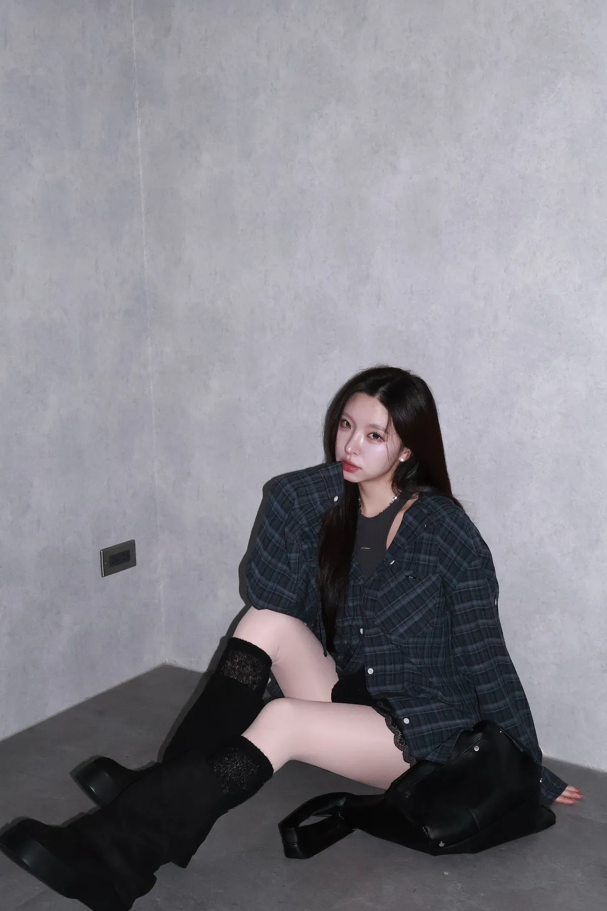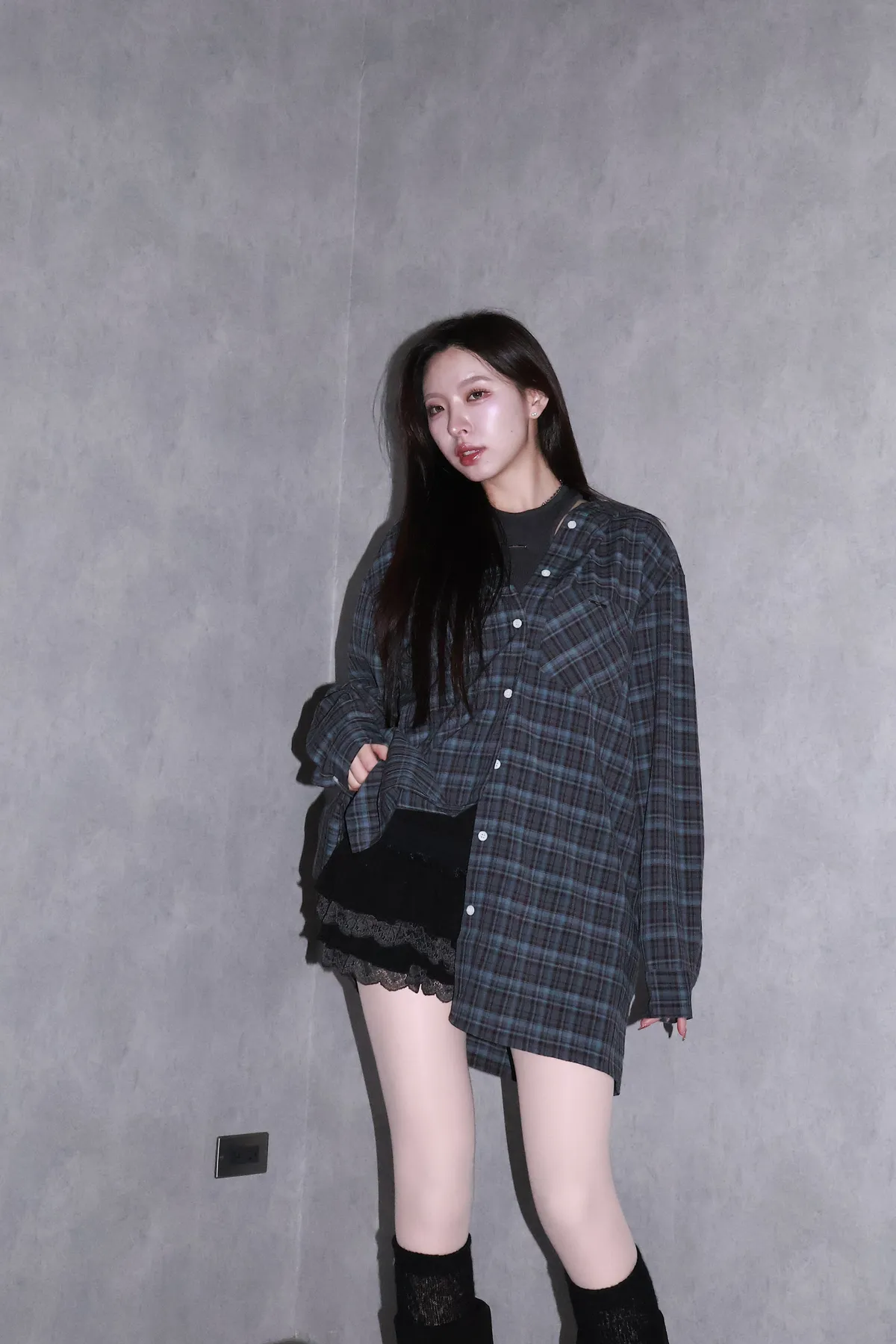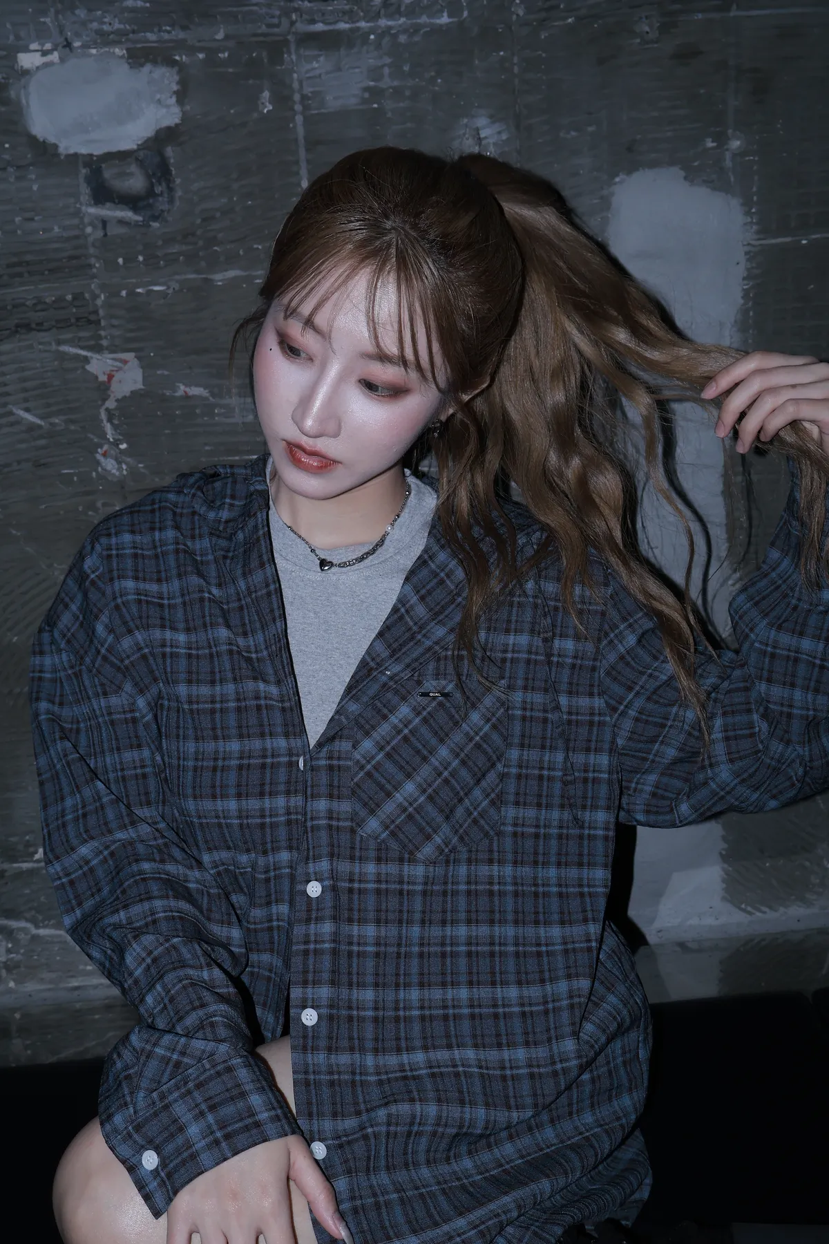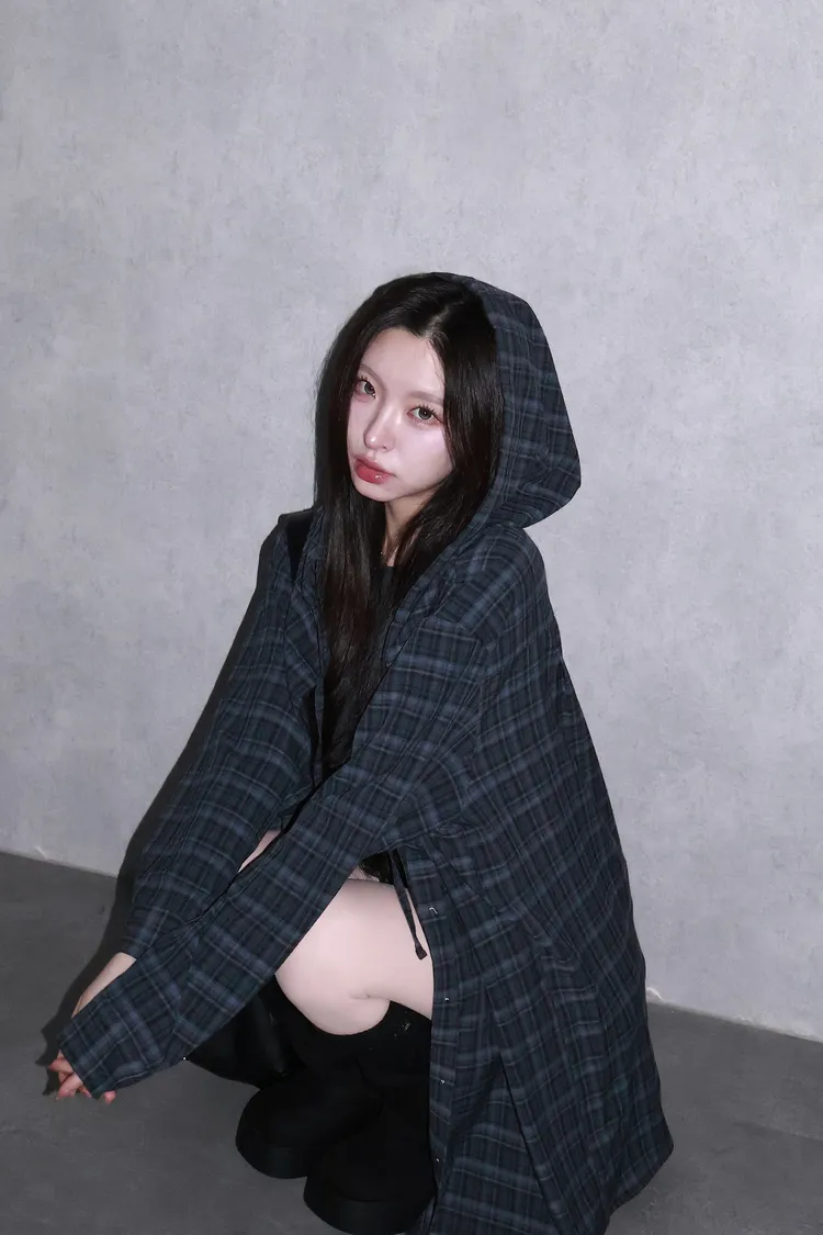 🇰🇷Made by Qual!暗藍浮光格紋襯衫(藍/灰)