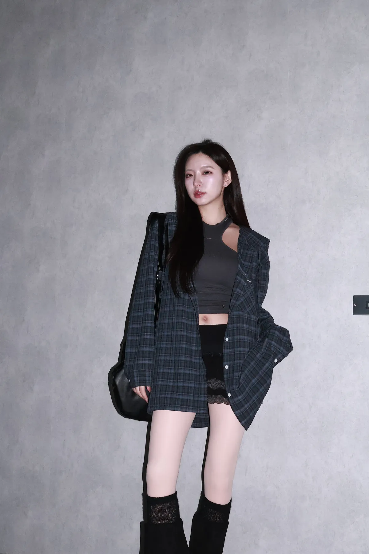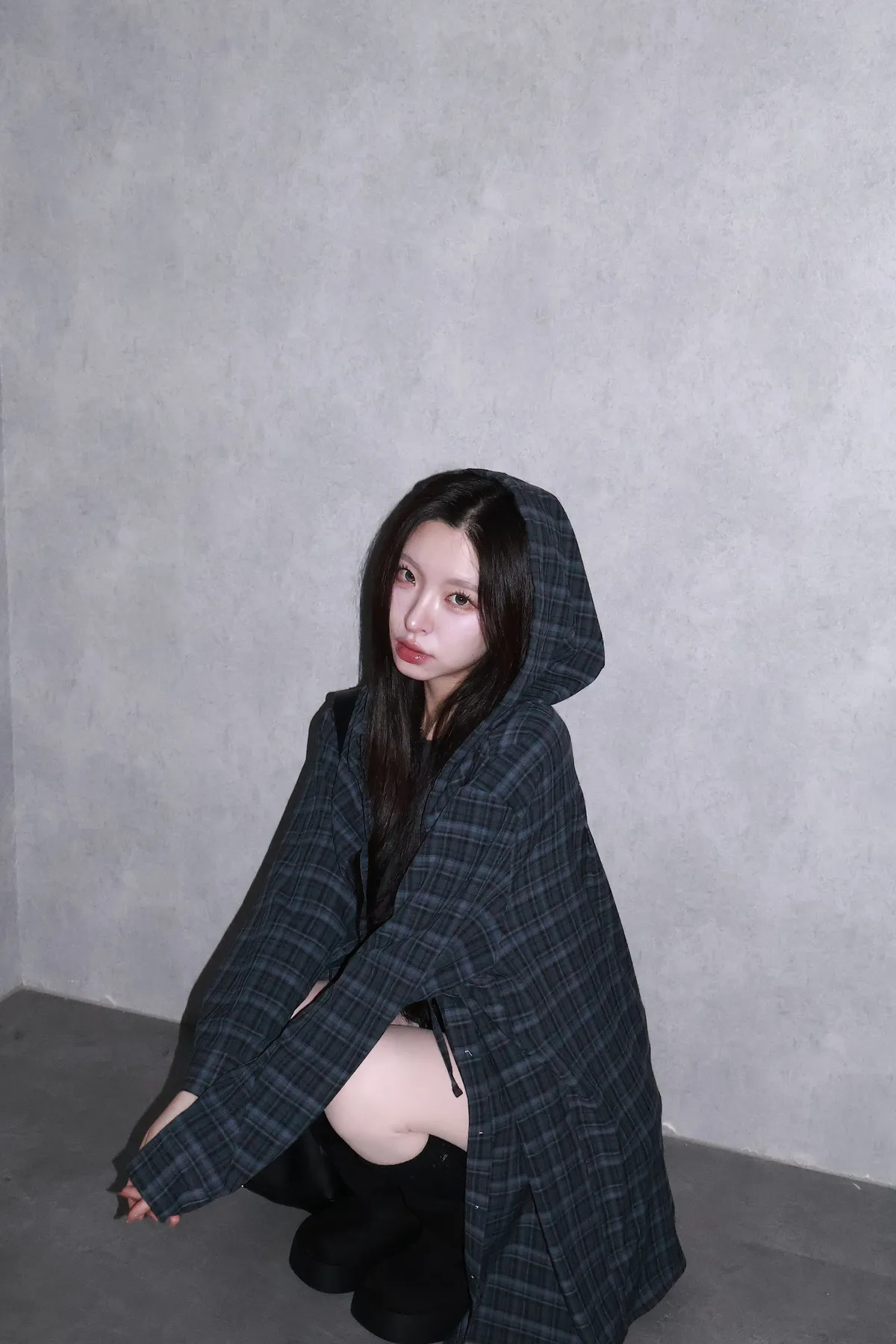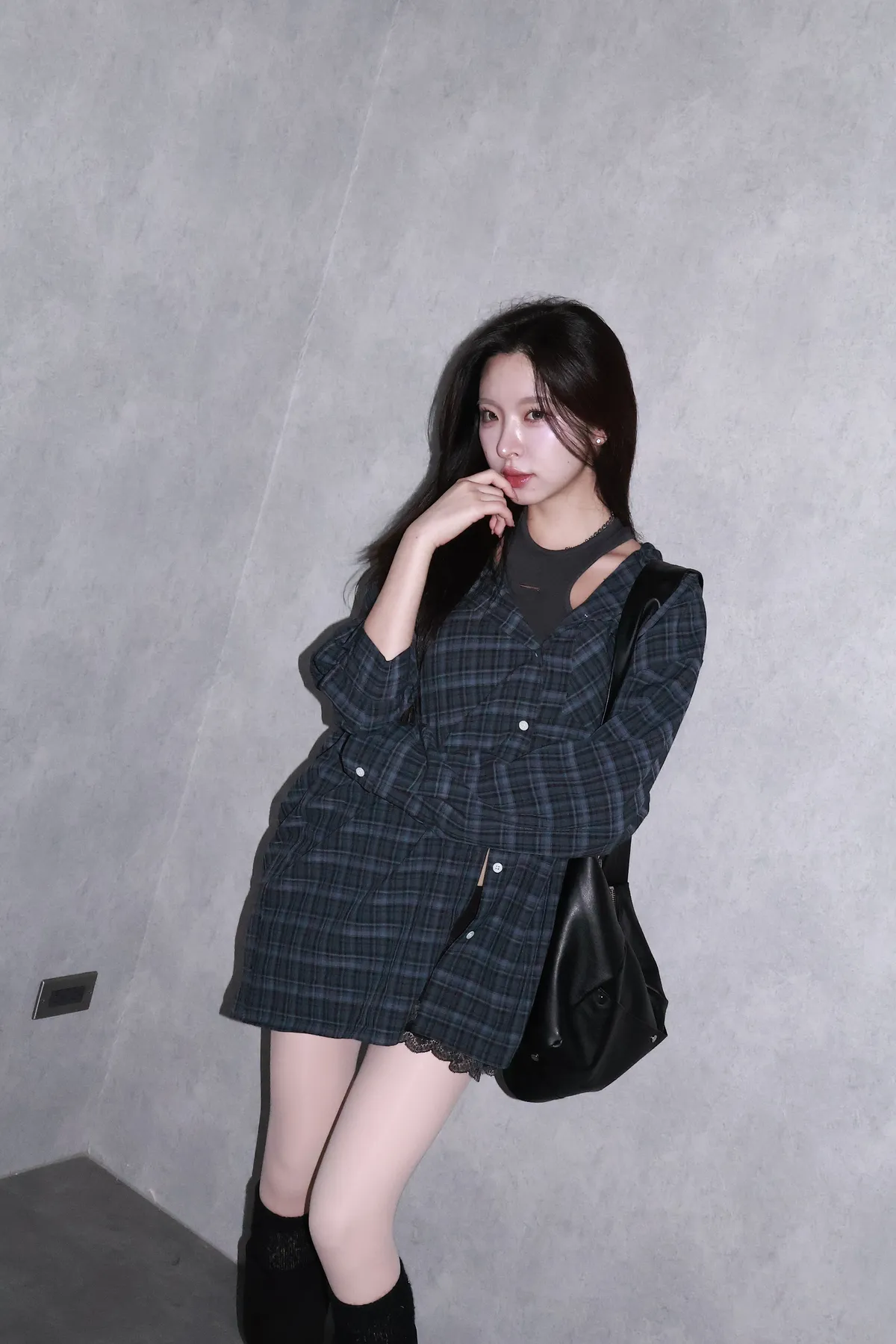 🇰🇷Made by Qual!暗藍浮光格紋襯衫(藍/灰)