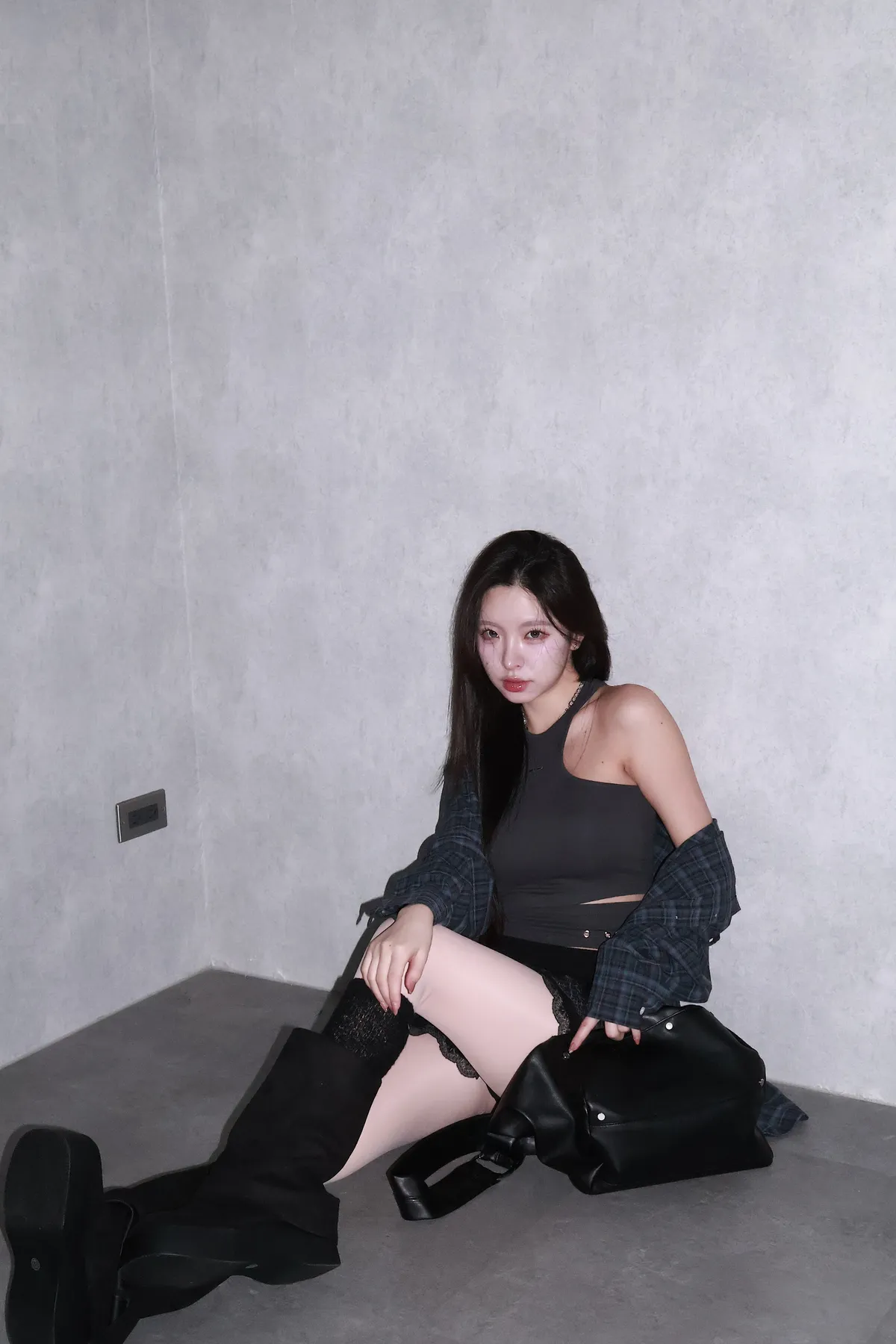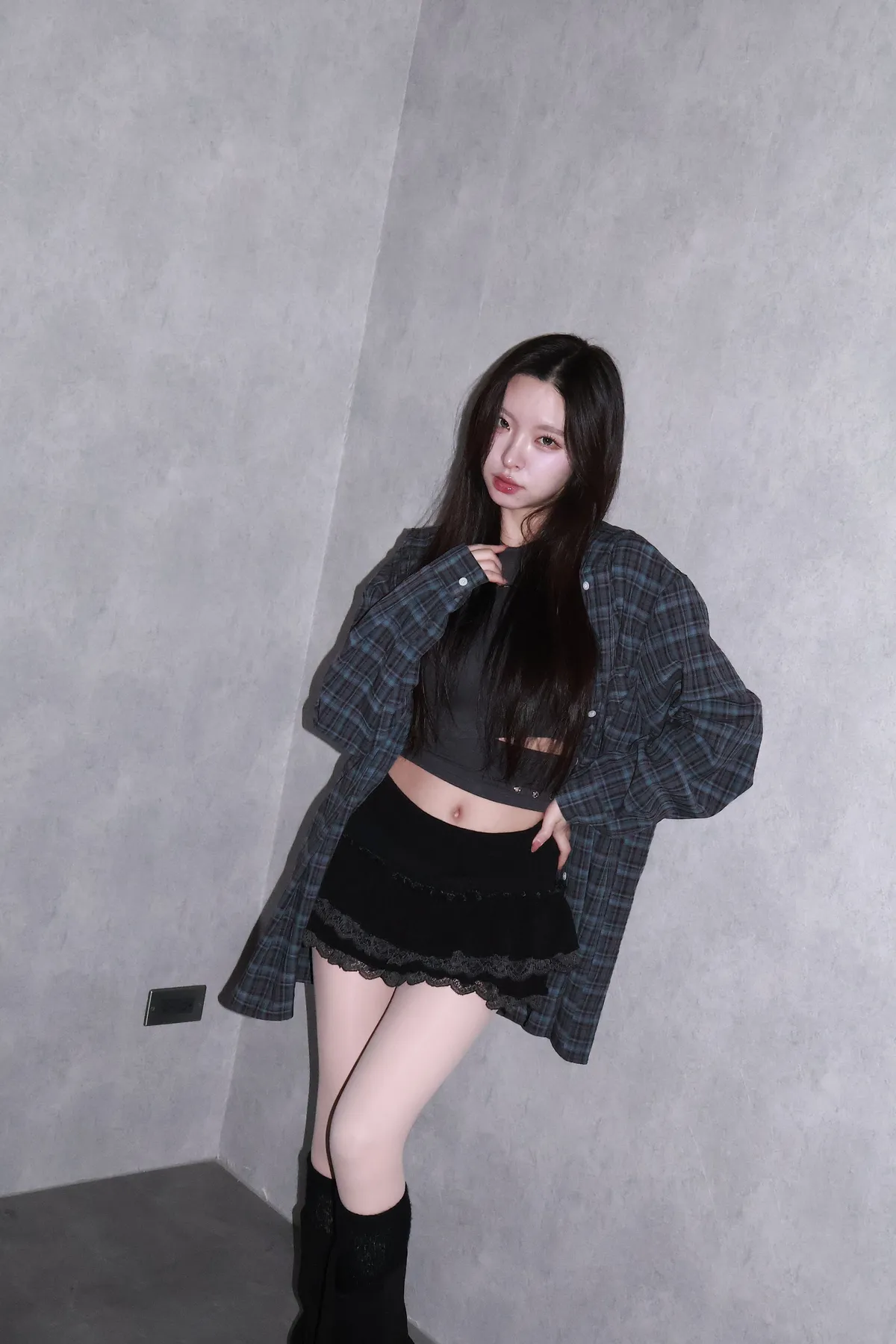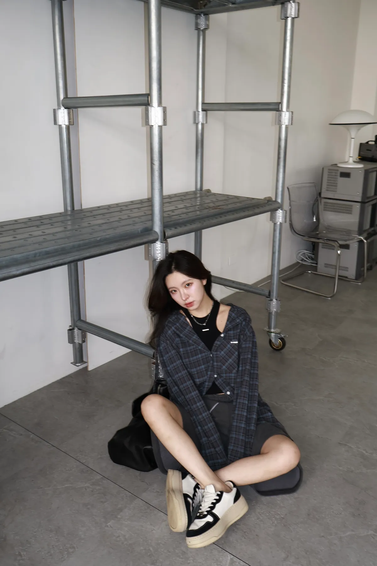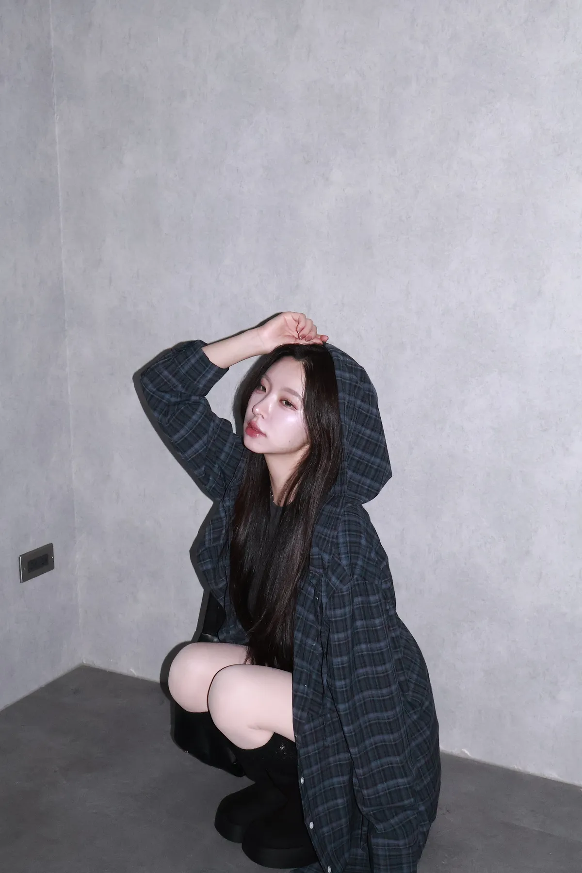 🇰🇷Made by Qual!暗藍浮光格紋襯衫(藍/灰)