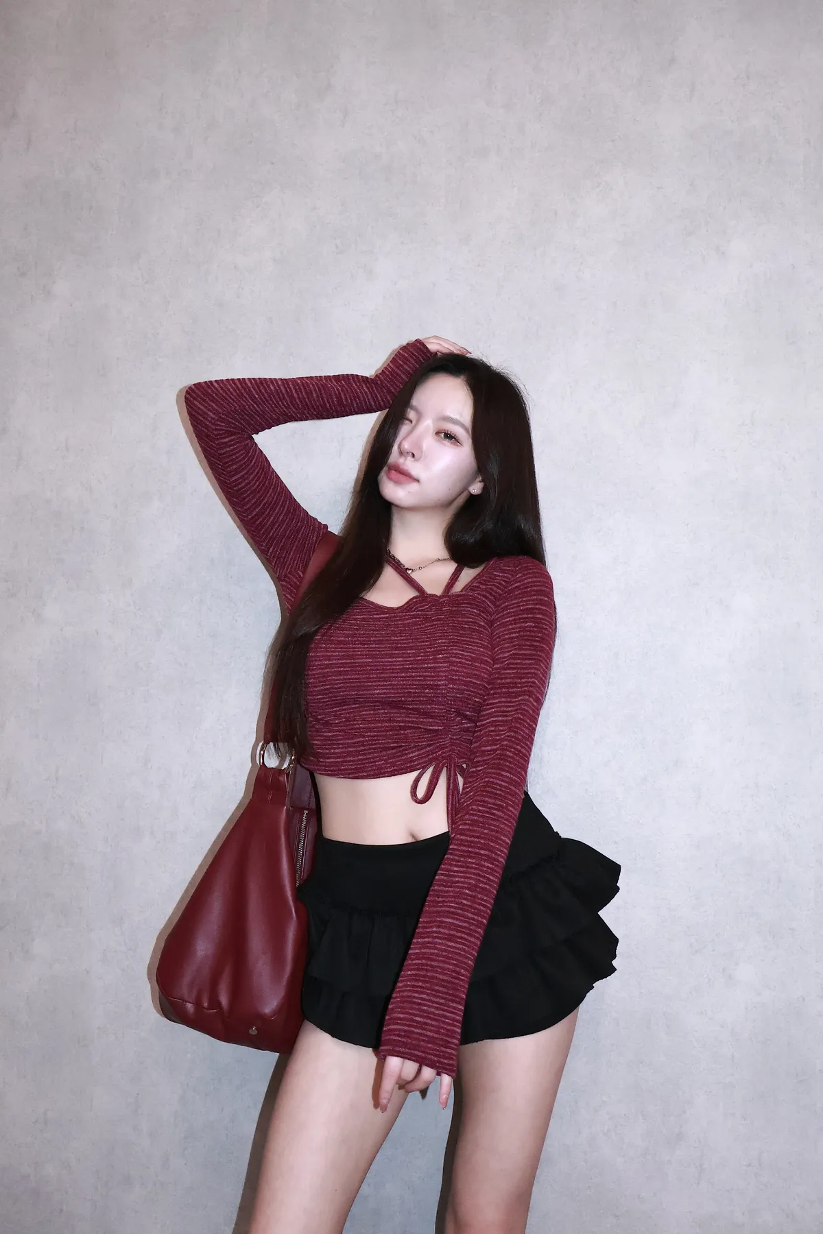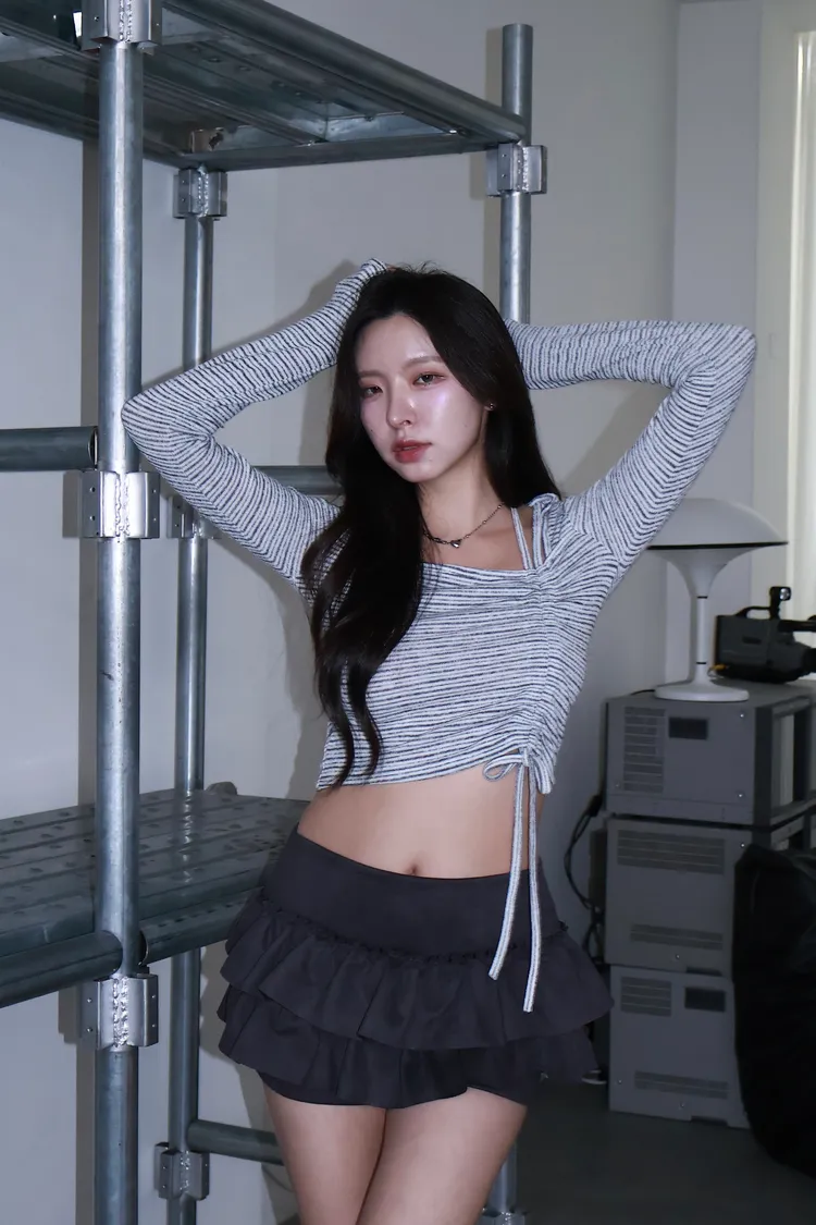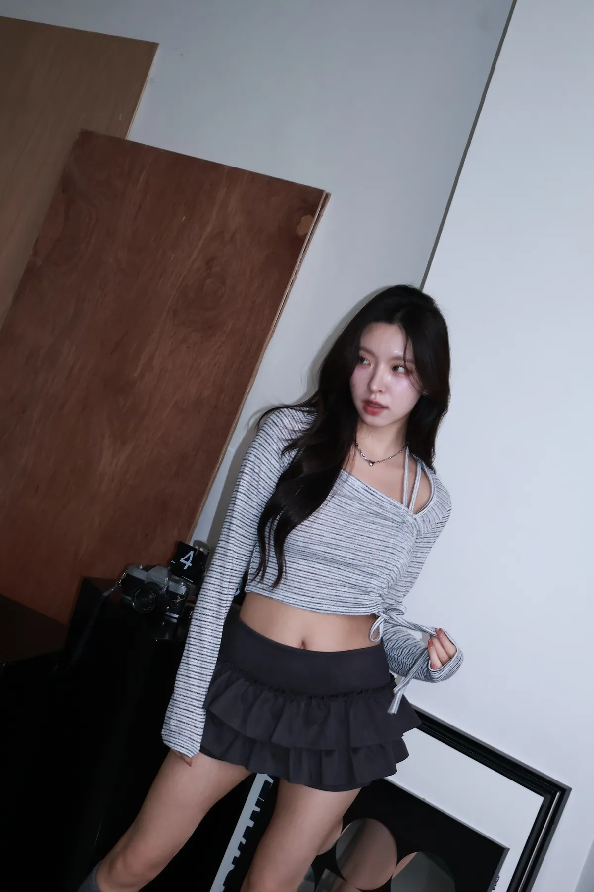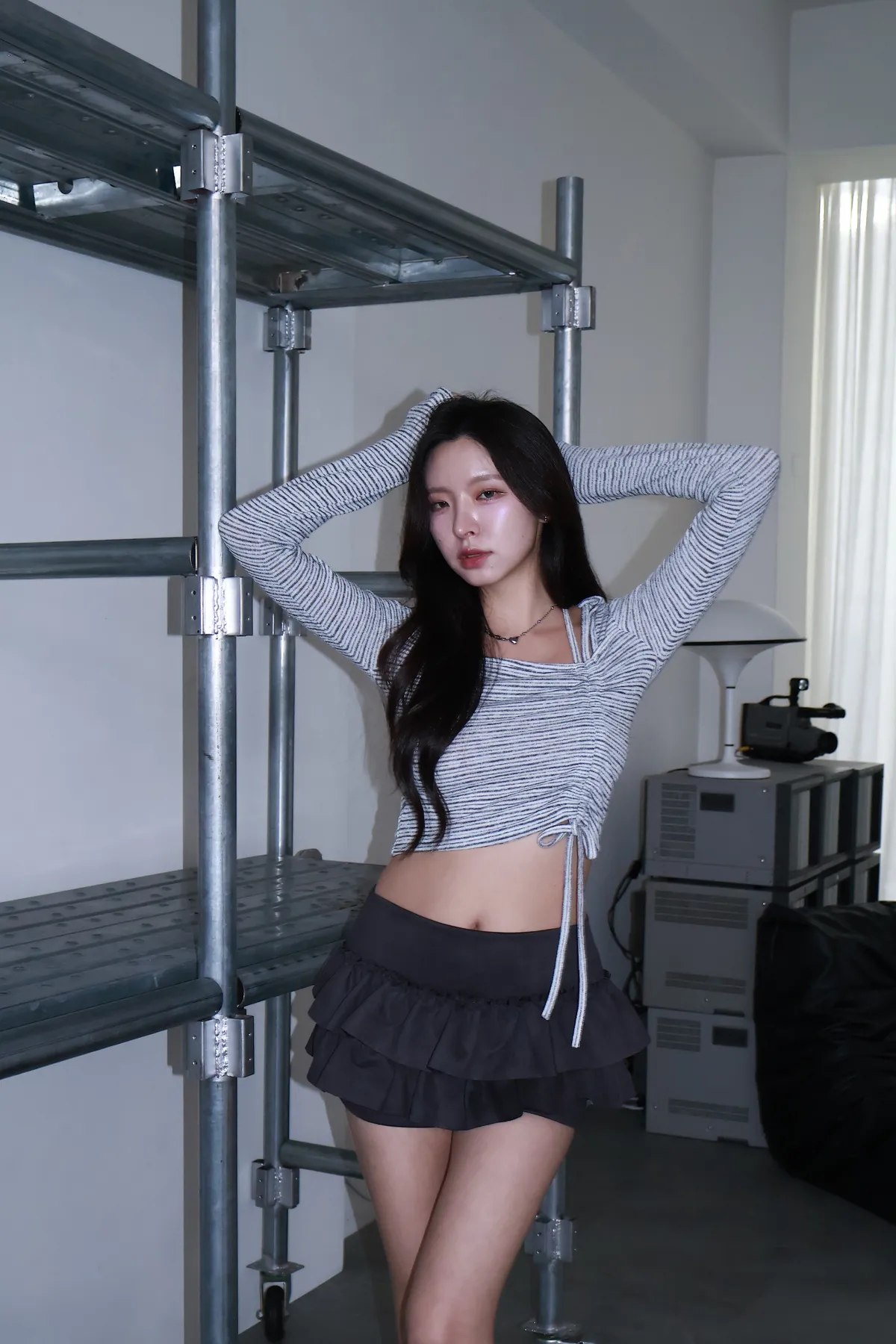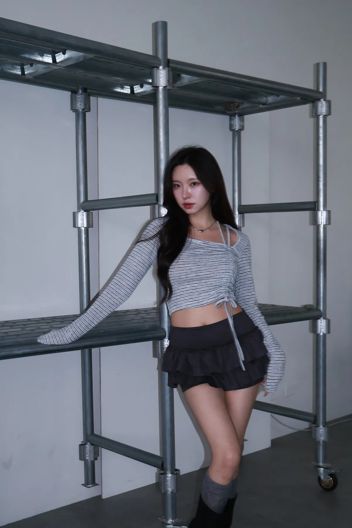 🇰🇷紐約微澤條紋抽繩上衣(黑/灰/紅)