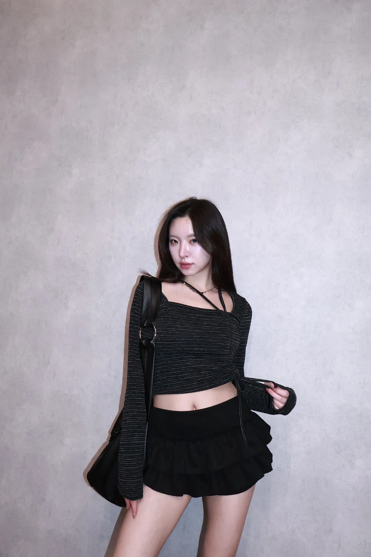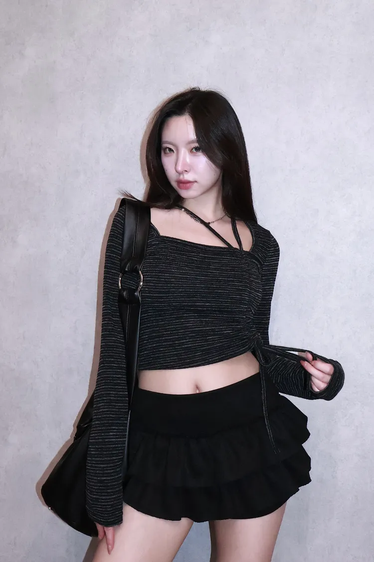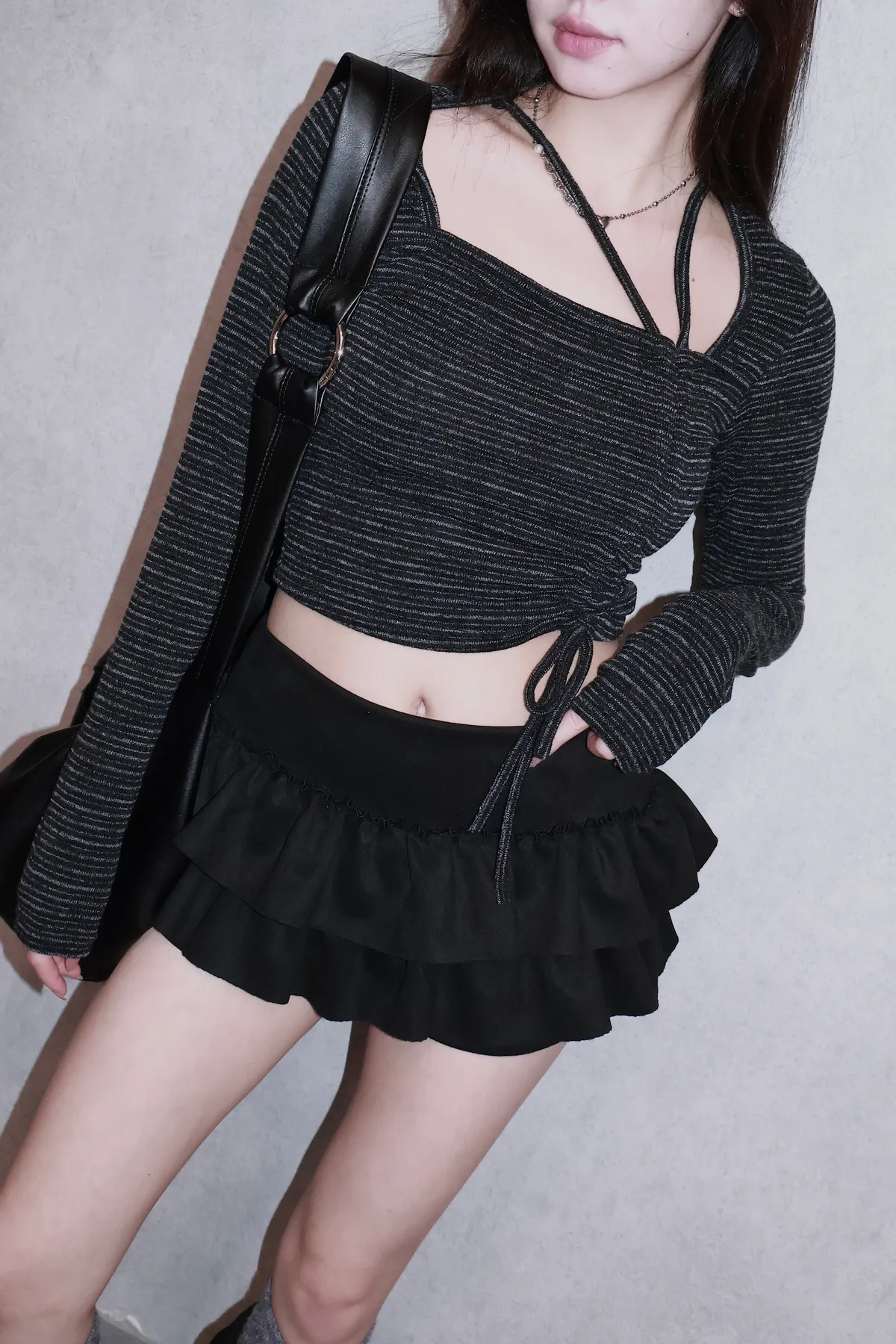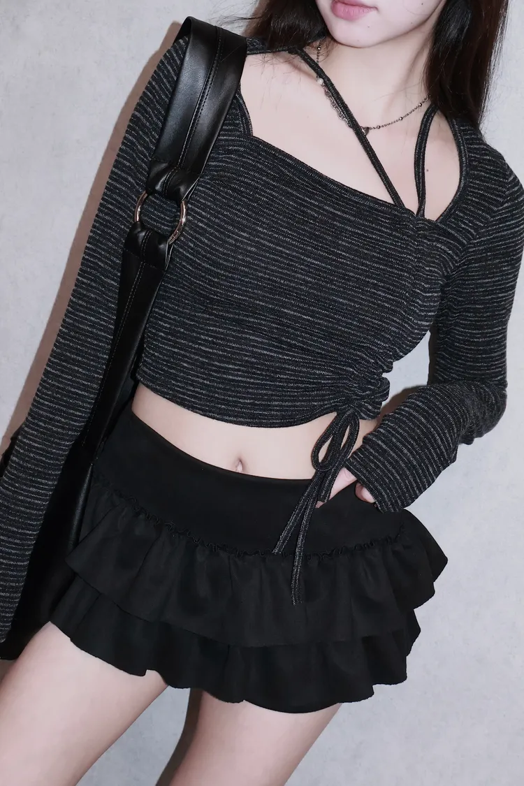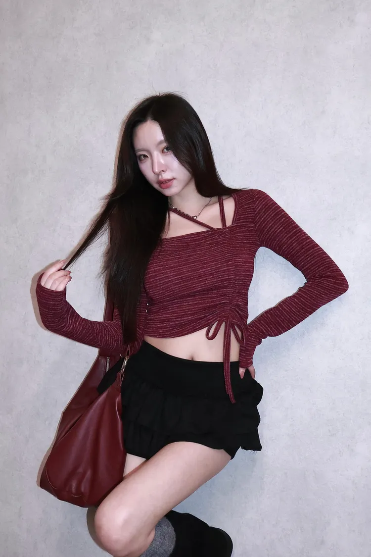 🇰🇷紐約微澤條紋抽繩上衣(黑/灰/紅)