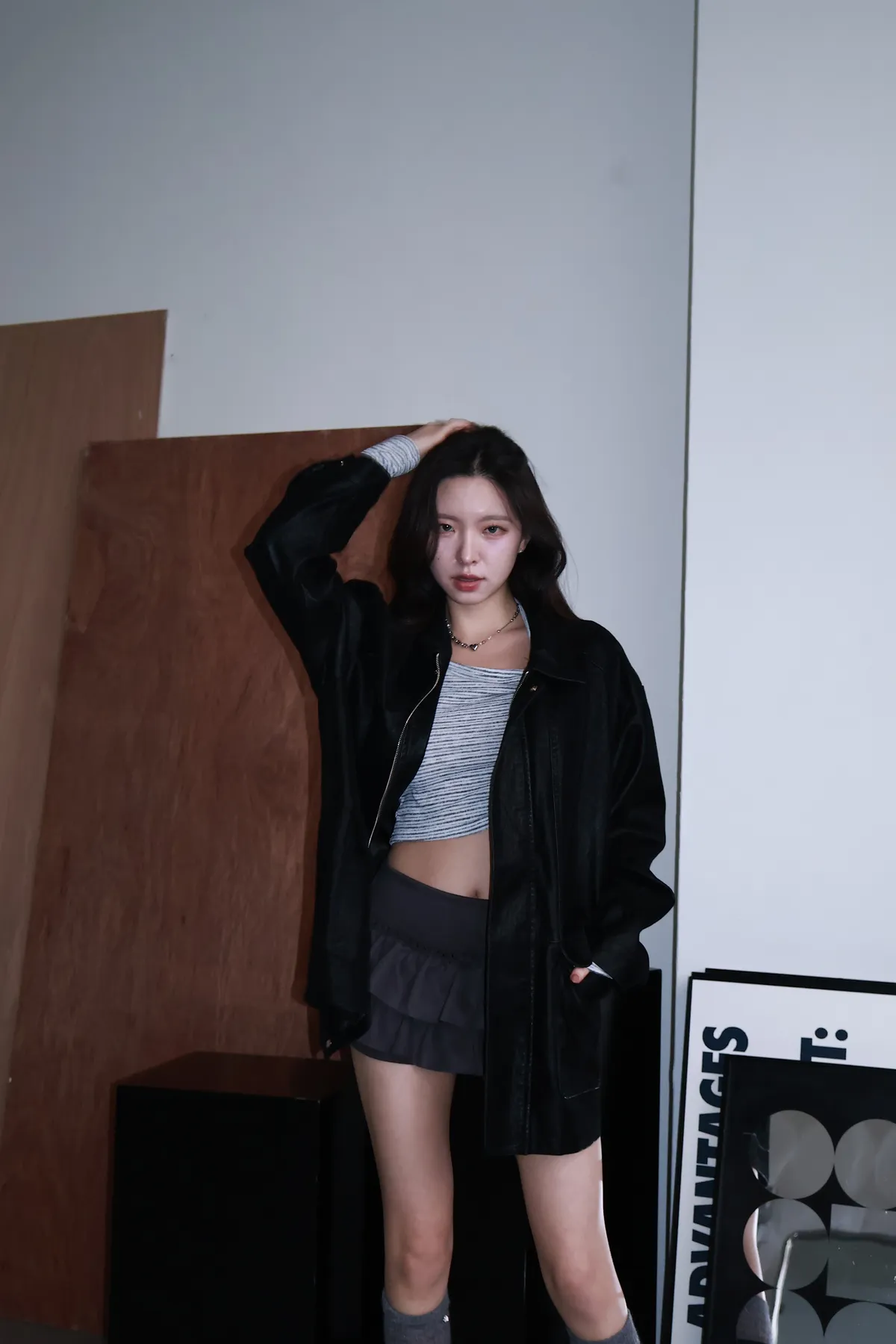 🇰🇷(本期推薦)月庭流歌波浪短裙(黑/灰/墨綠)(有安全褲)