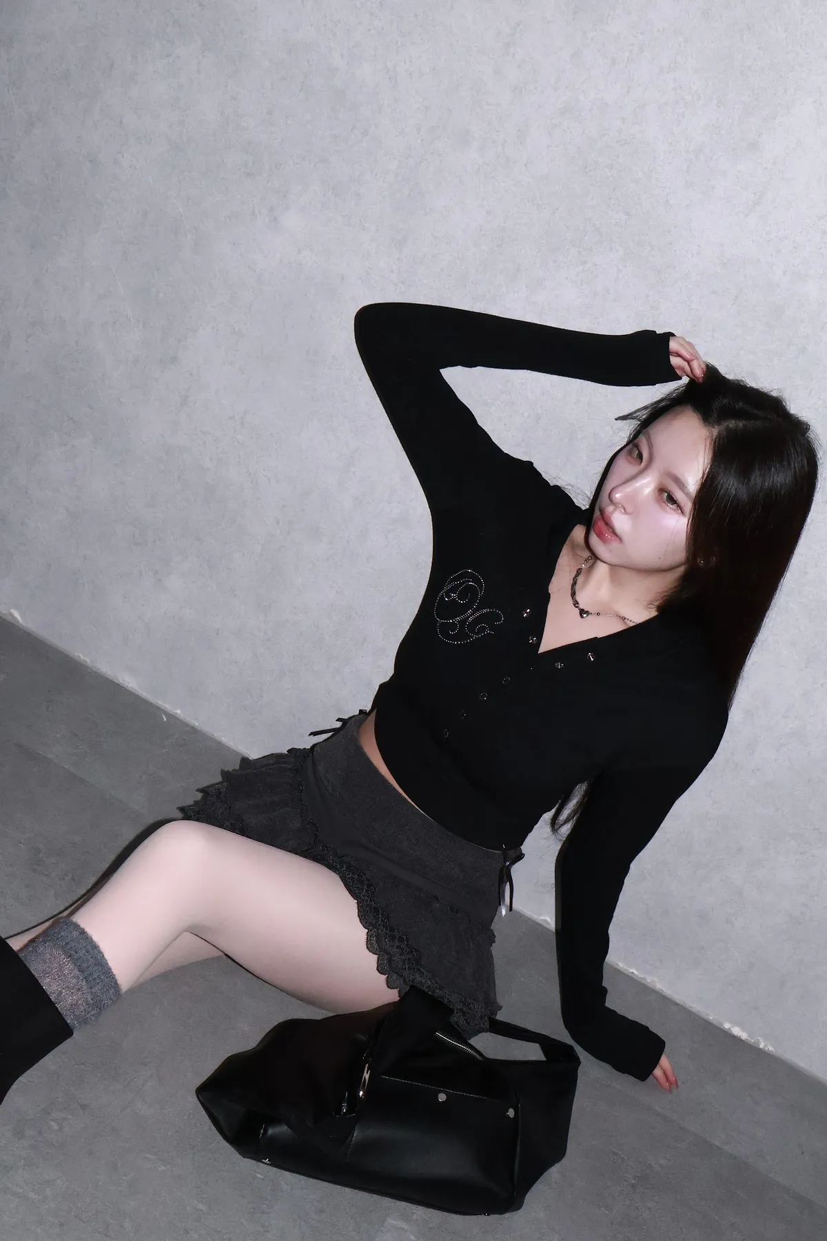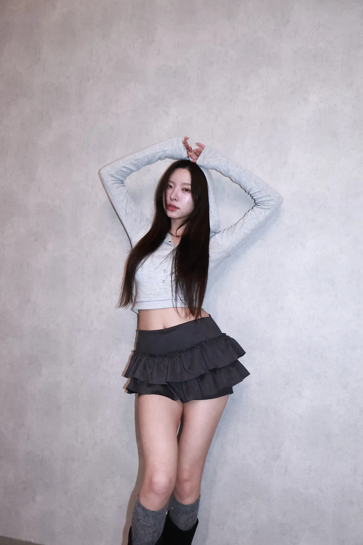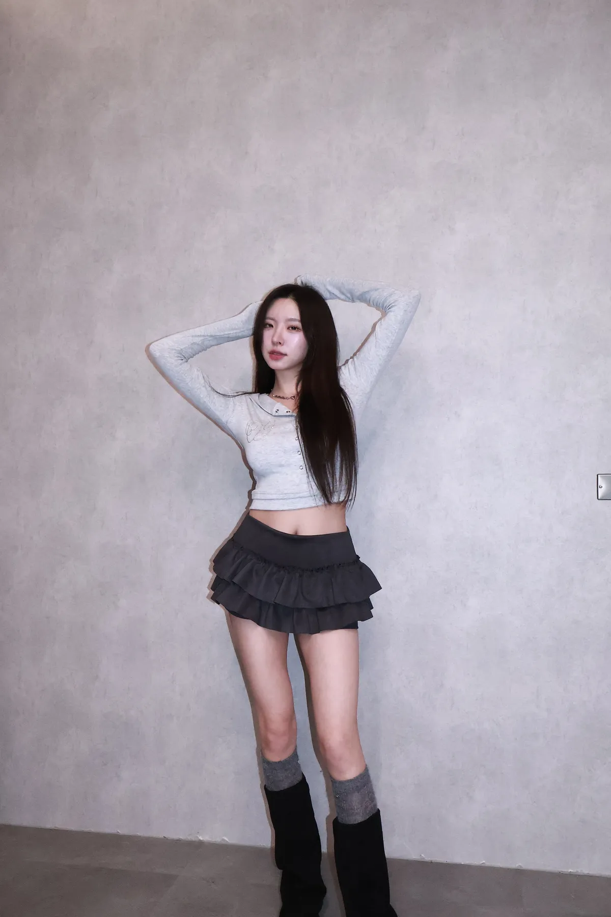 🇰🇷(本期推薦)月庭流歌波浪短裙(黑/灰/墨綠)(有安全褲)