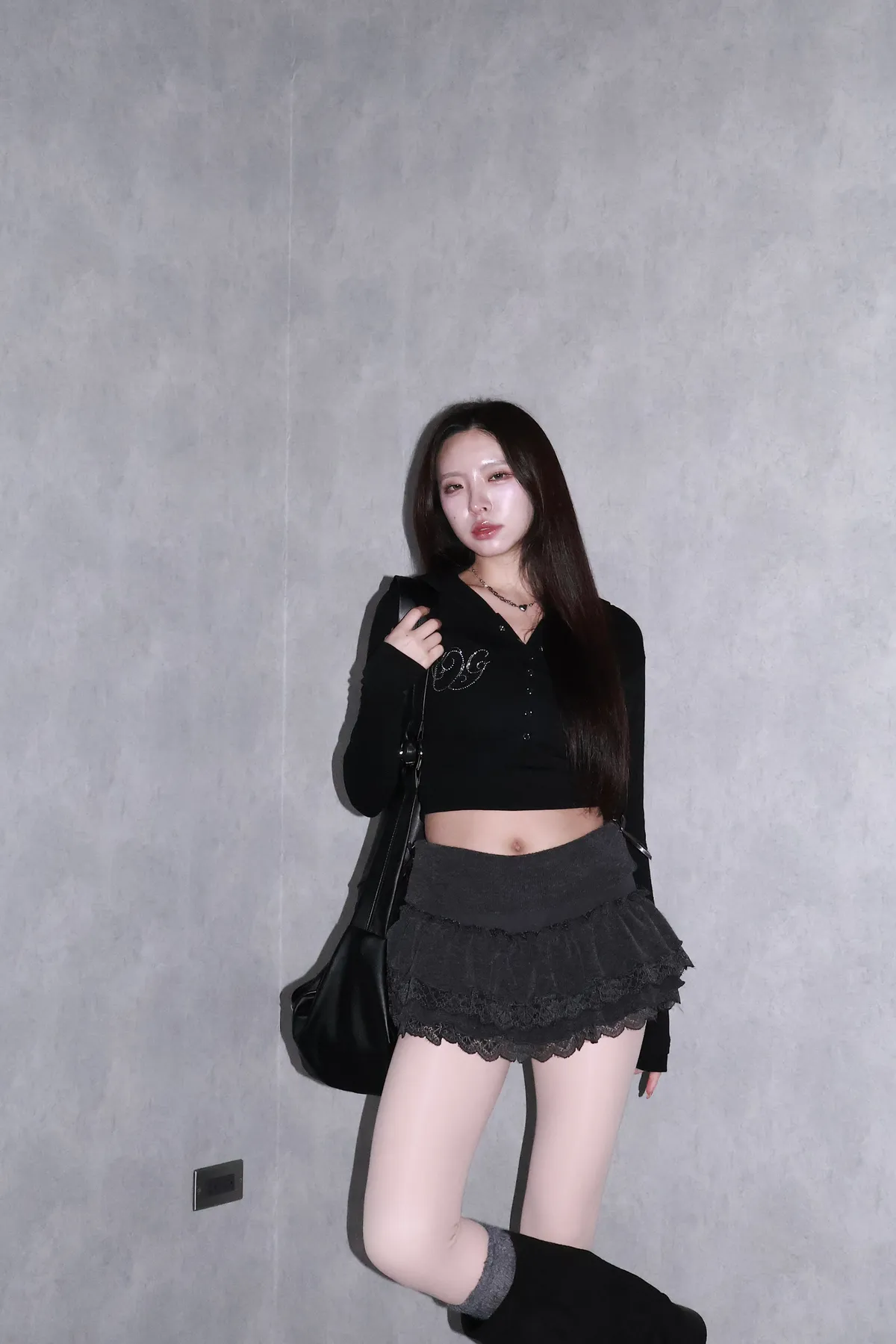🇰🇷幕語之城蕾絲蛋糕裙(黑/灰/粉)(有安全褲)