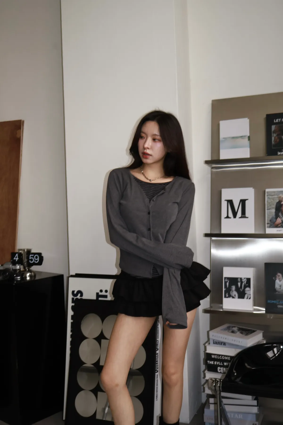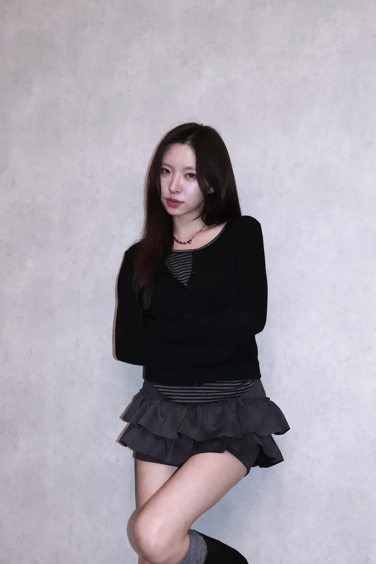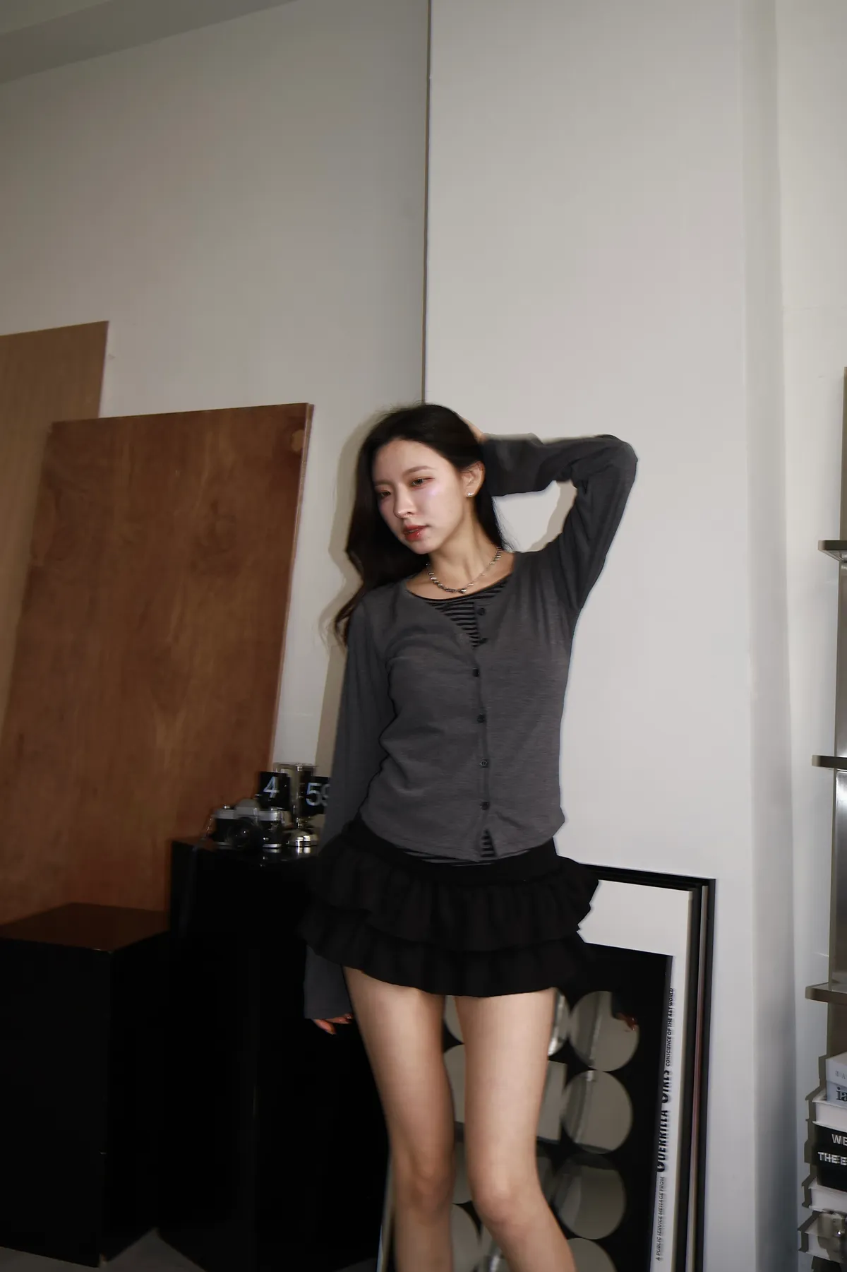 🇰🇷灰影流線假兩件排釦上衣(黑/墨)