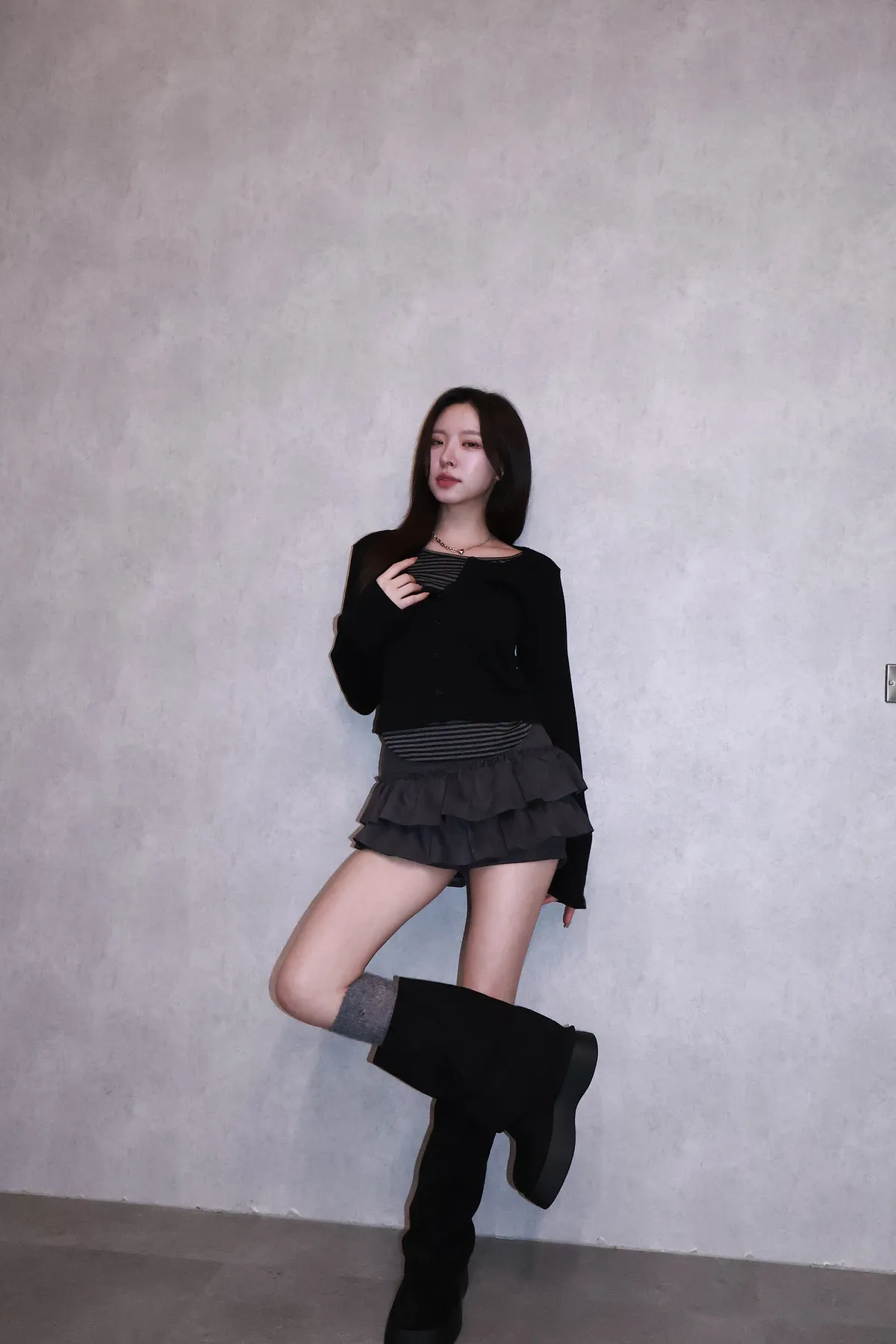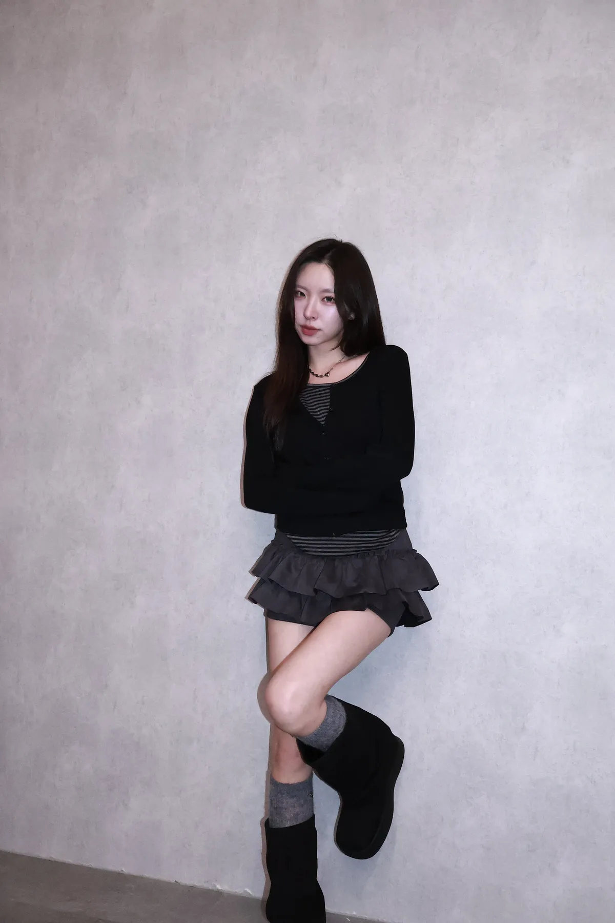 🇰🇷(本期推薦)月庭流歌波浪短裙(黑/灰/墨綠)(有安全褲)