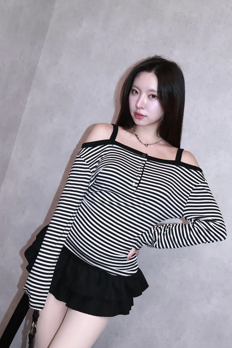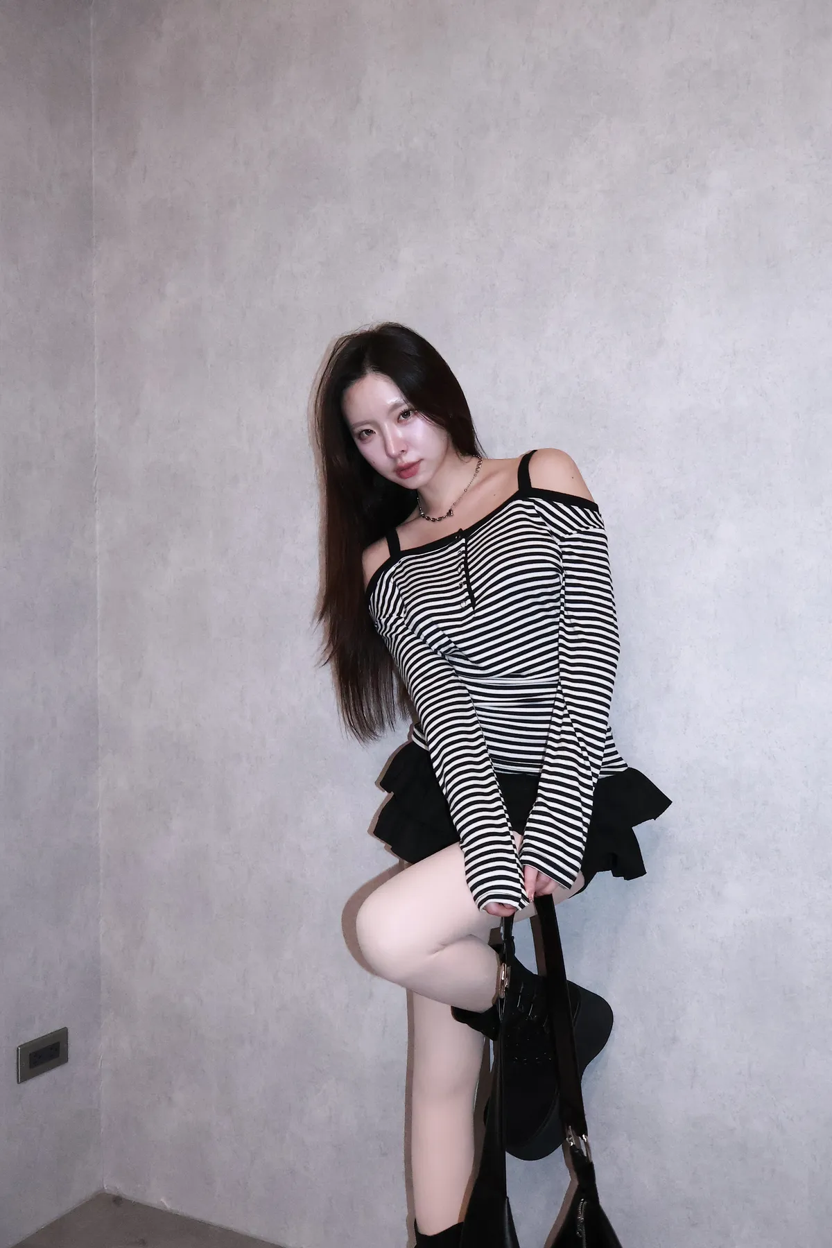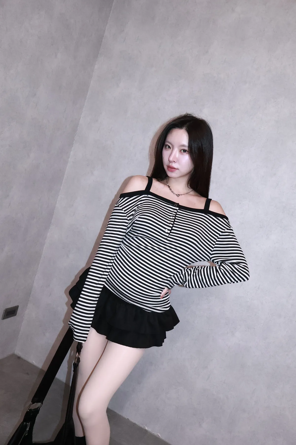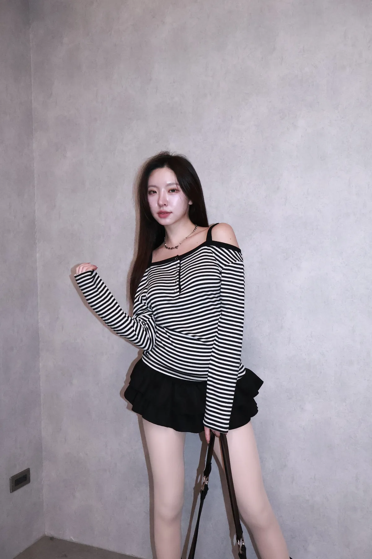 🇰🇷影漾幕煥條紋上衣(黑/白)