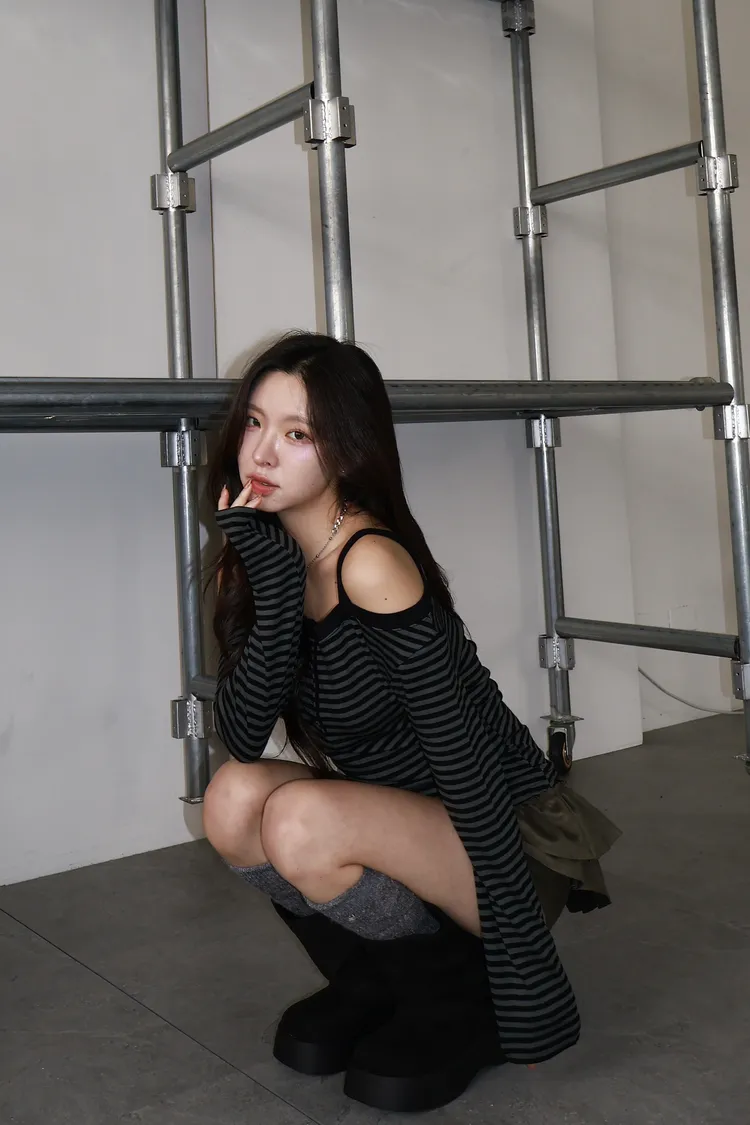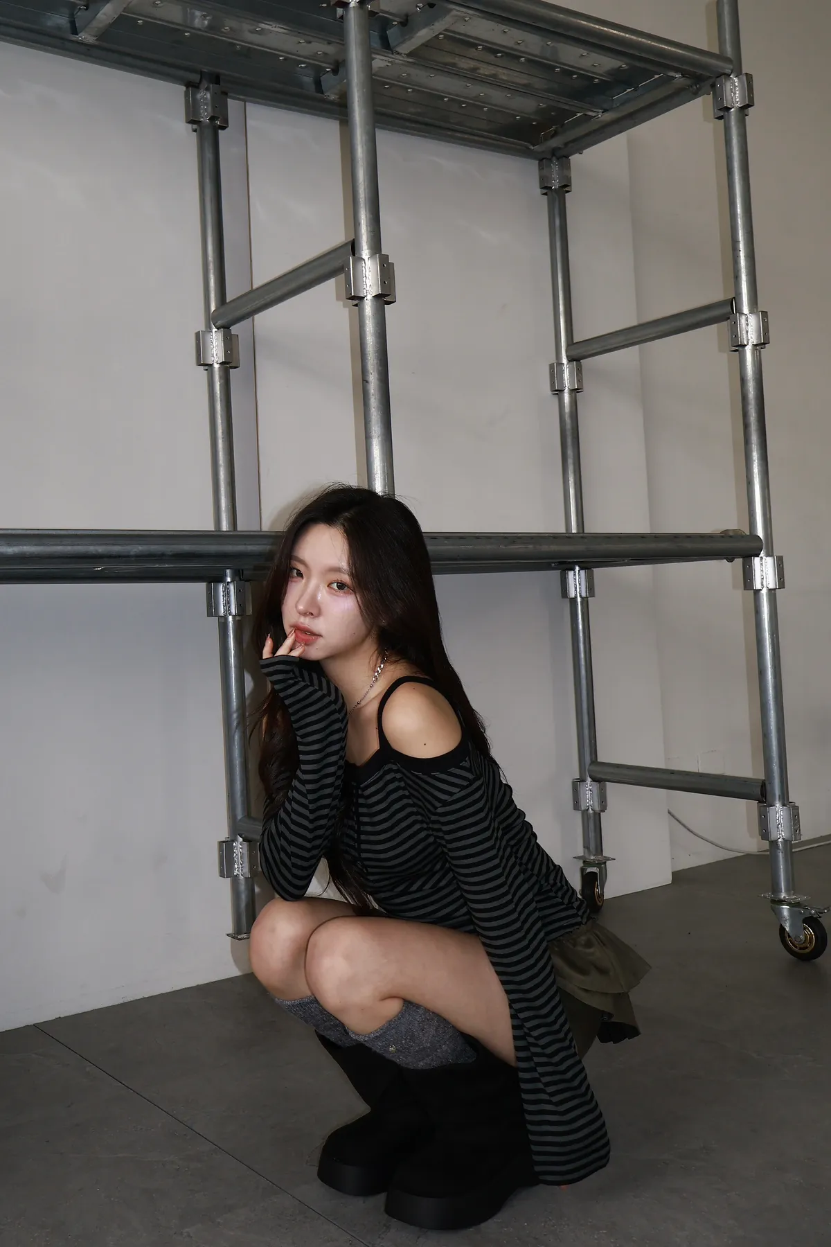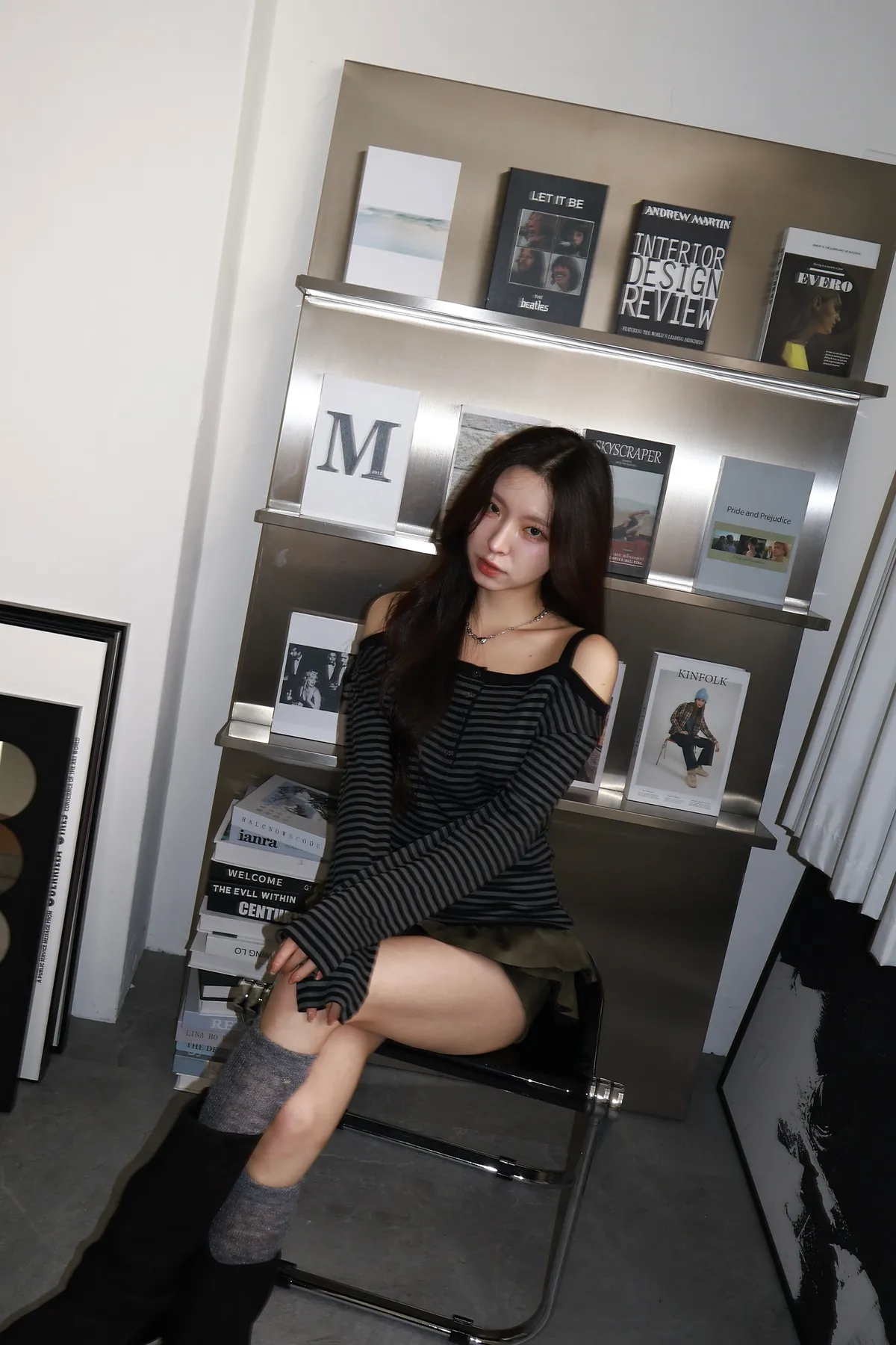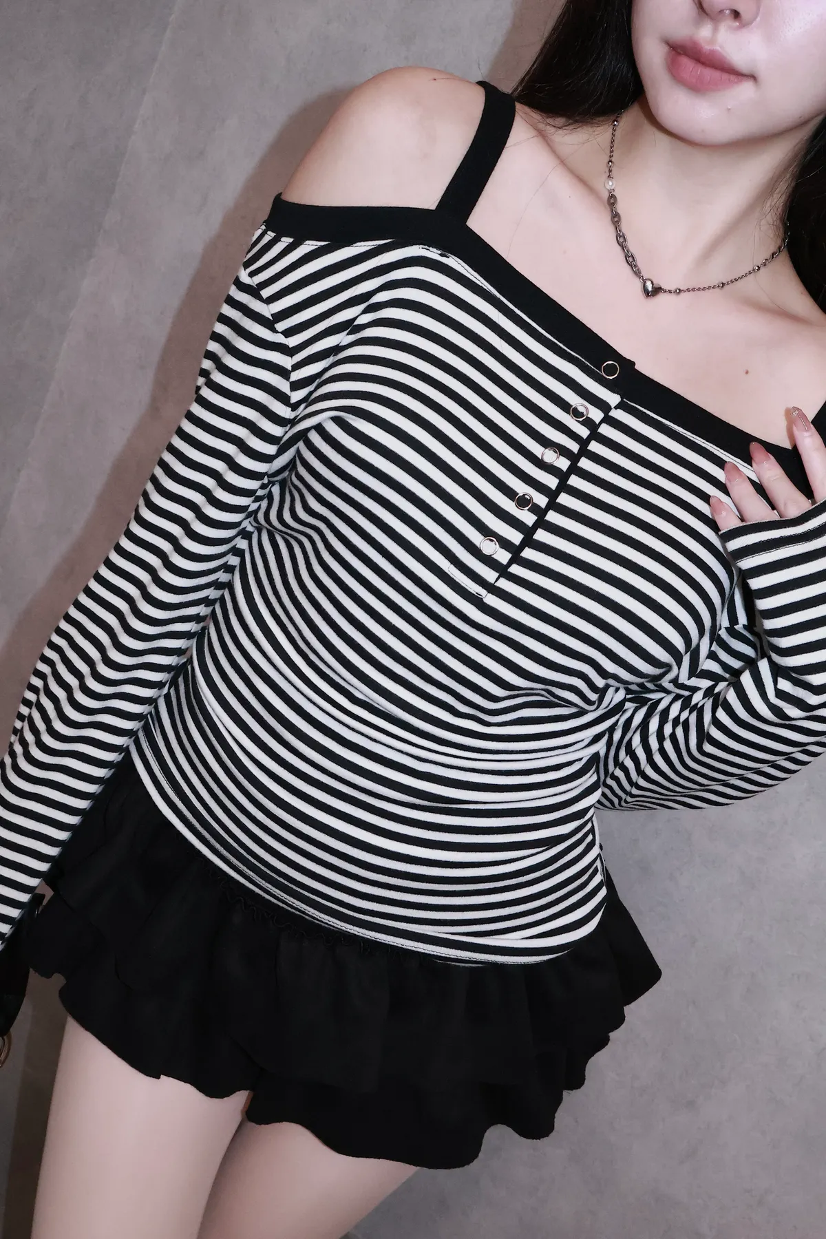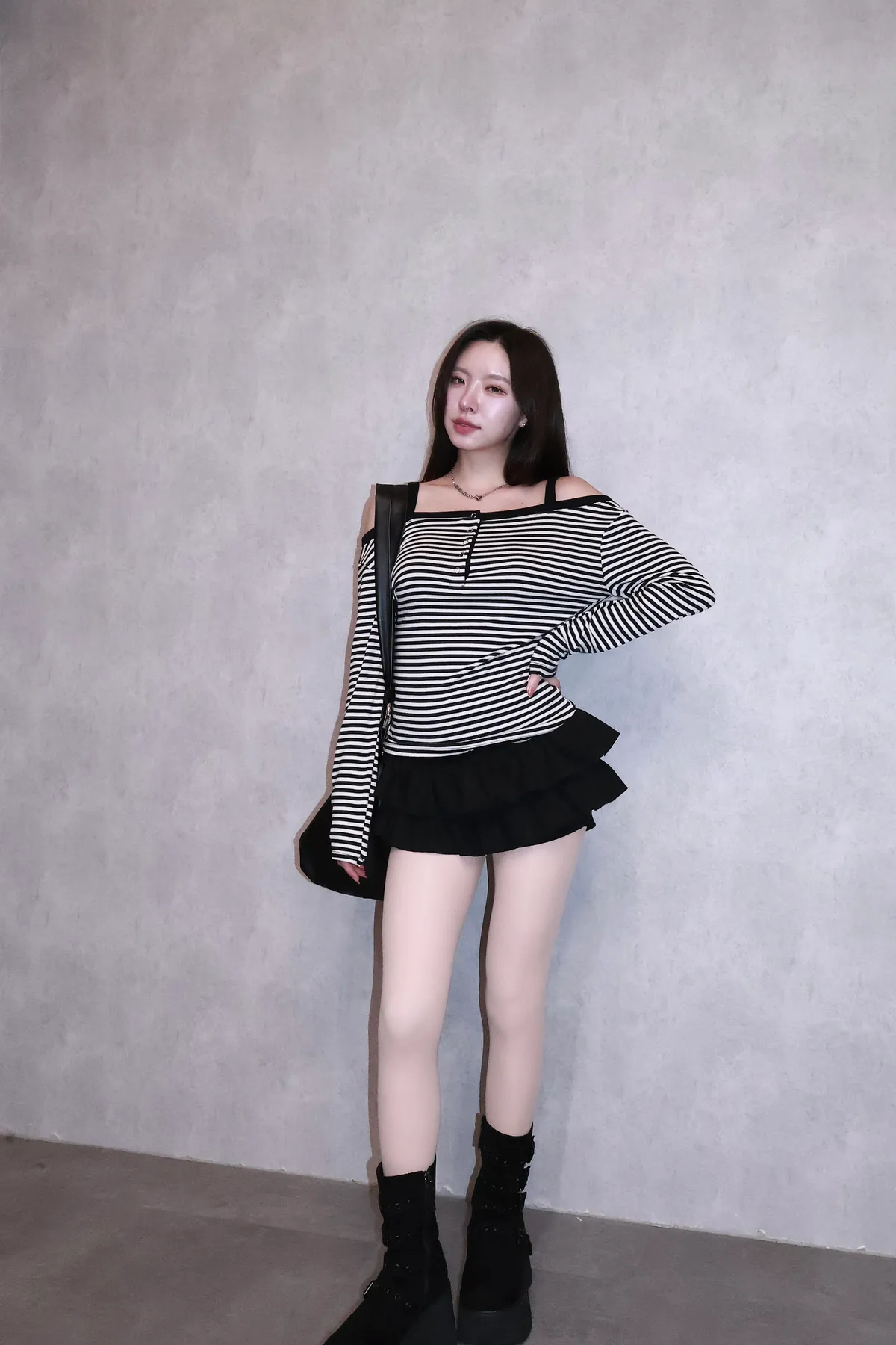 🇰🇷影漾幕煥條紋上衣(黑/白)