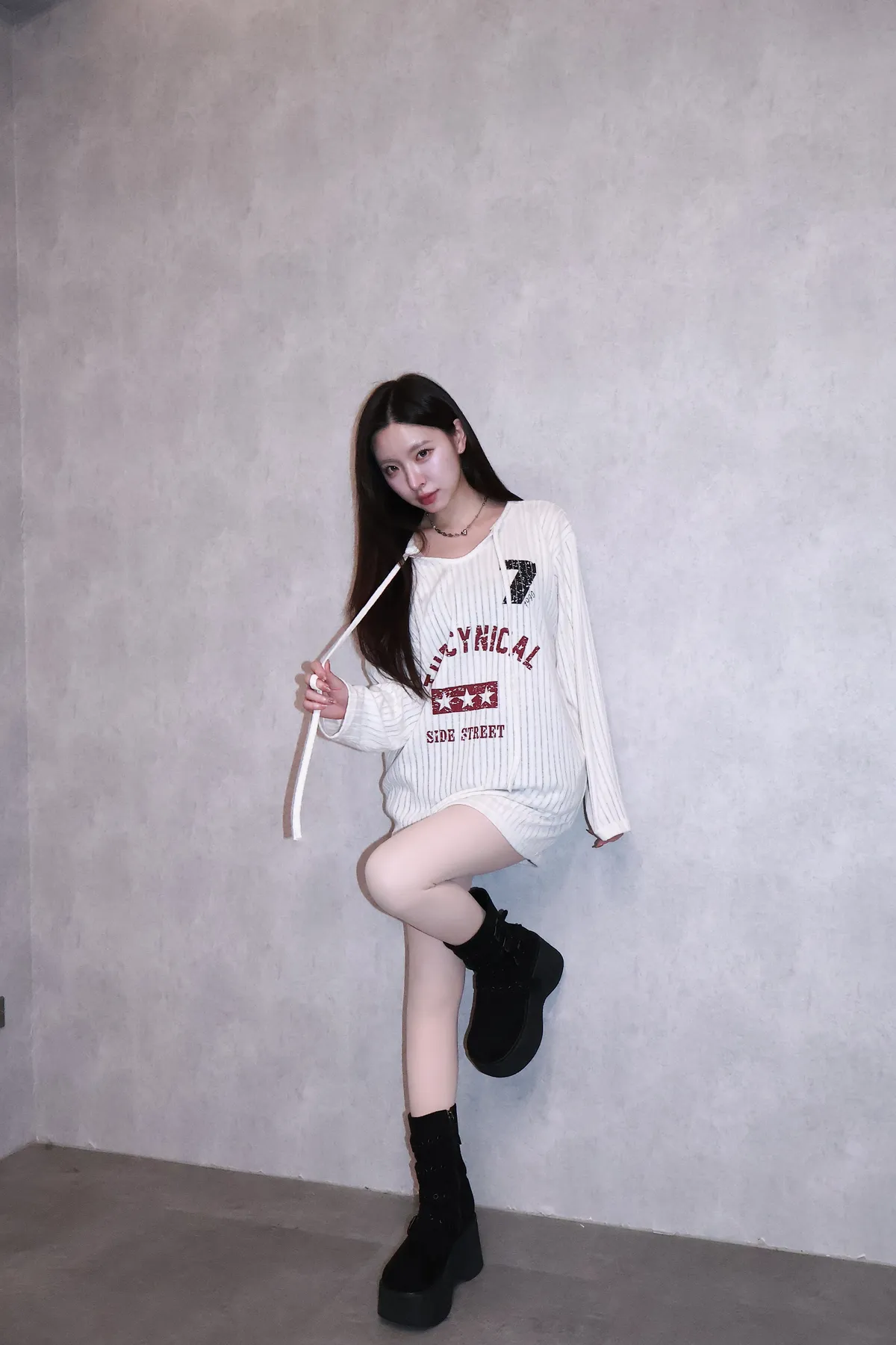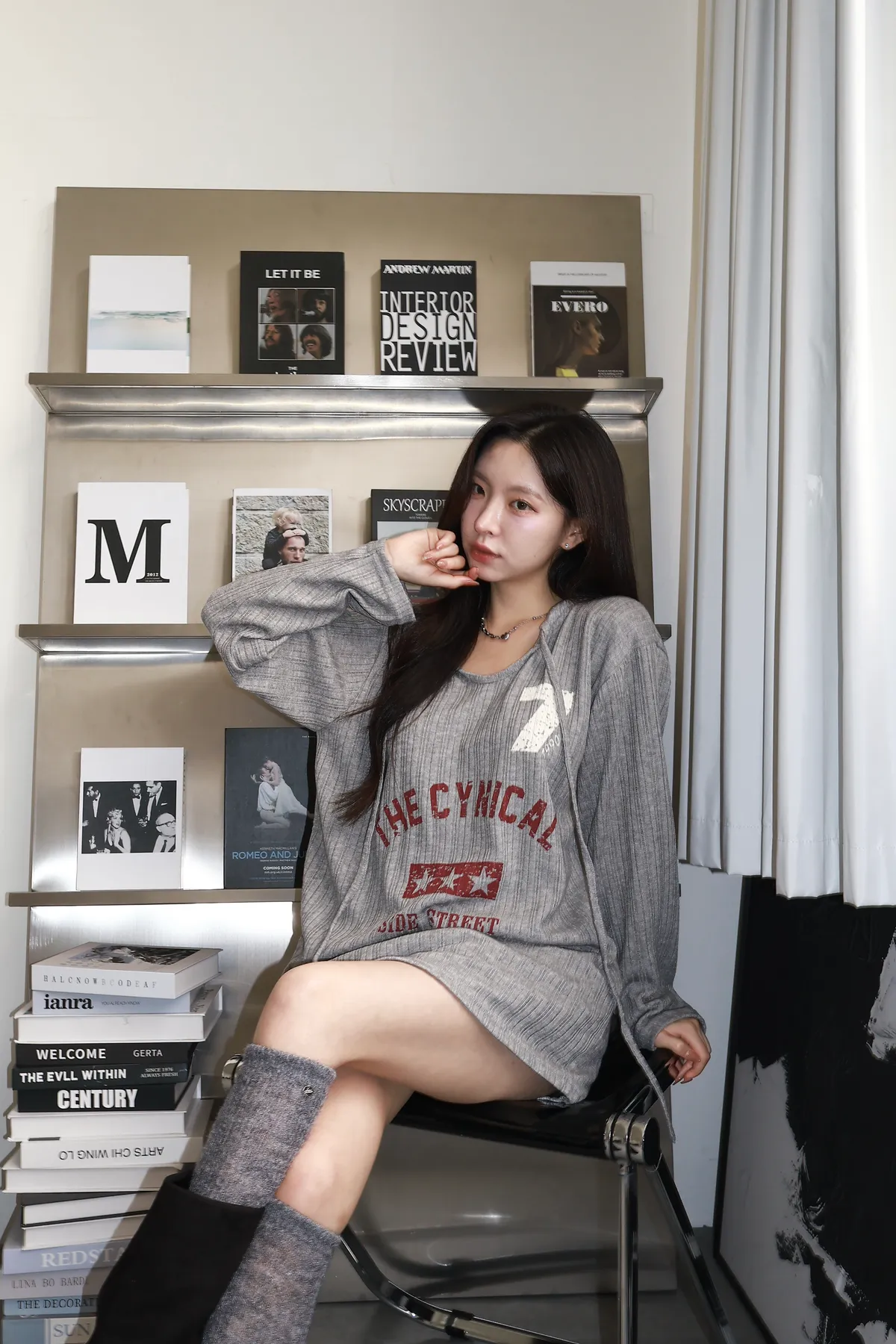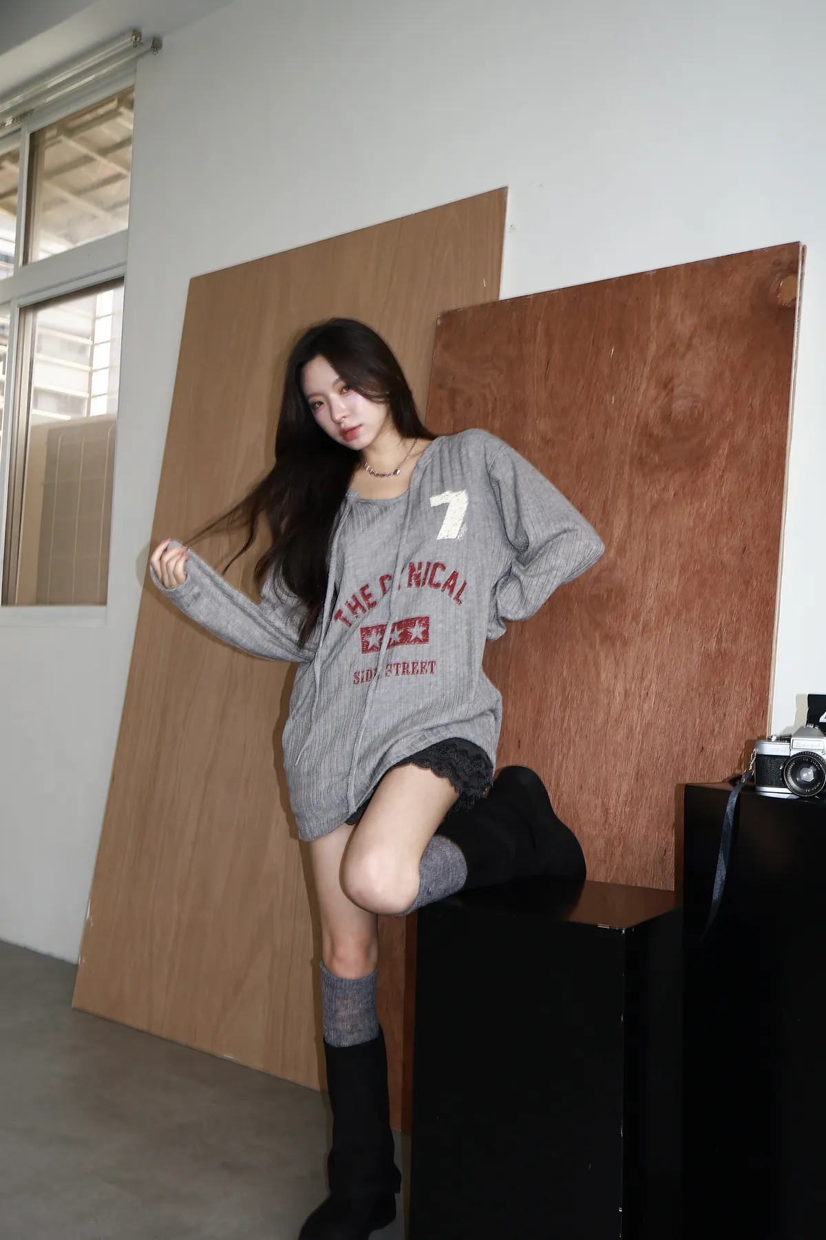 🇰🇷幻霧晨調抽繩長袖上衣(白/灰)
