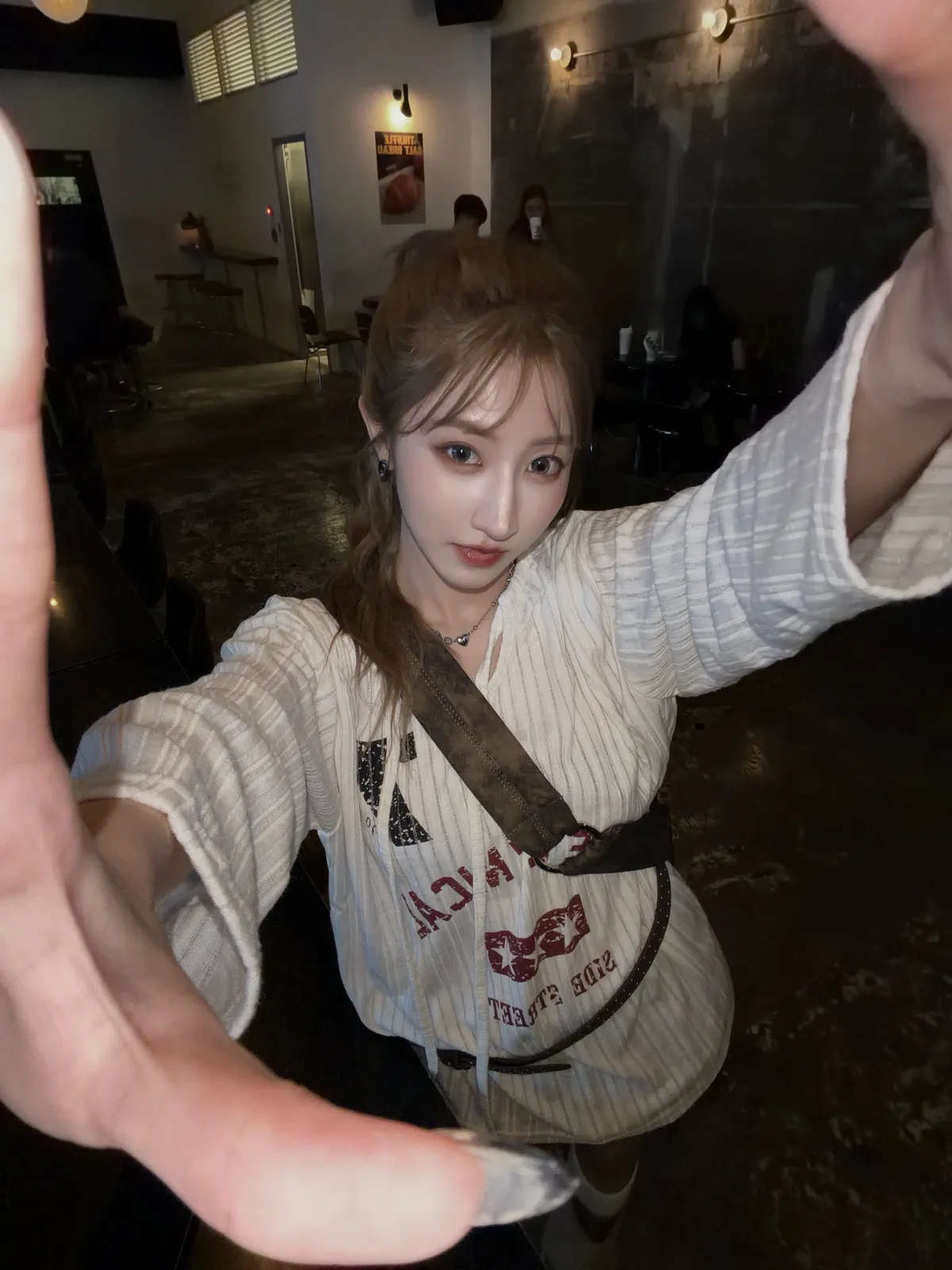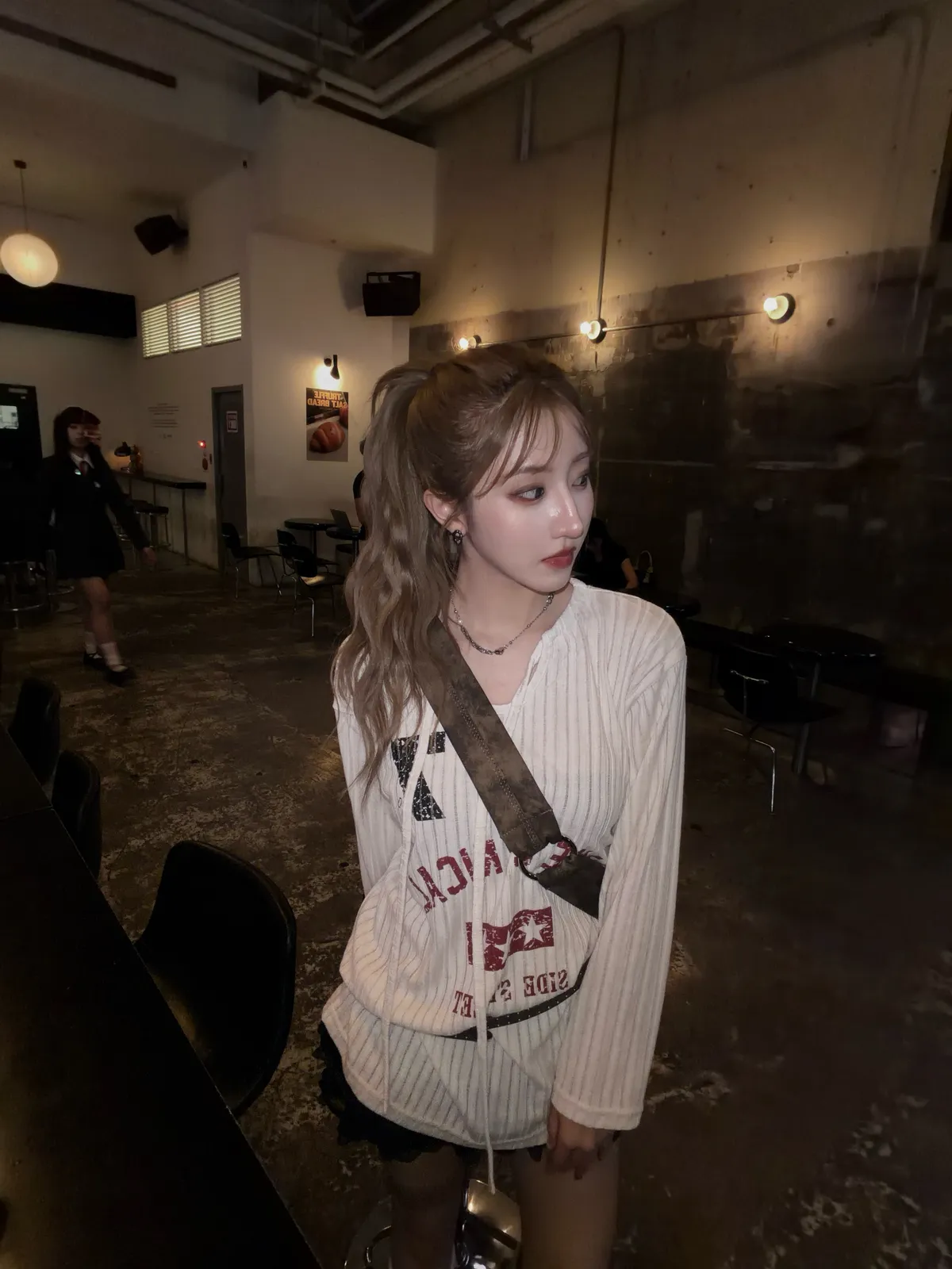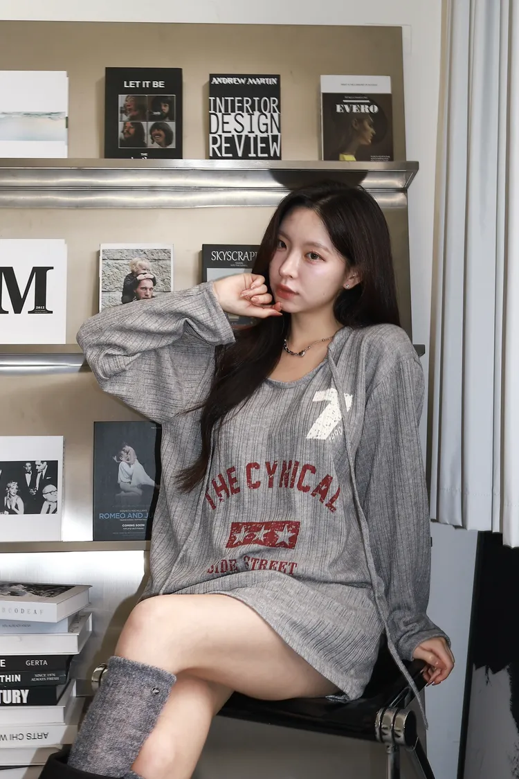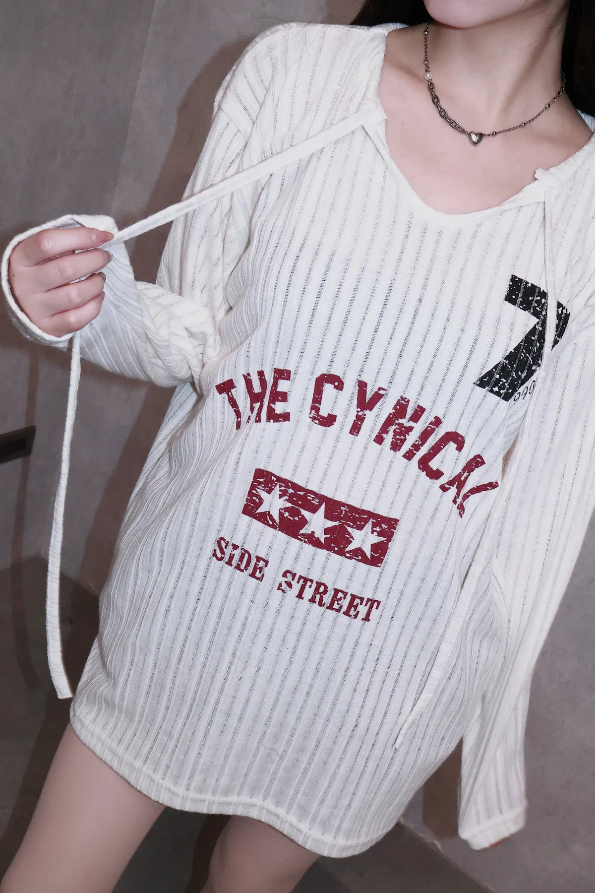 🇰🇷幻霧晨調抽繩長袖上衣(白/灰)