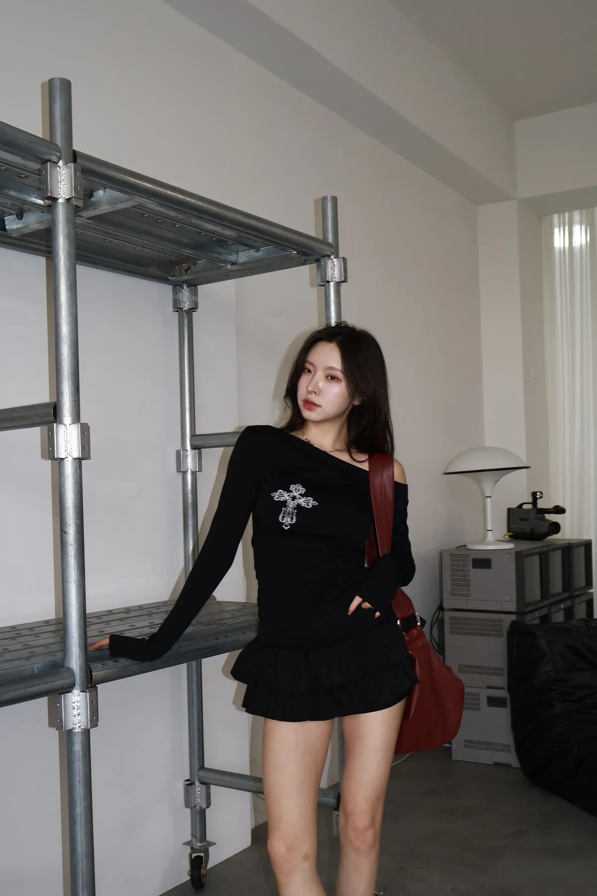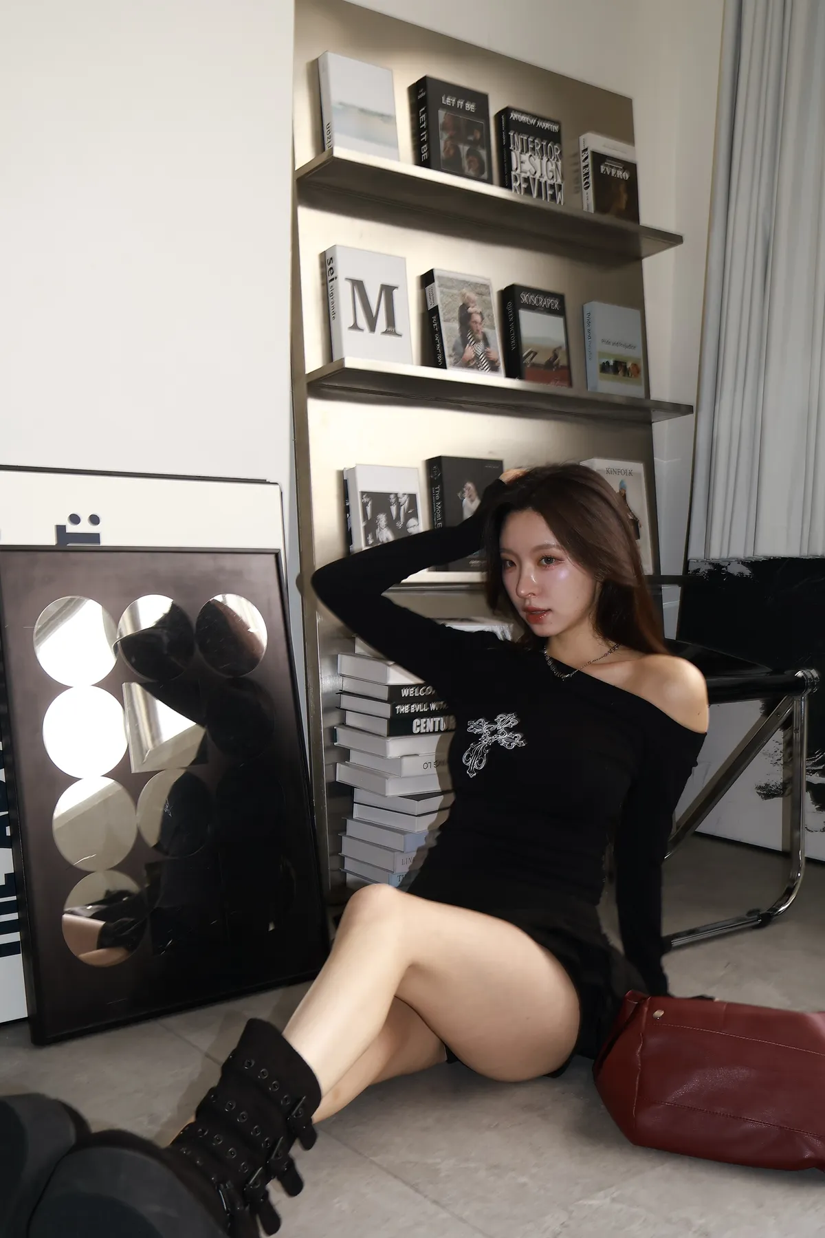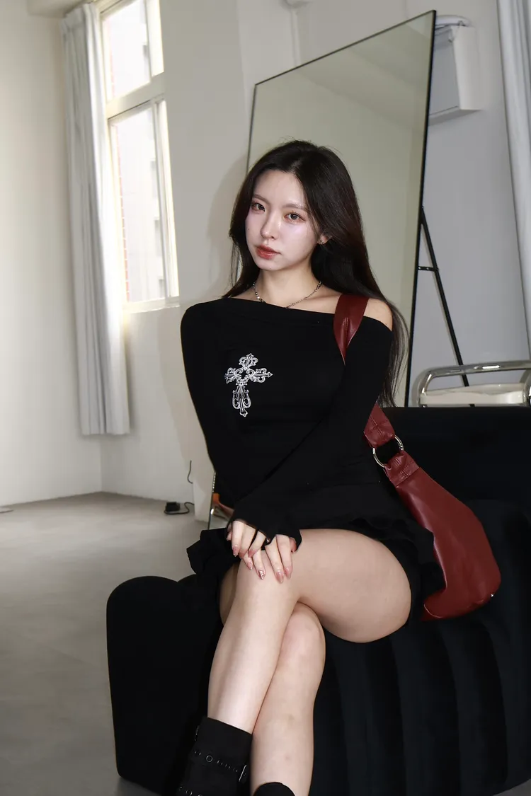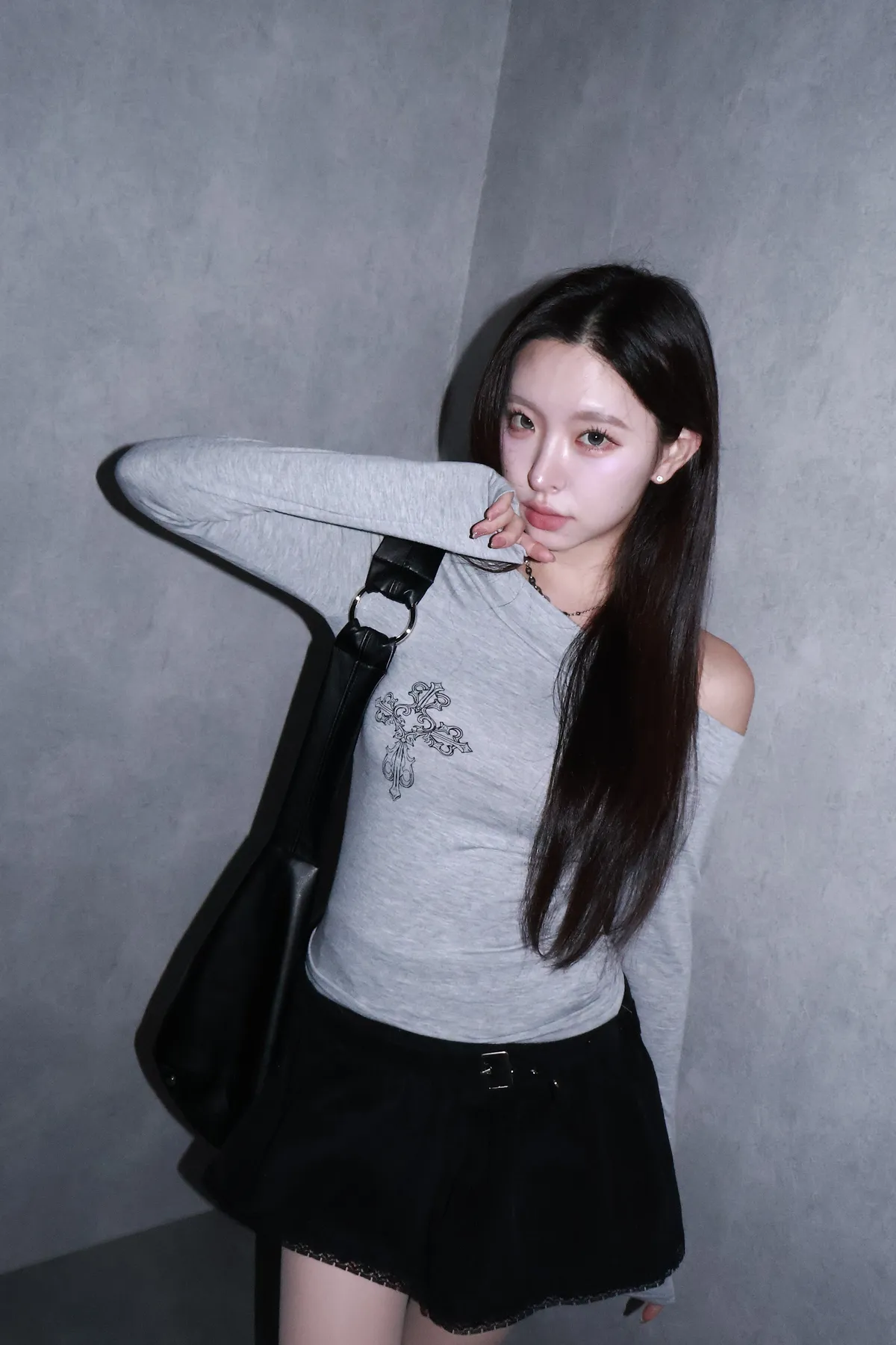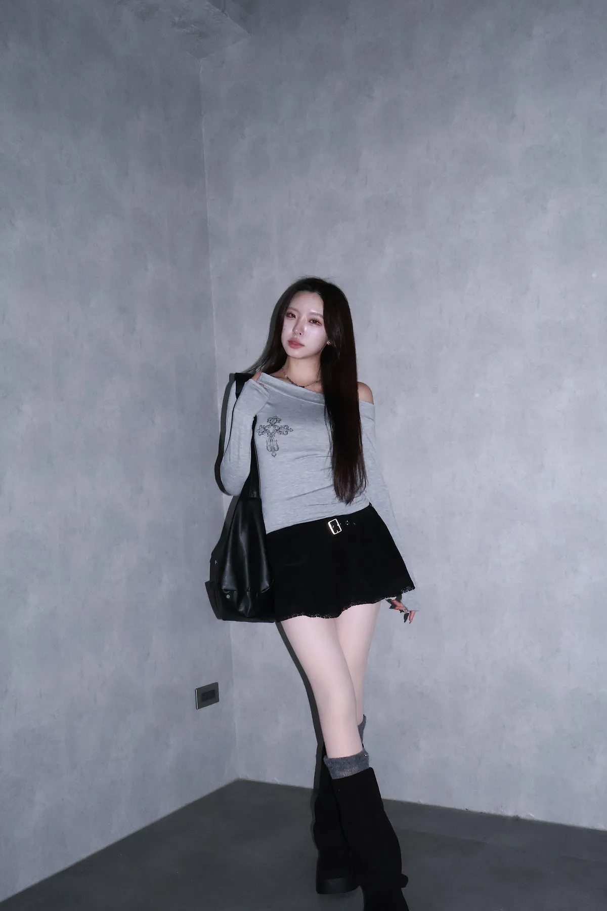 🇰🇷暗影流韻十字上衣(黑/灰/白)