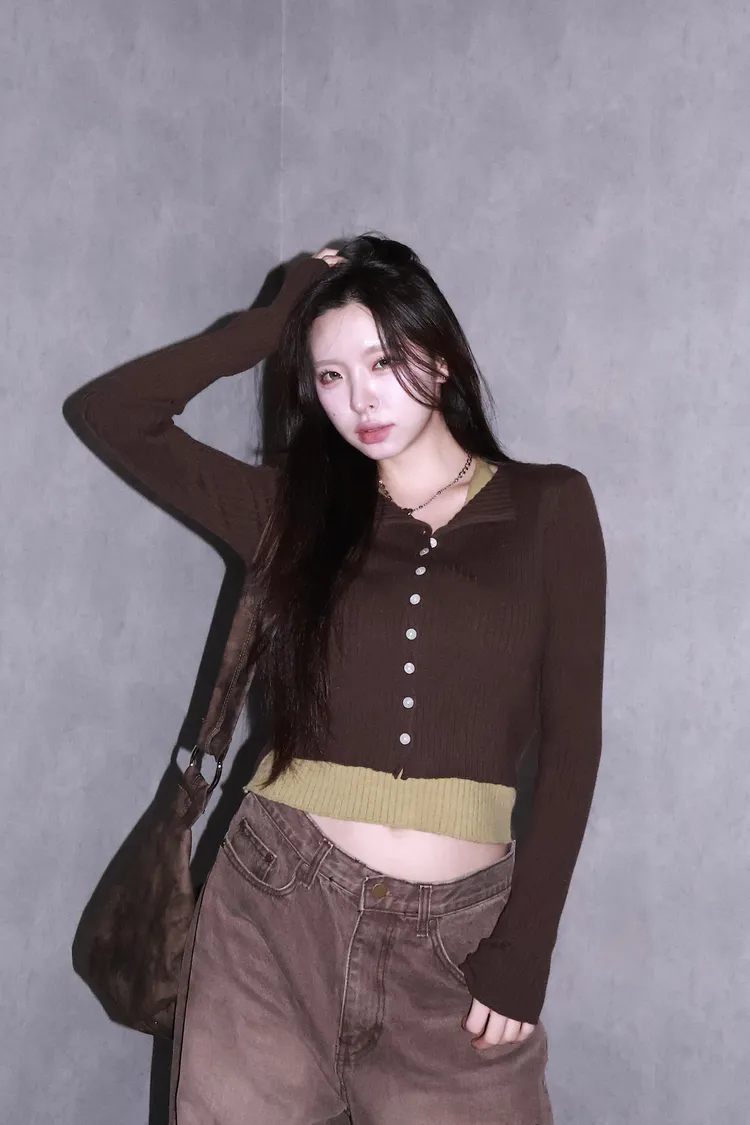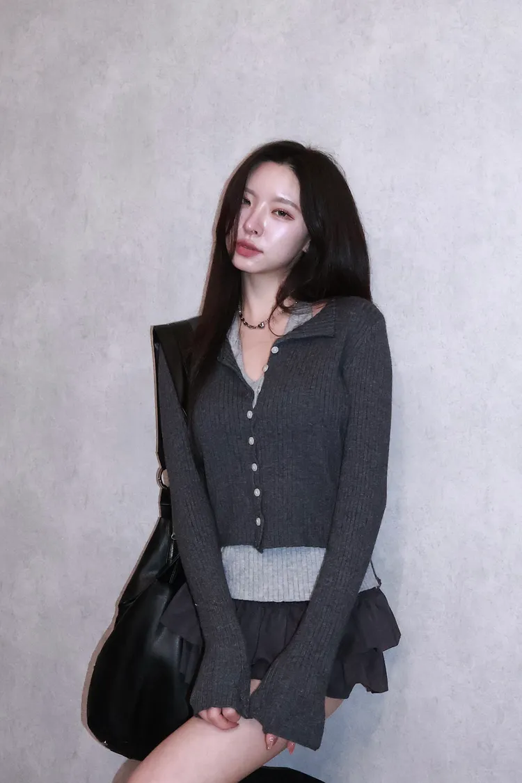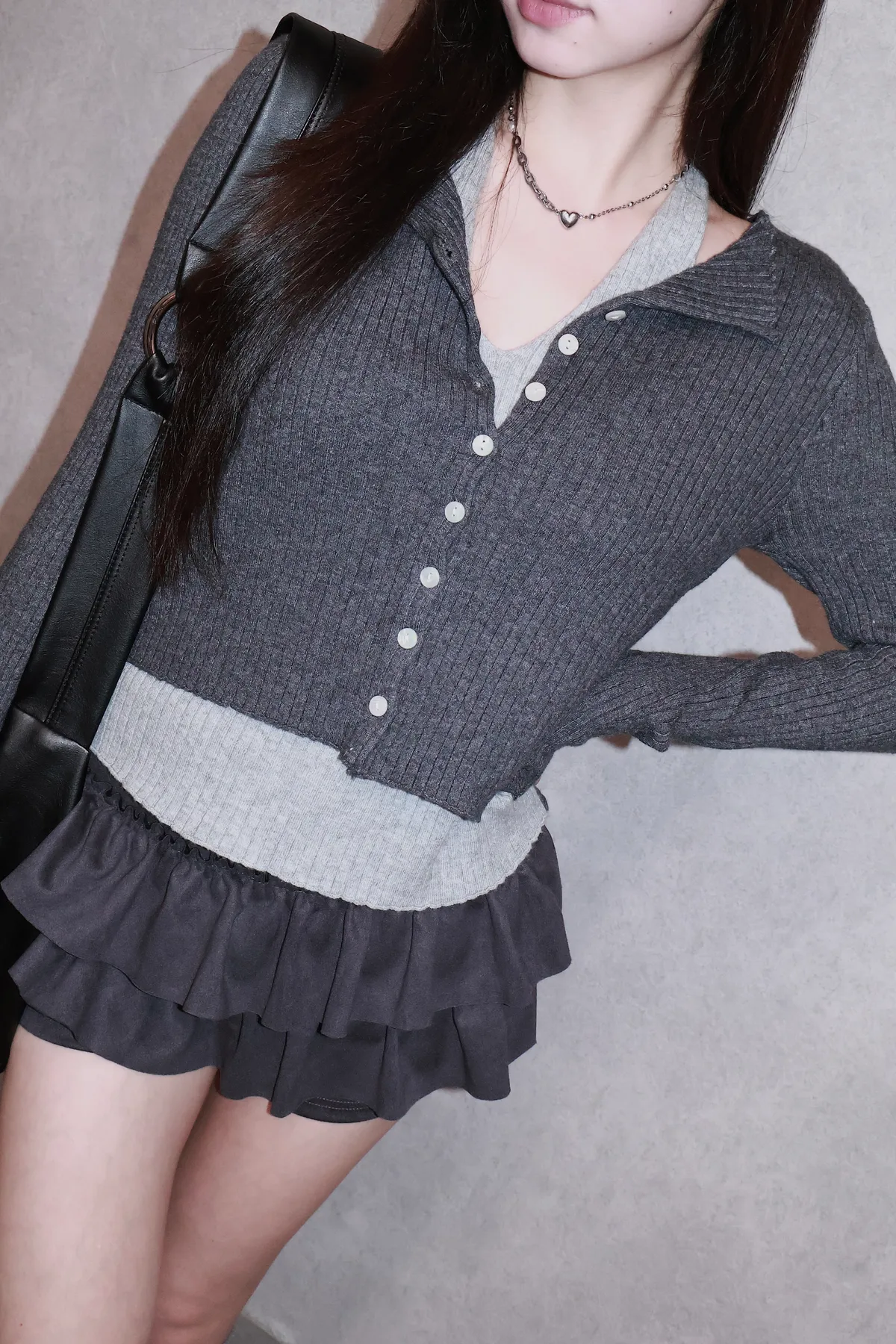 🇰🇷雲映詩篇假兩件坑條上衣(灰/杏/咖)