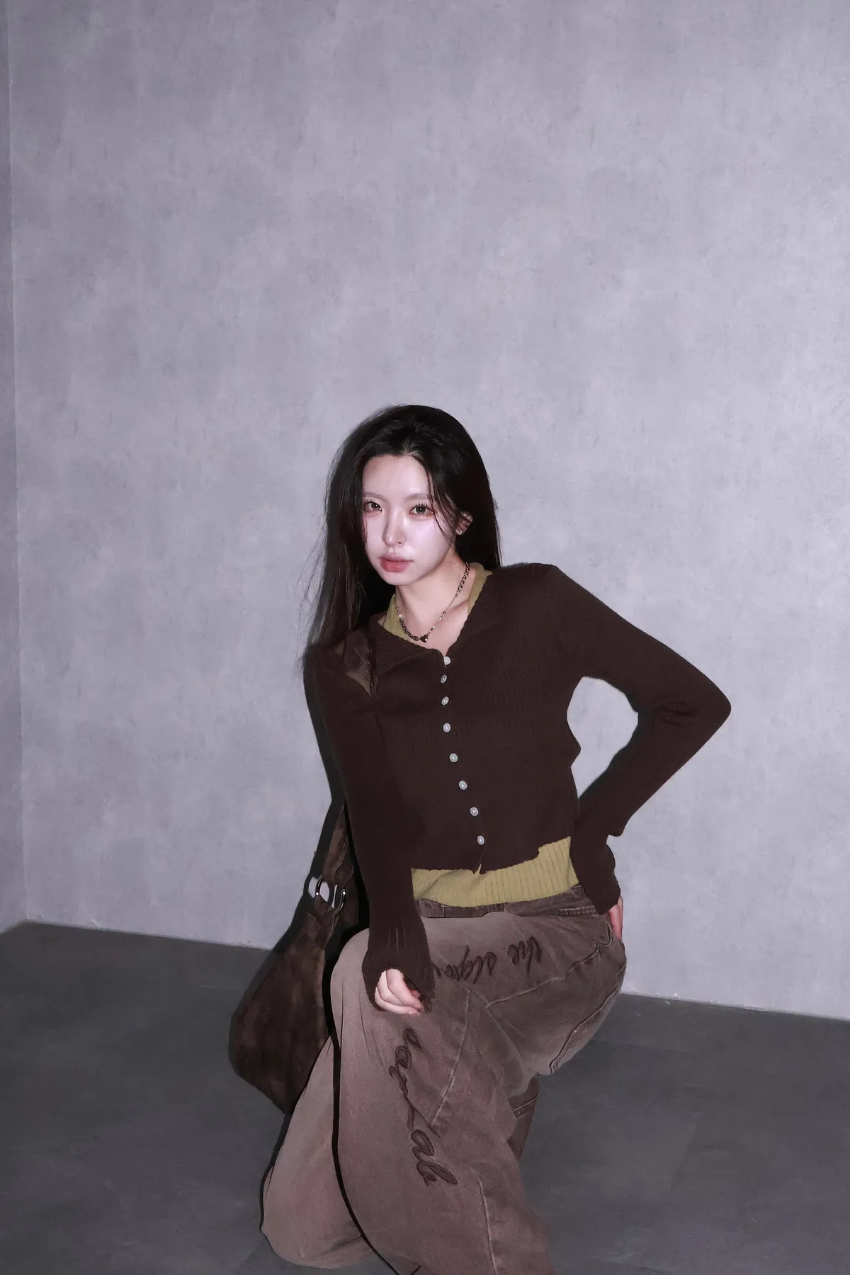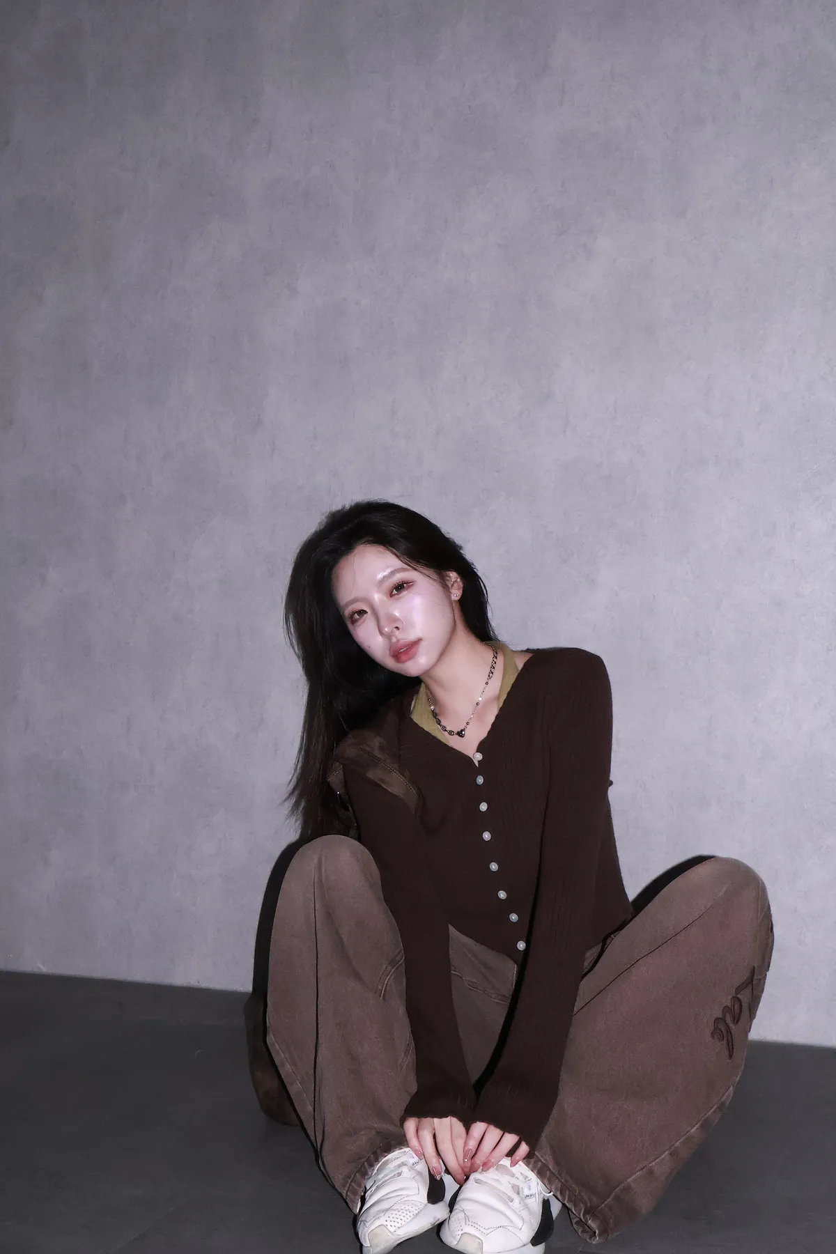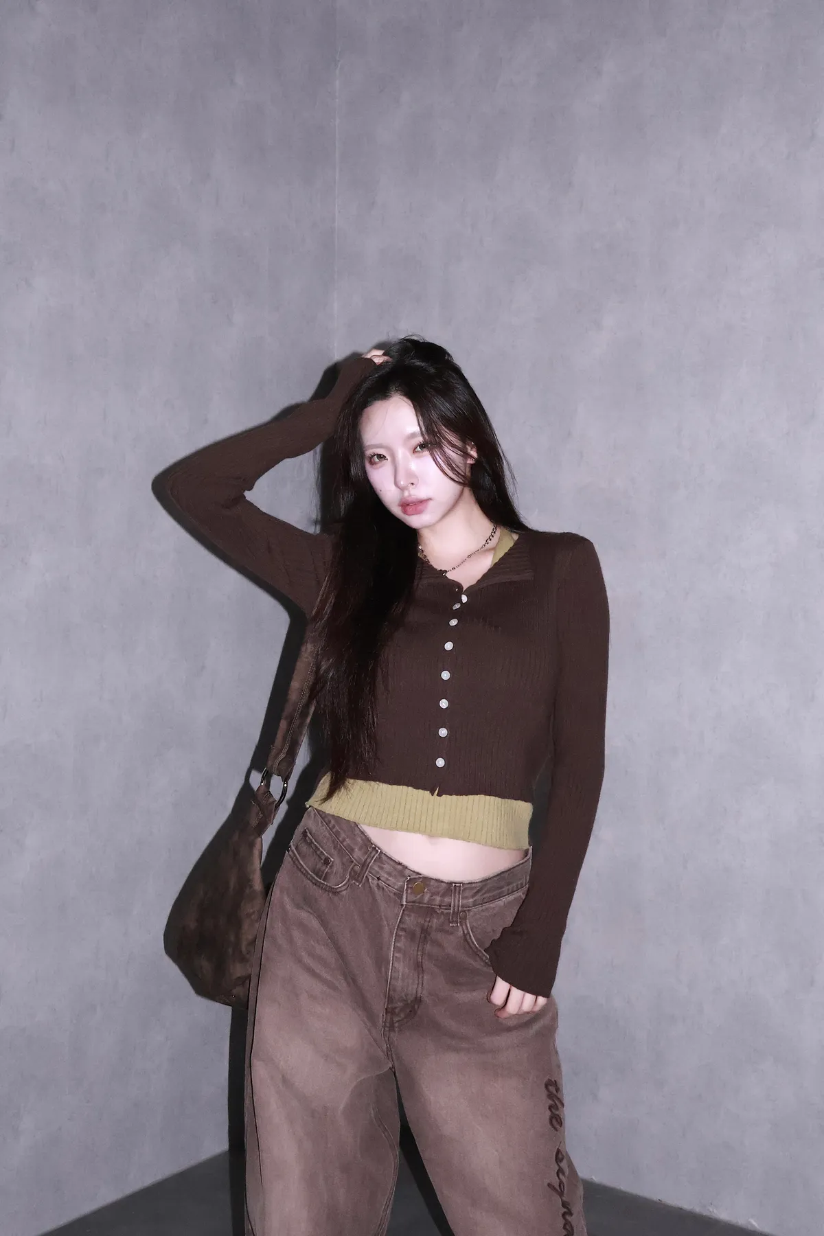 🇰🇷雲映詩篇假兩件坑條上衣(灰/杏/咖)