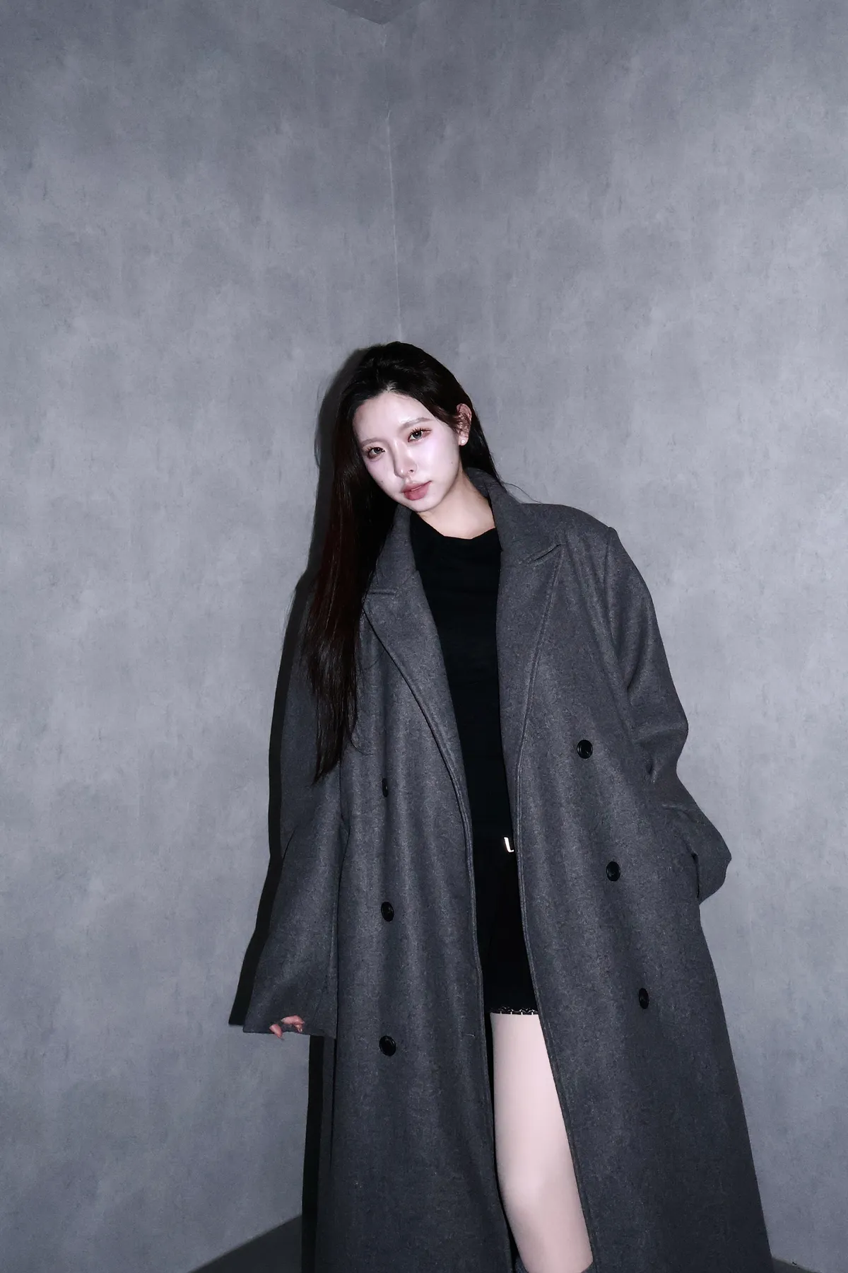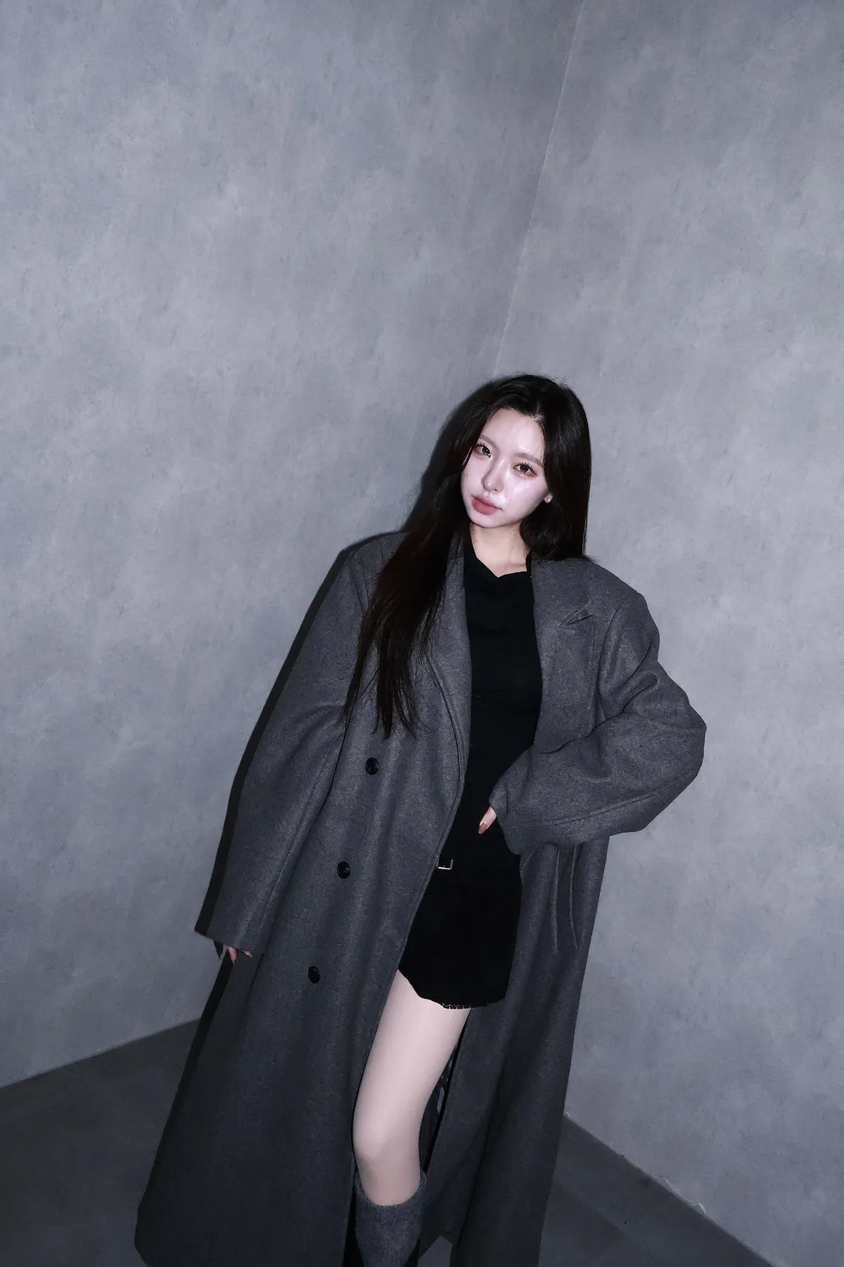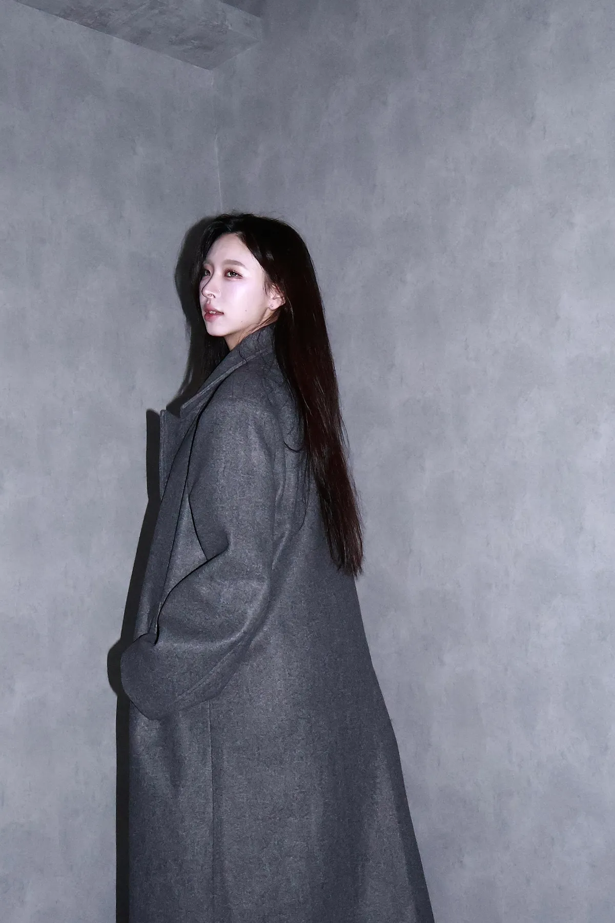 🇰🇷(智英大推)霜影曉語覆寒夜羊毛大衣(黑/灰)