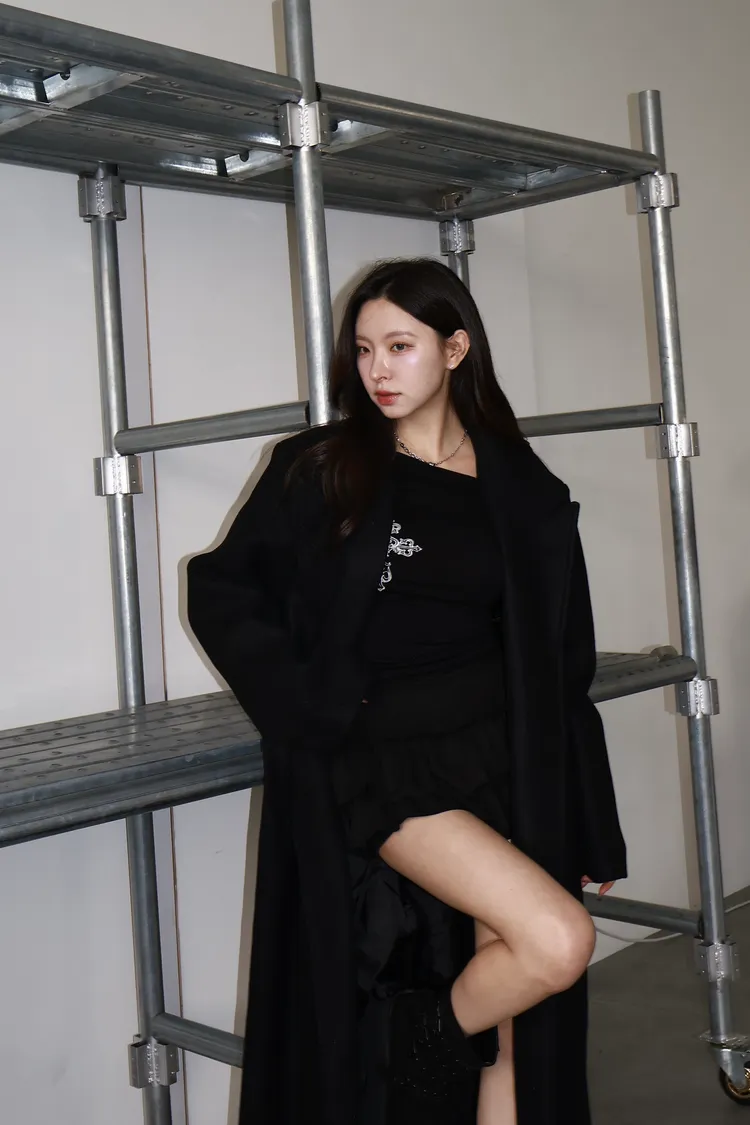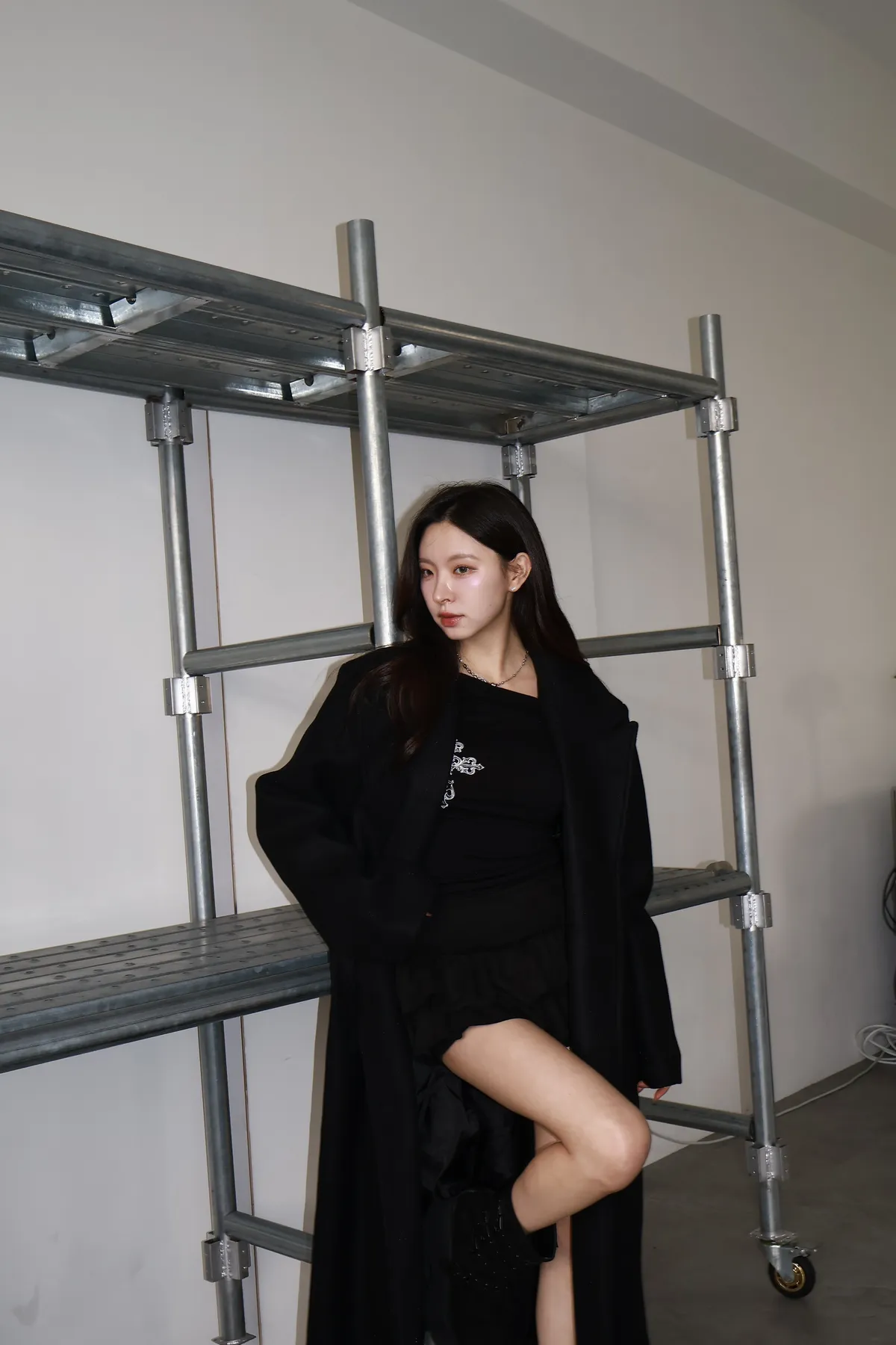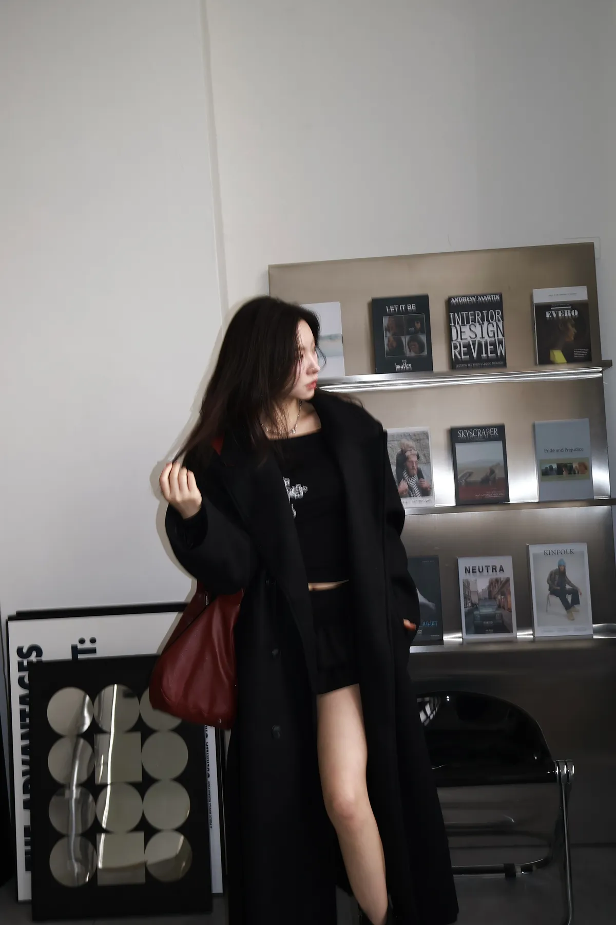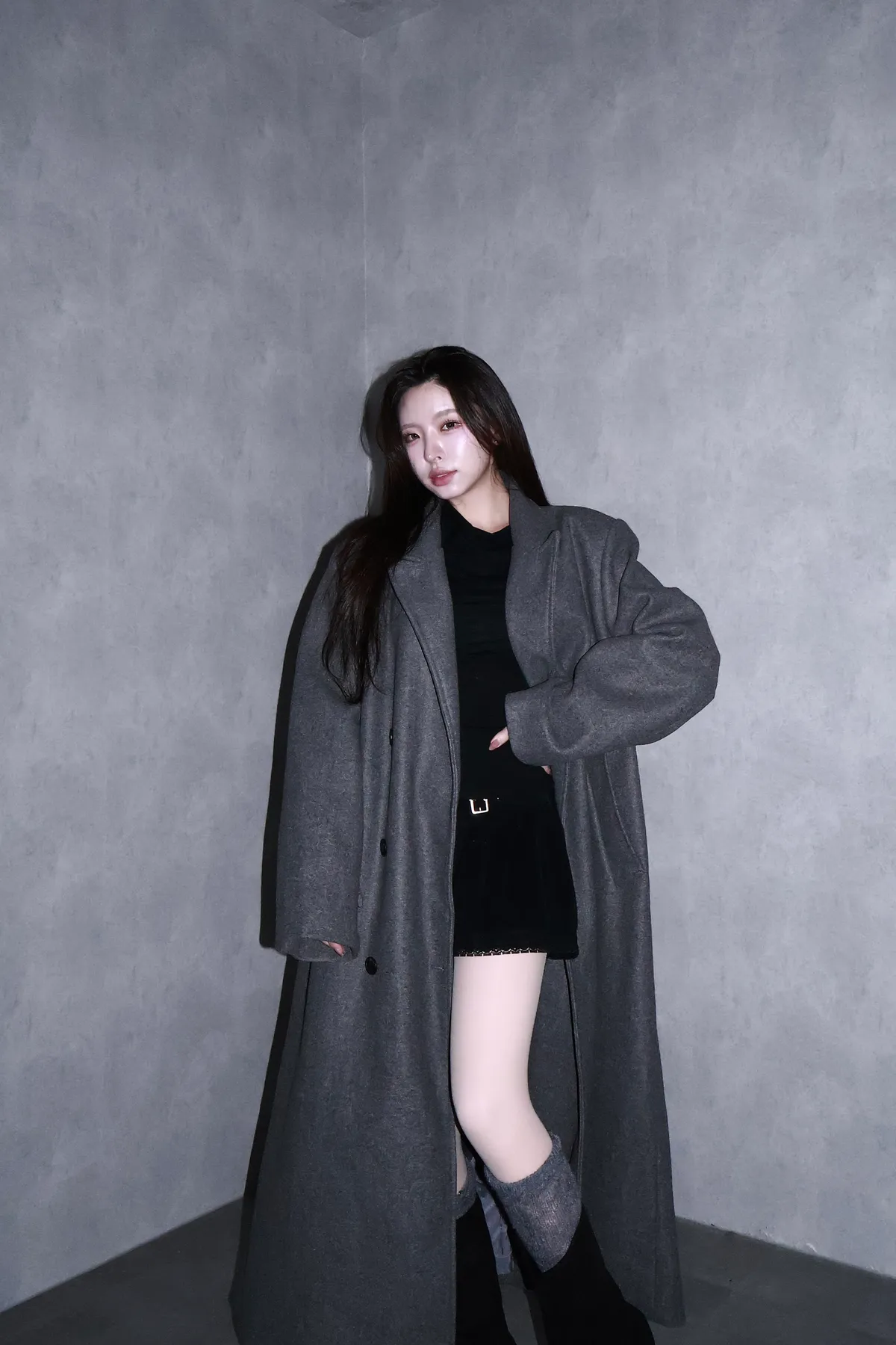 🇰🇷(智英大推)霜影曉語覆寒夜羊毛大衣(黑/灰)