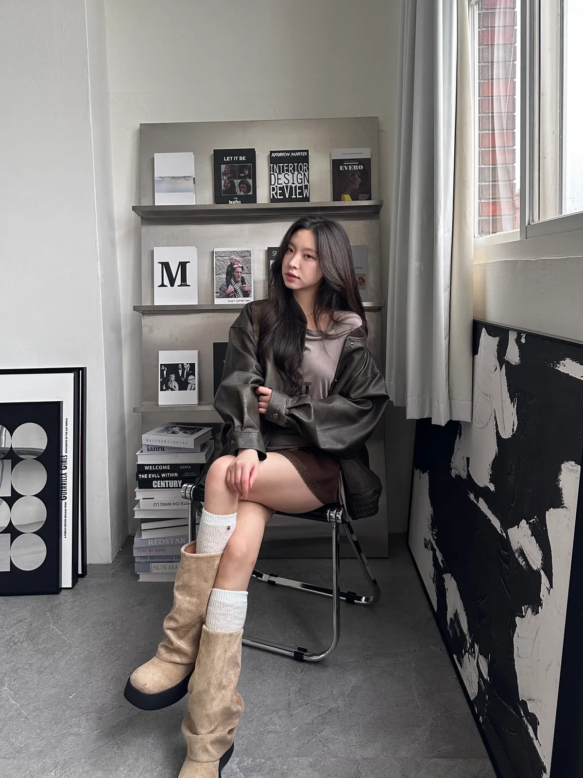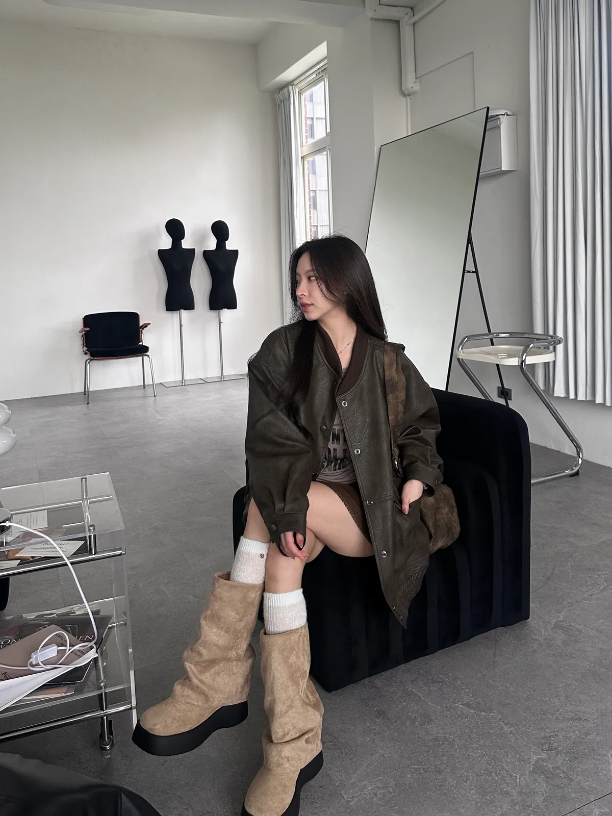 🇰🇷(熱銷回歸)復古摩登厚底麂皮中筒靴(黑/棕)(23-25)
