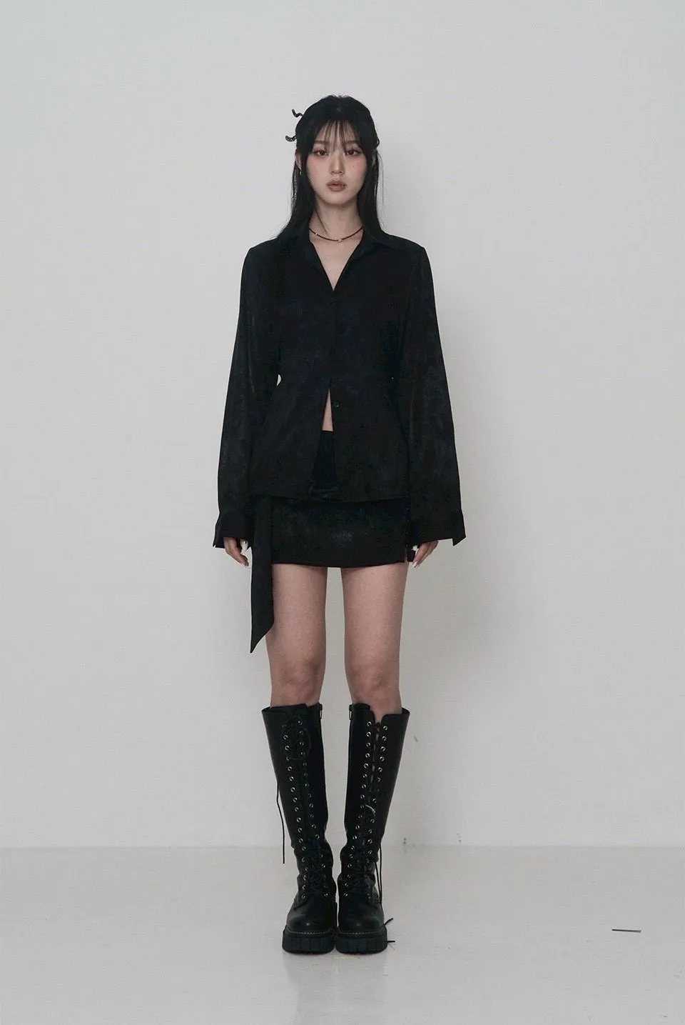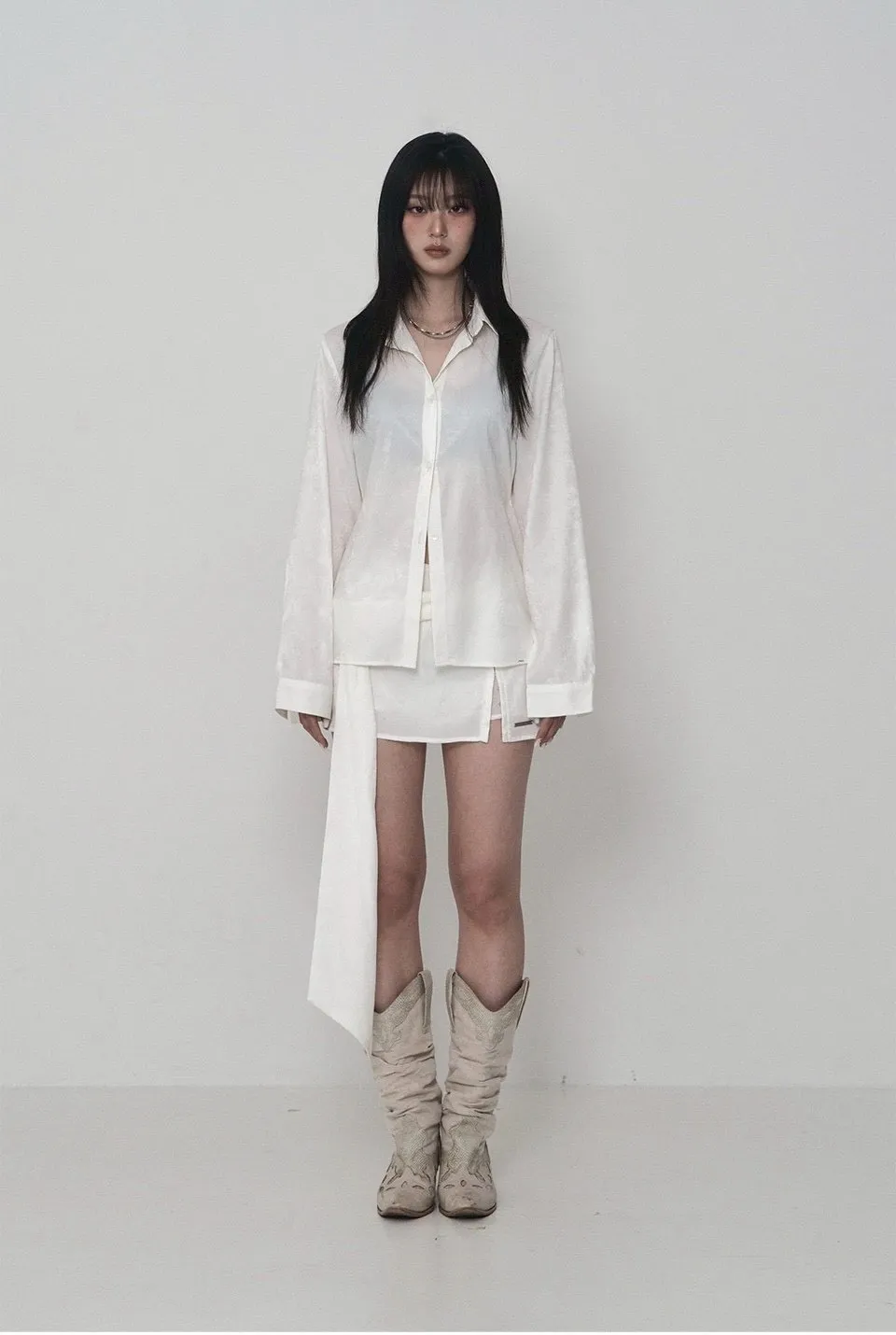 Jacquard Satin Set-Up Long Tie Hook Skirt