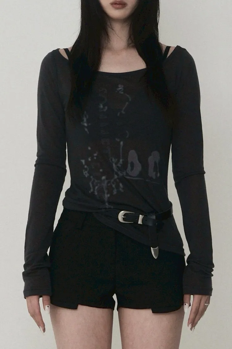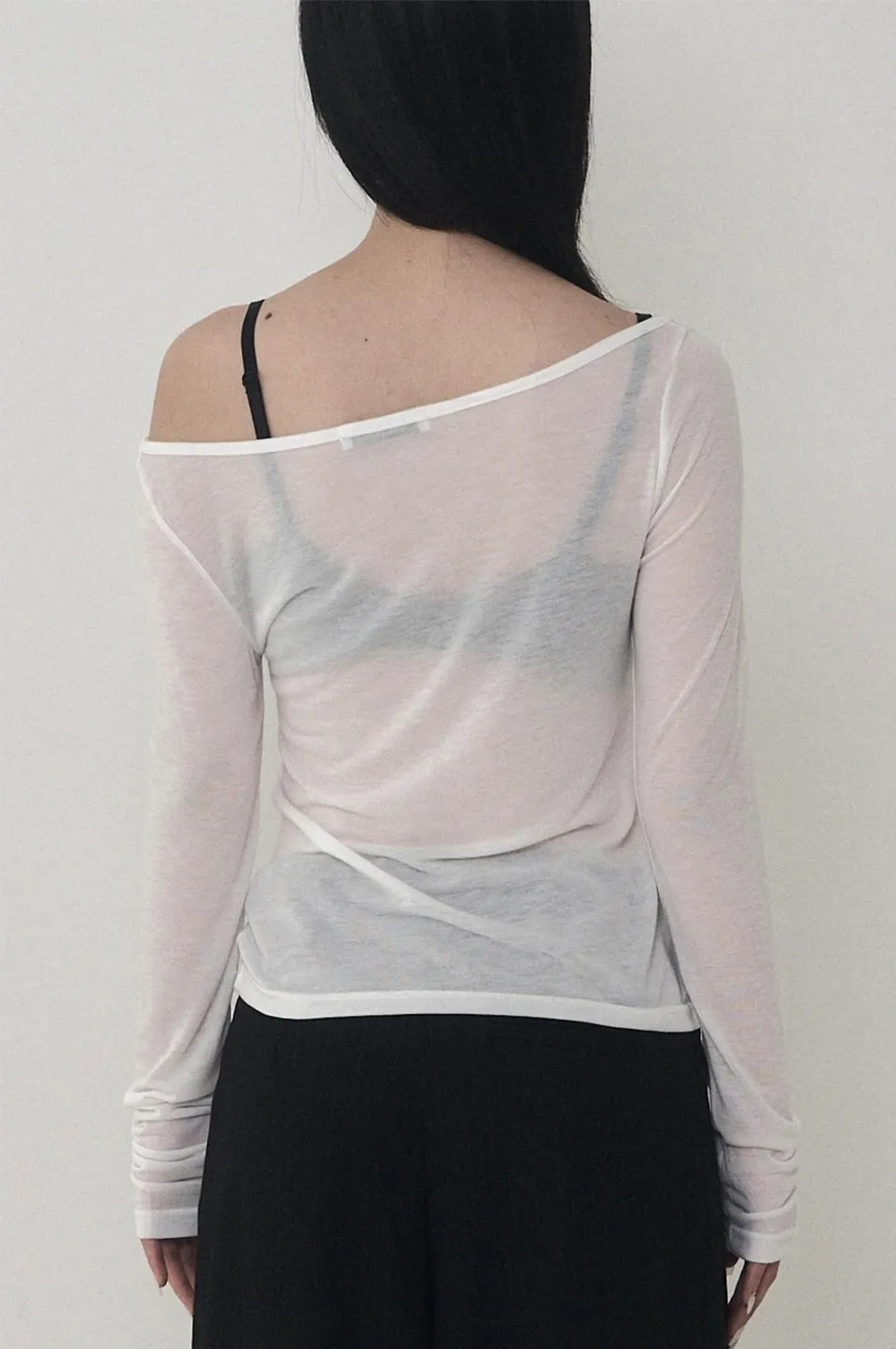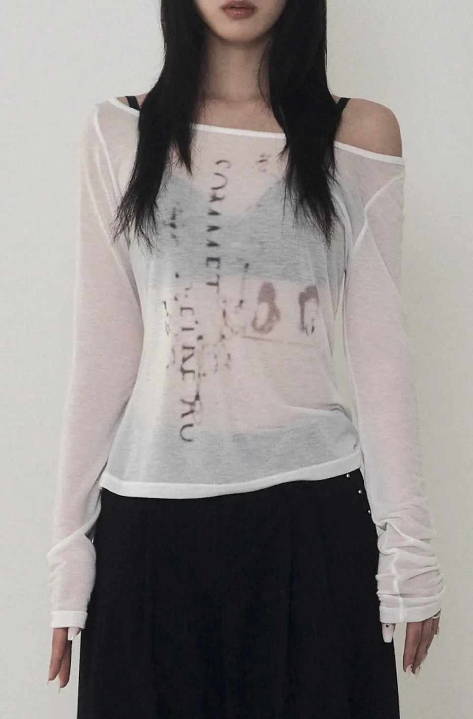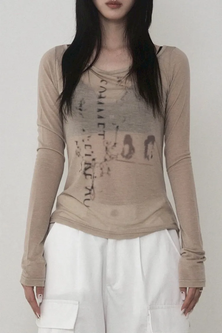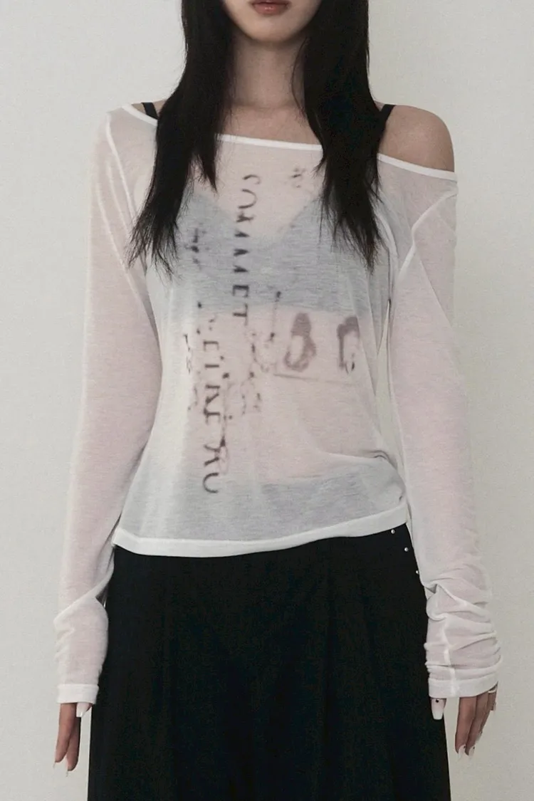 Lettering Logo Boat Neck See-Through T-shirt