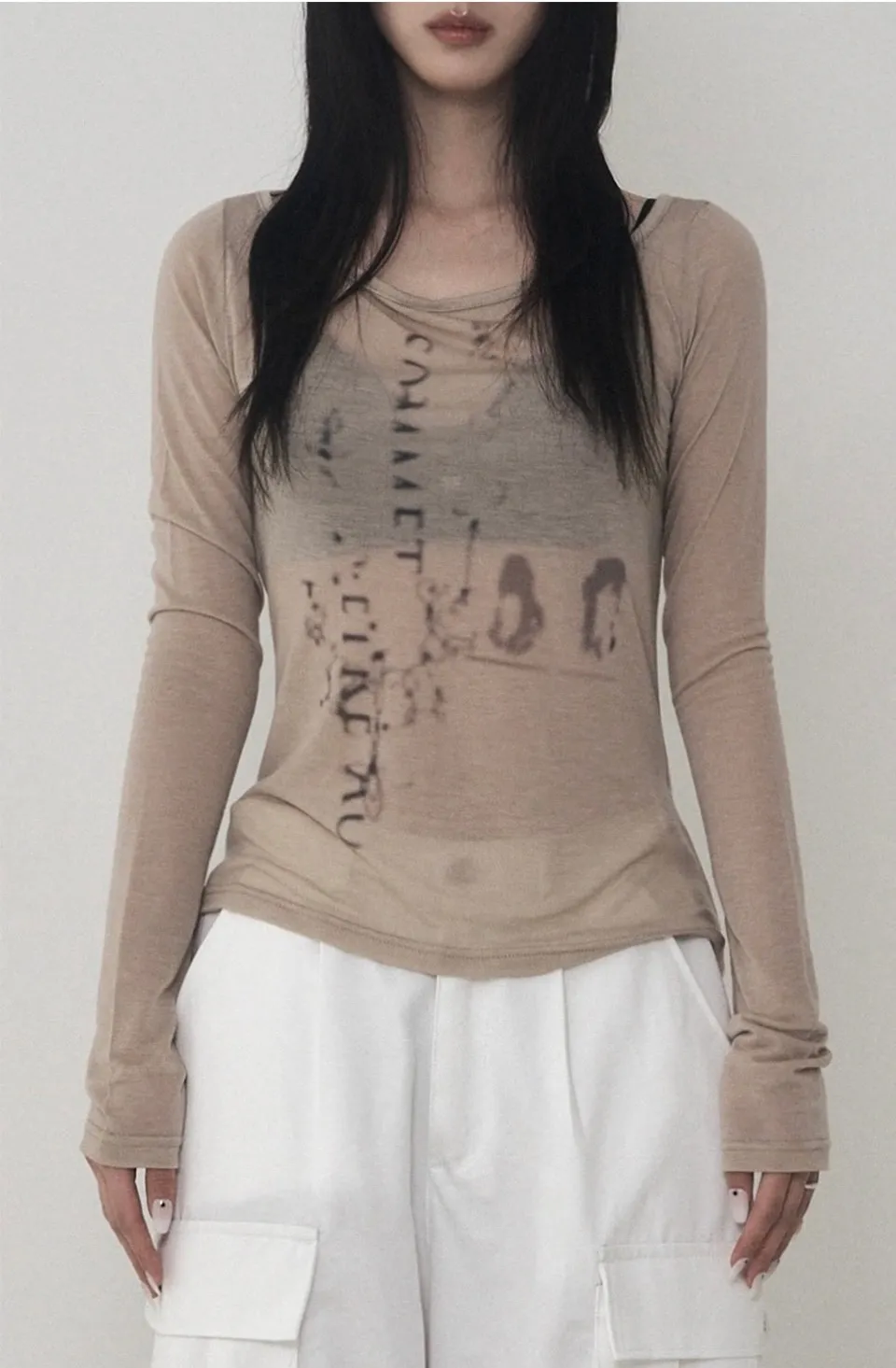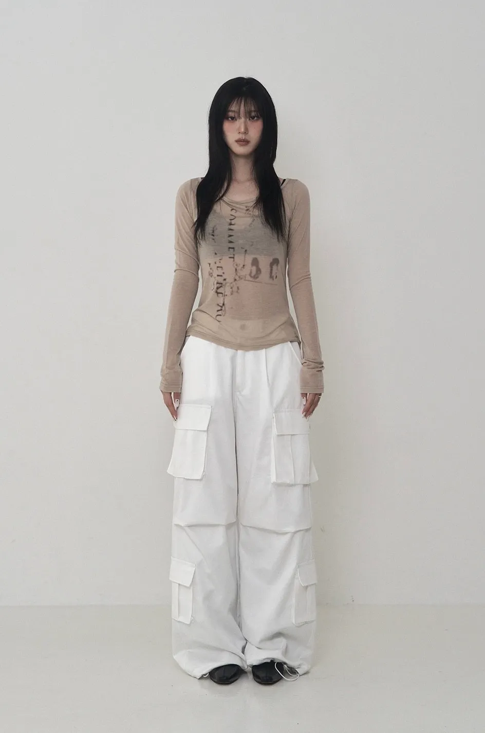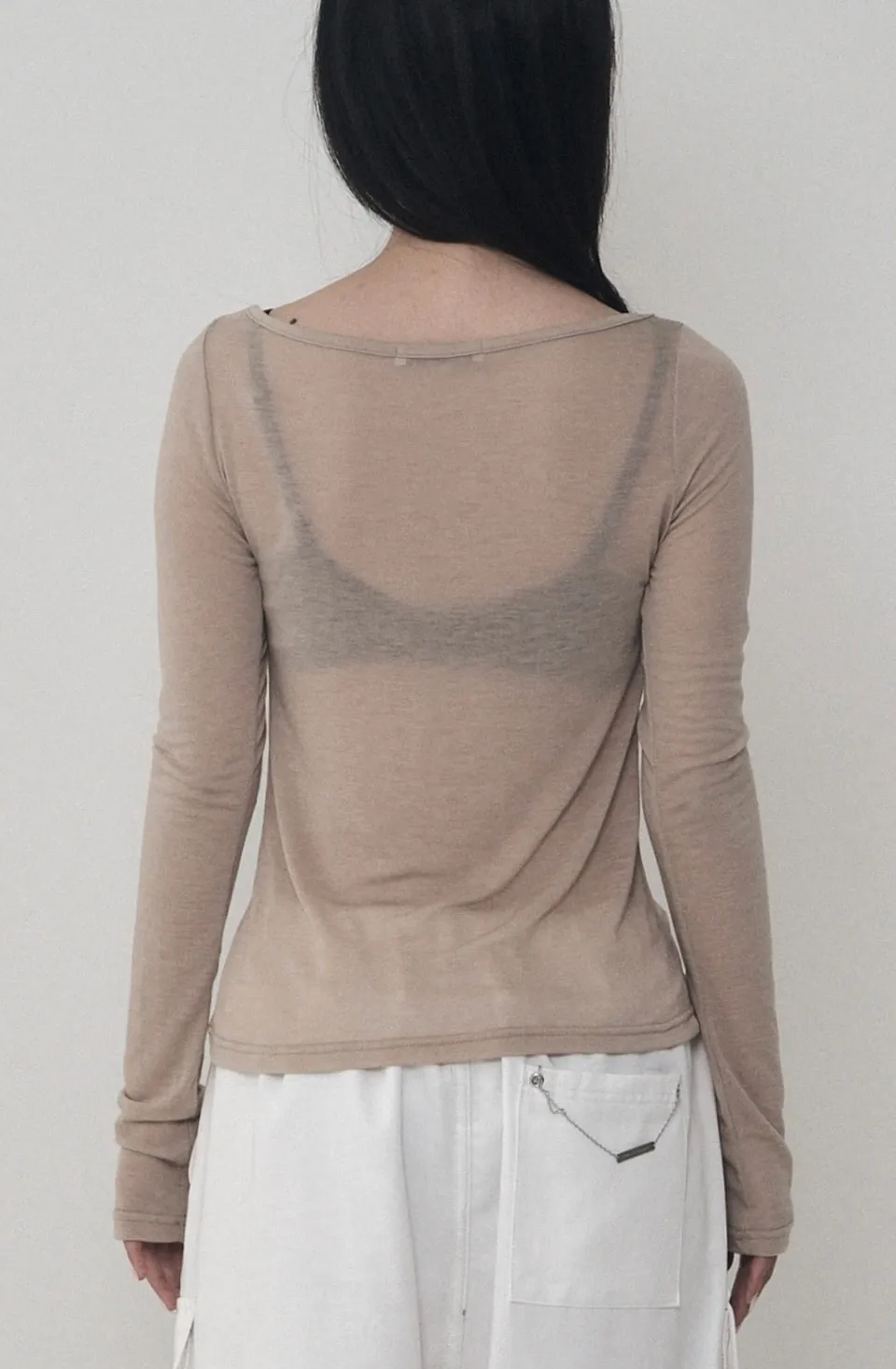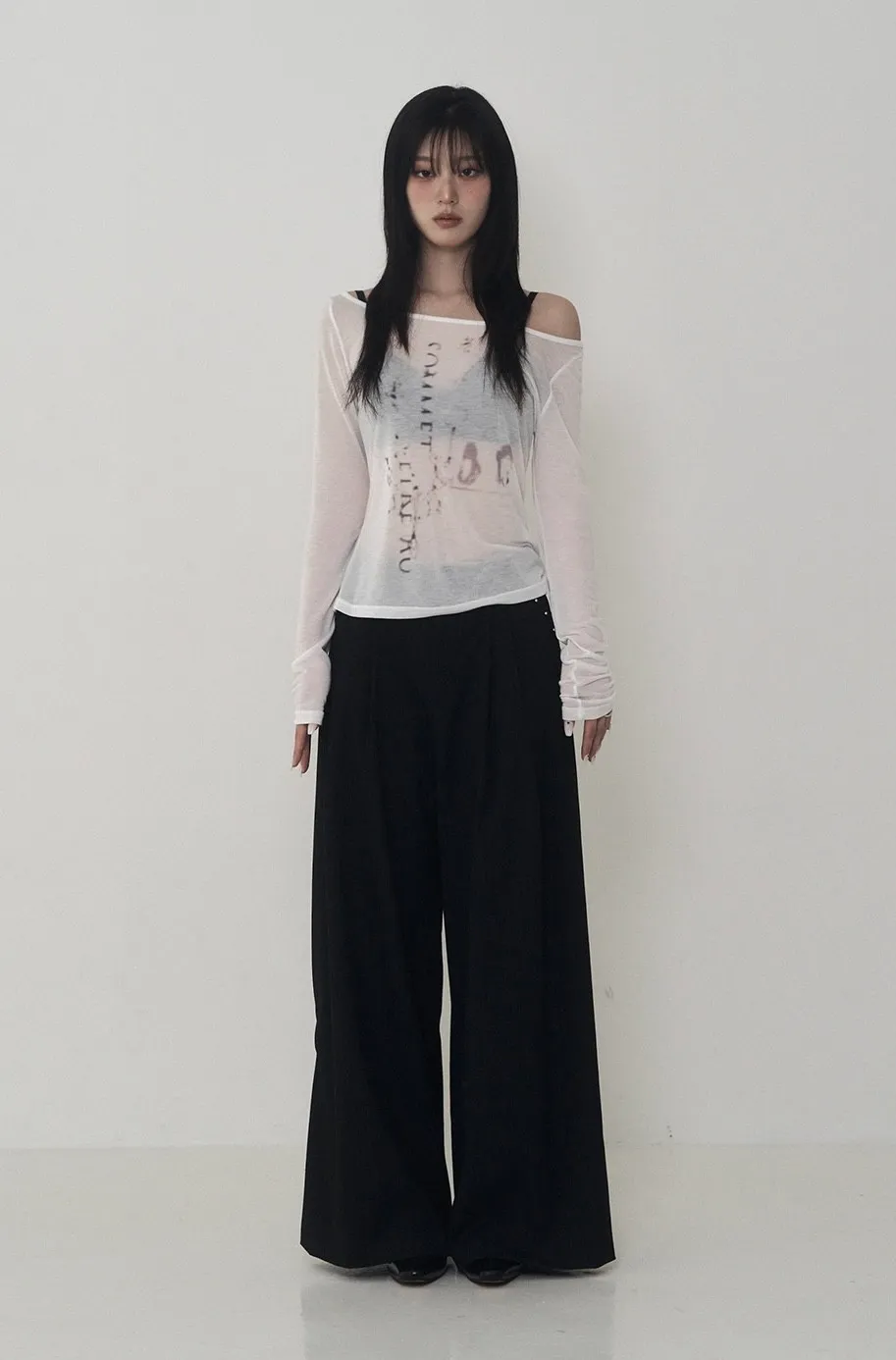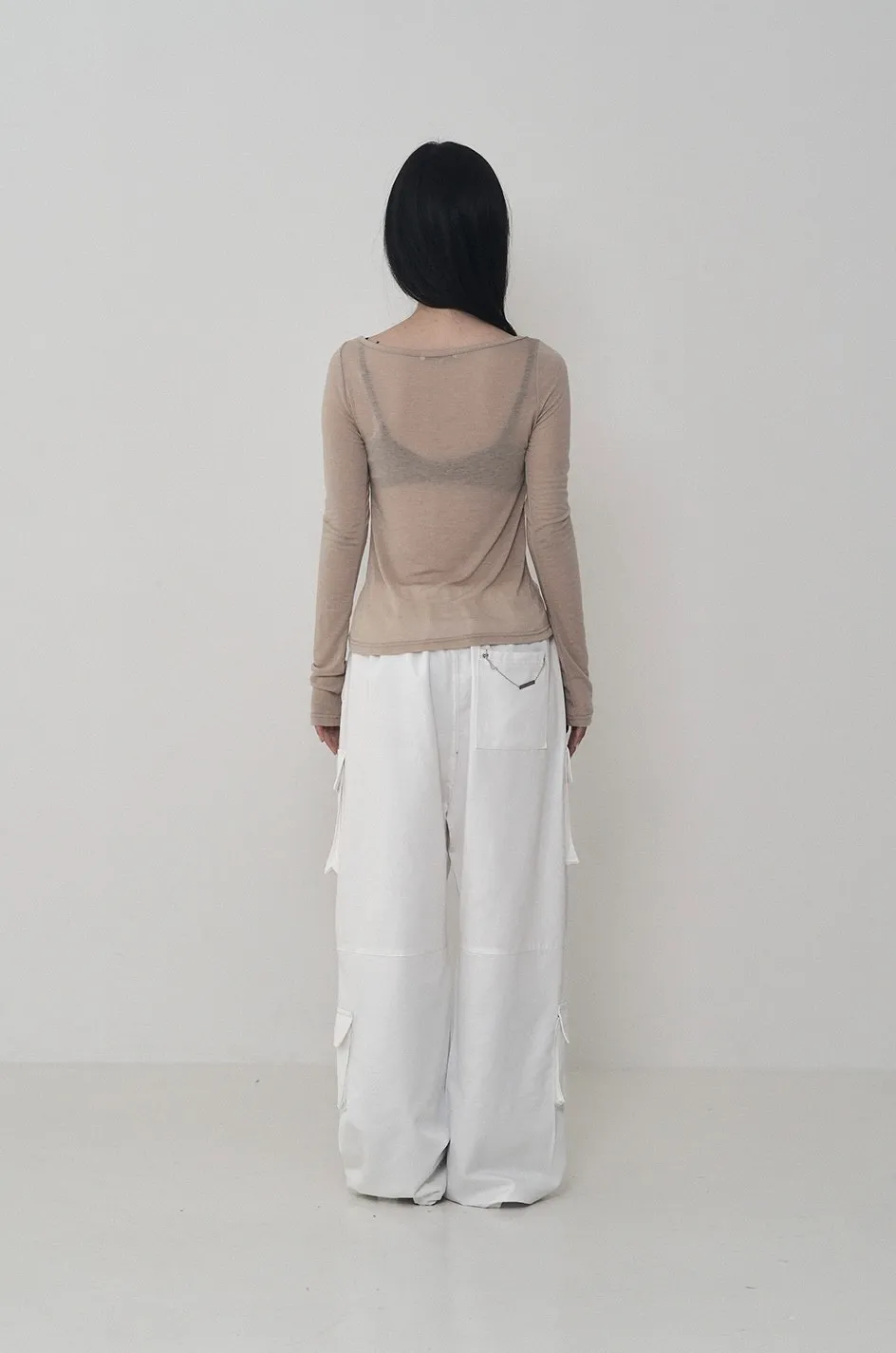 Lettering Logo Boat Neck See-Through T-shirt