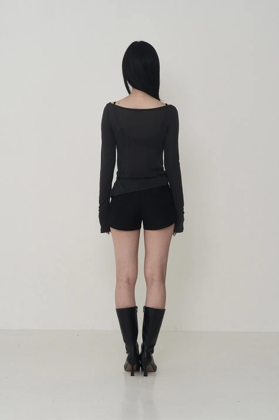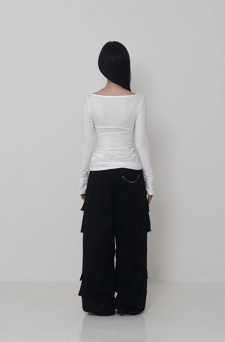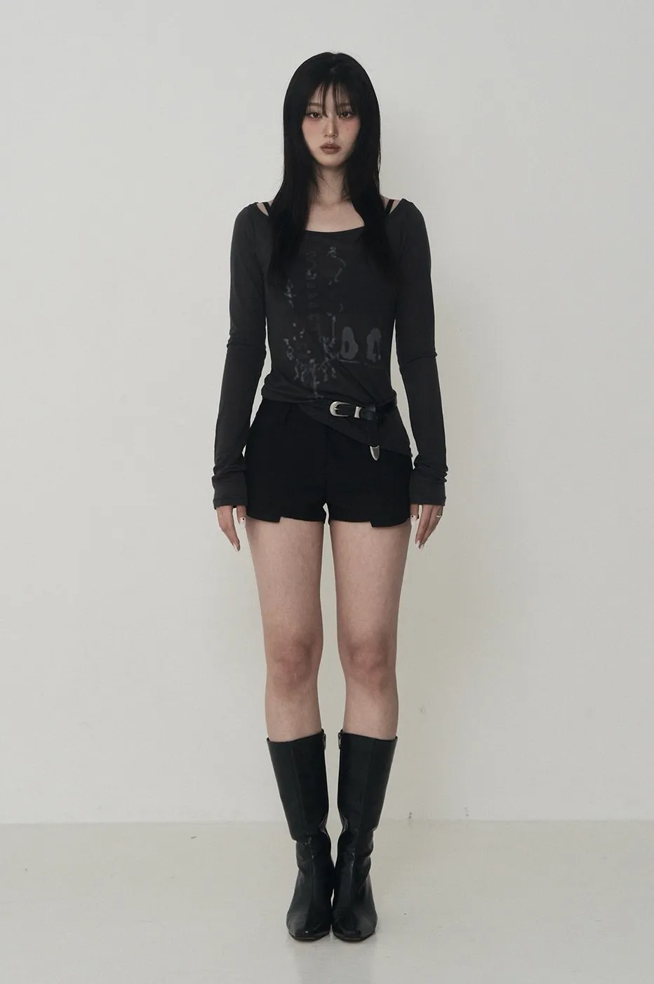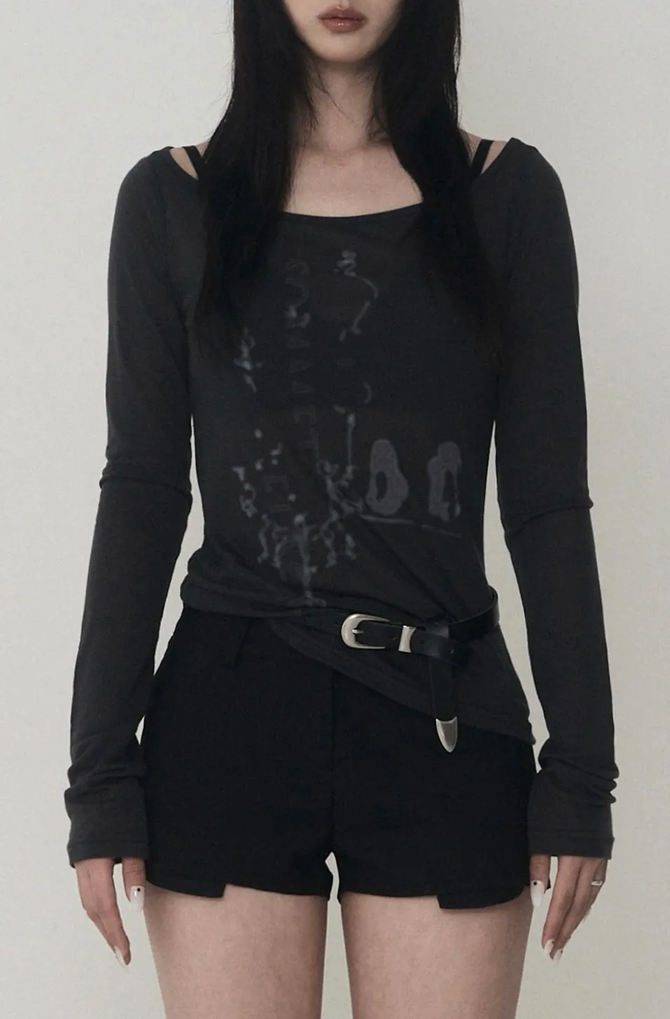 Lettering Logo Boat Neck See-Through T-shirt