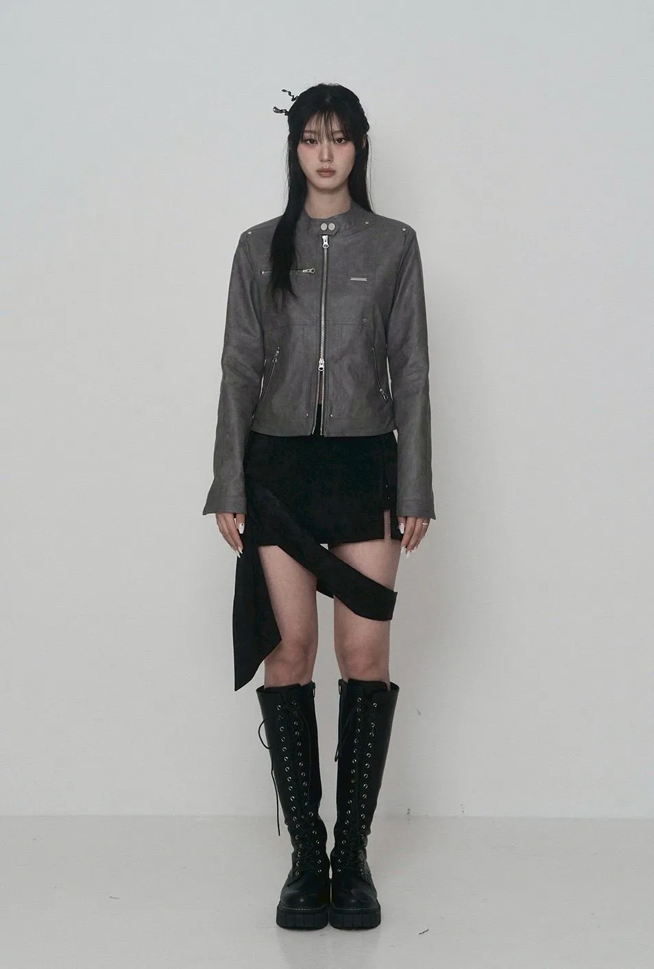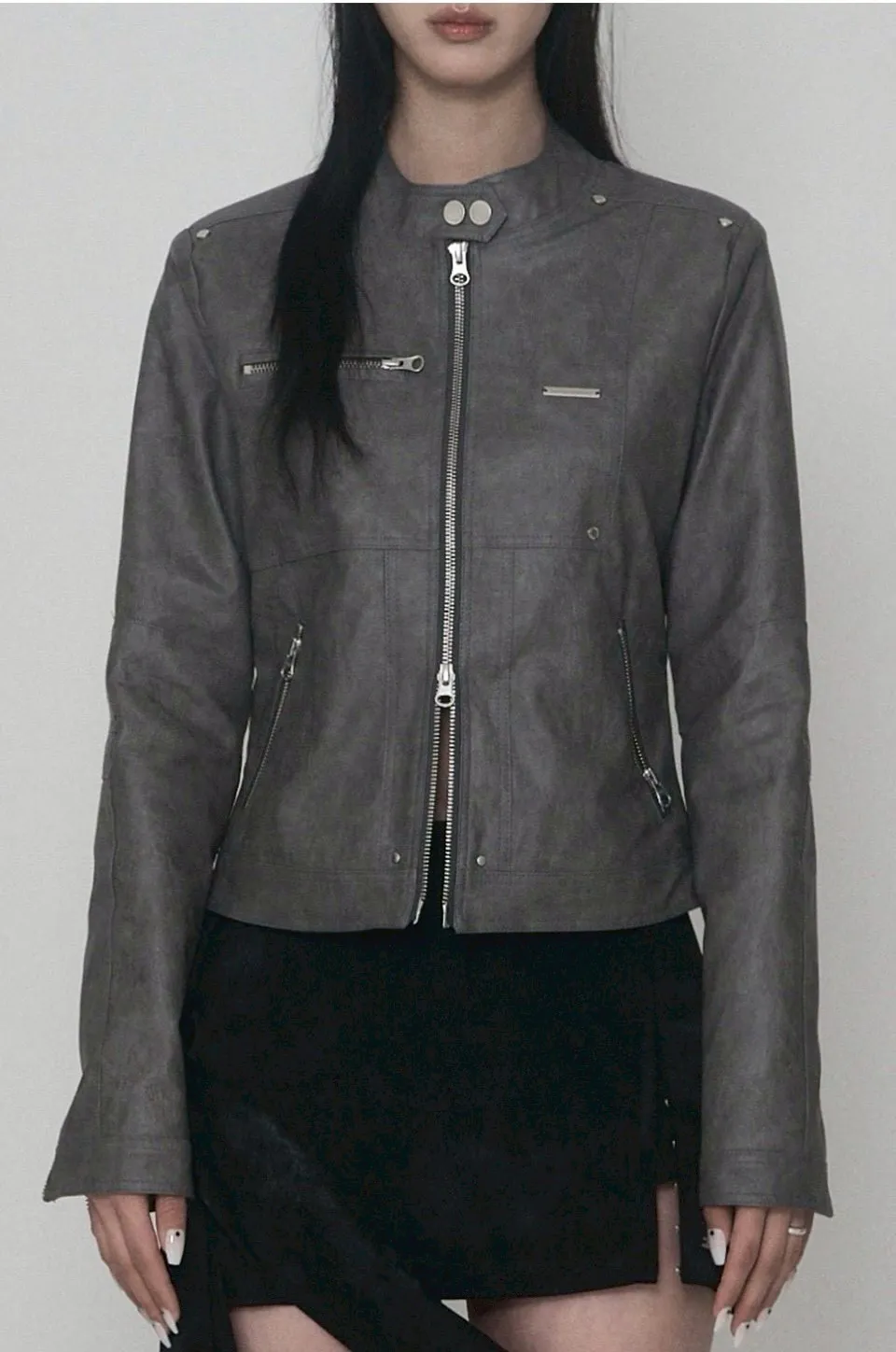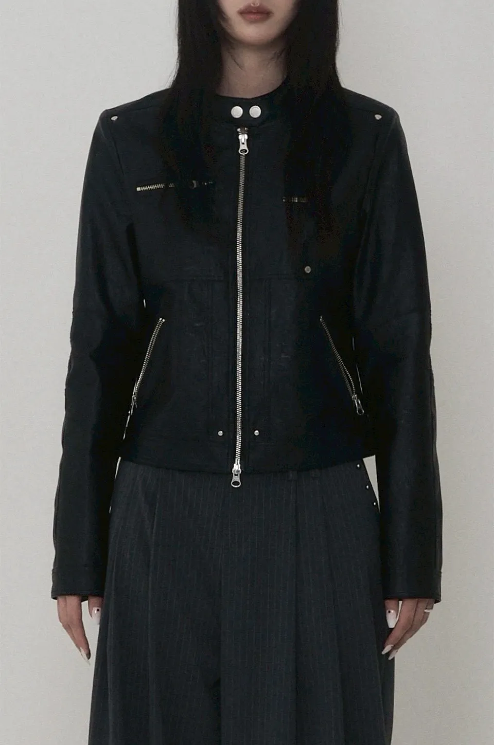 (BABYMONSTER 루카同款)Rivet Biker Leather Jacket