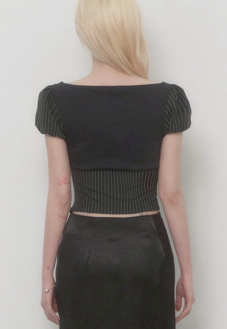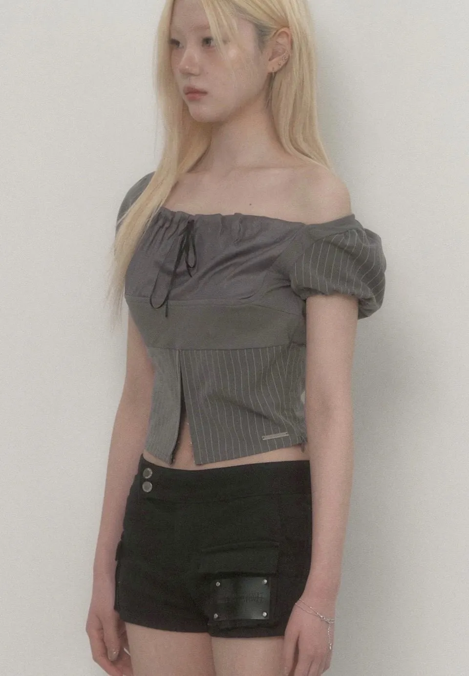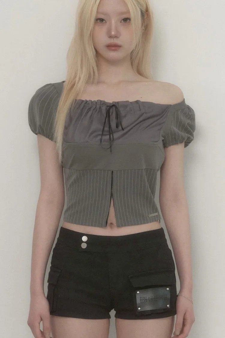 Stripe Lace-Up Puff Top