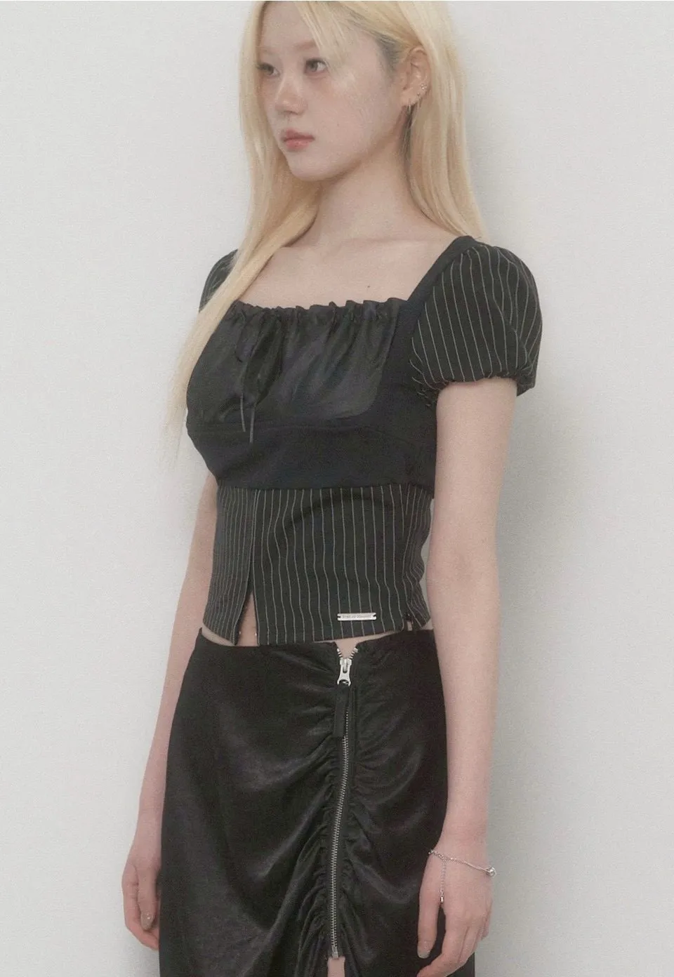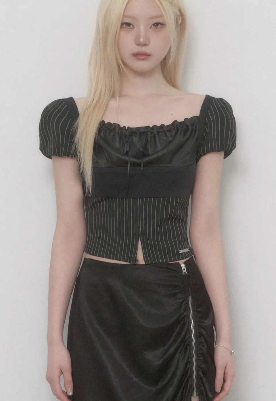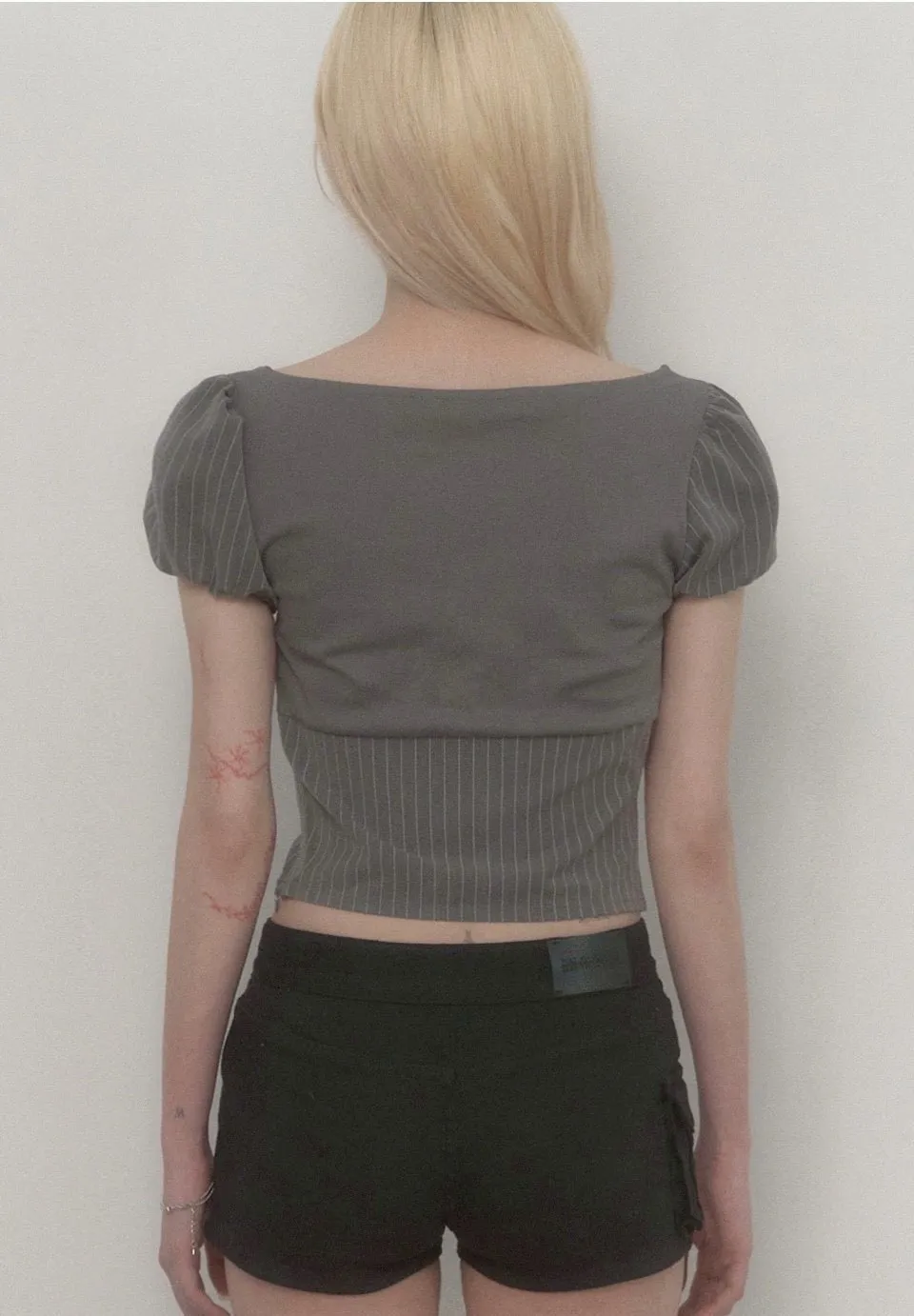 Stripe Lace-Up Puff Top