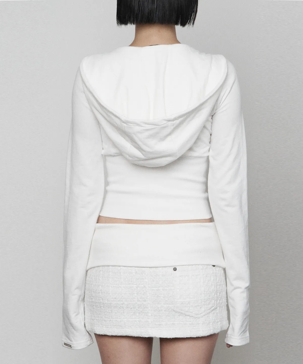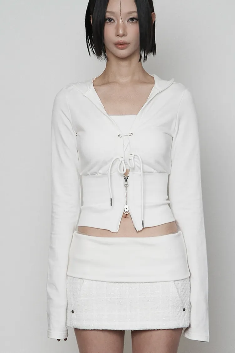 V-neck Corset Ribbed Hoodie zip-up