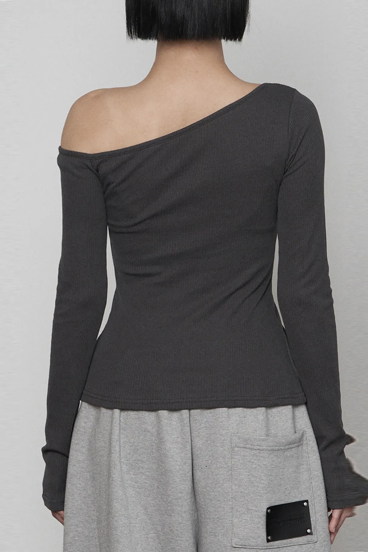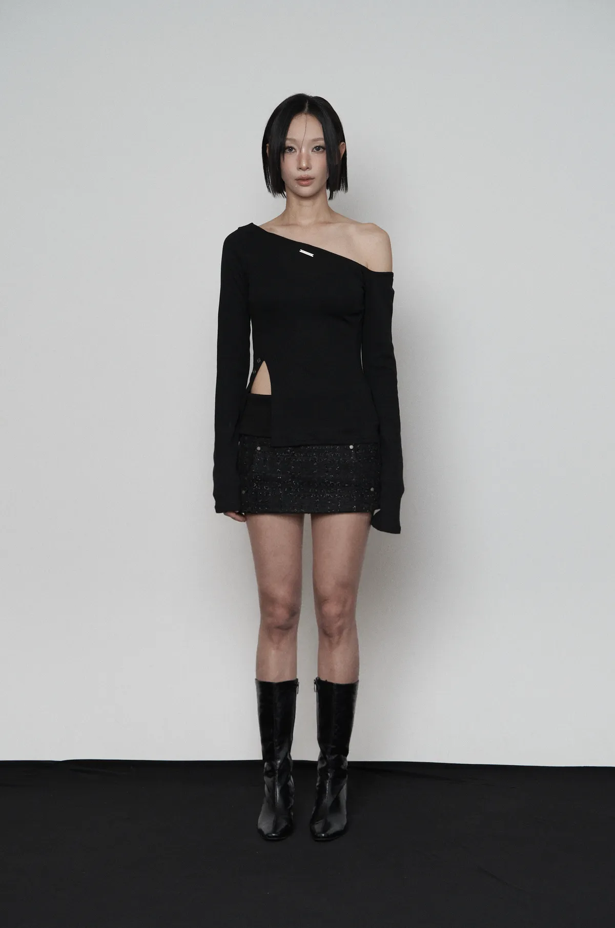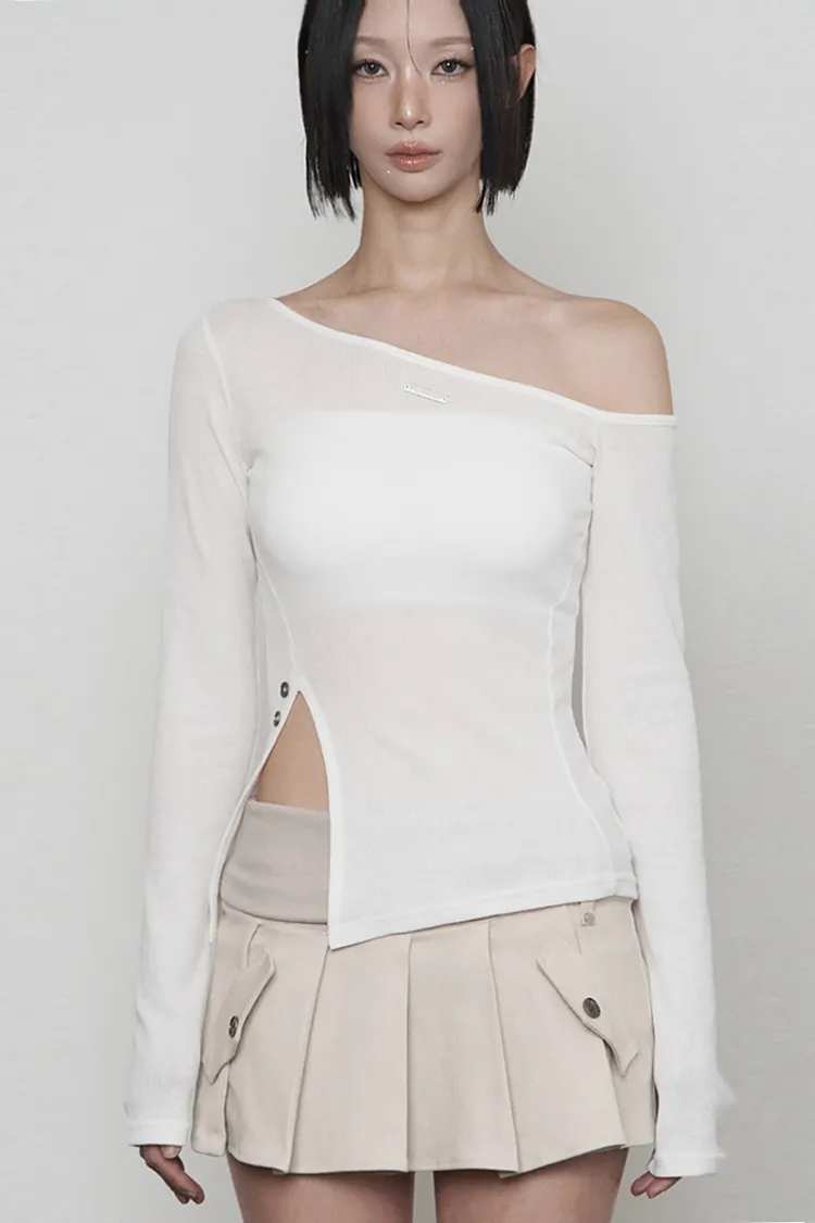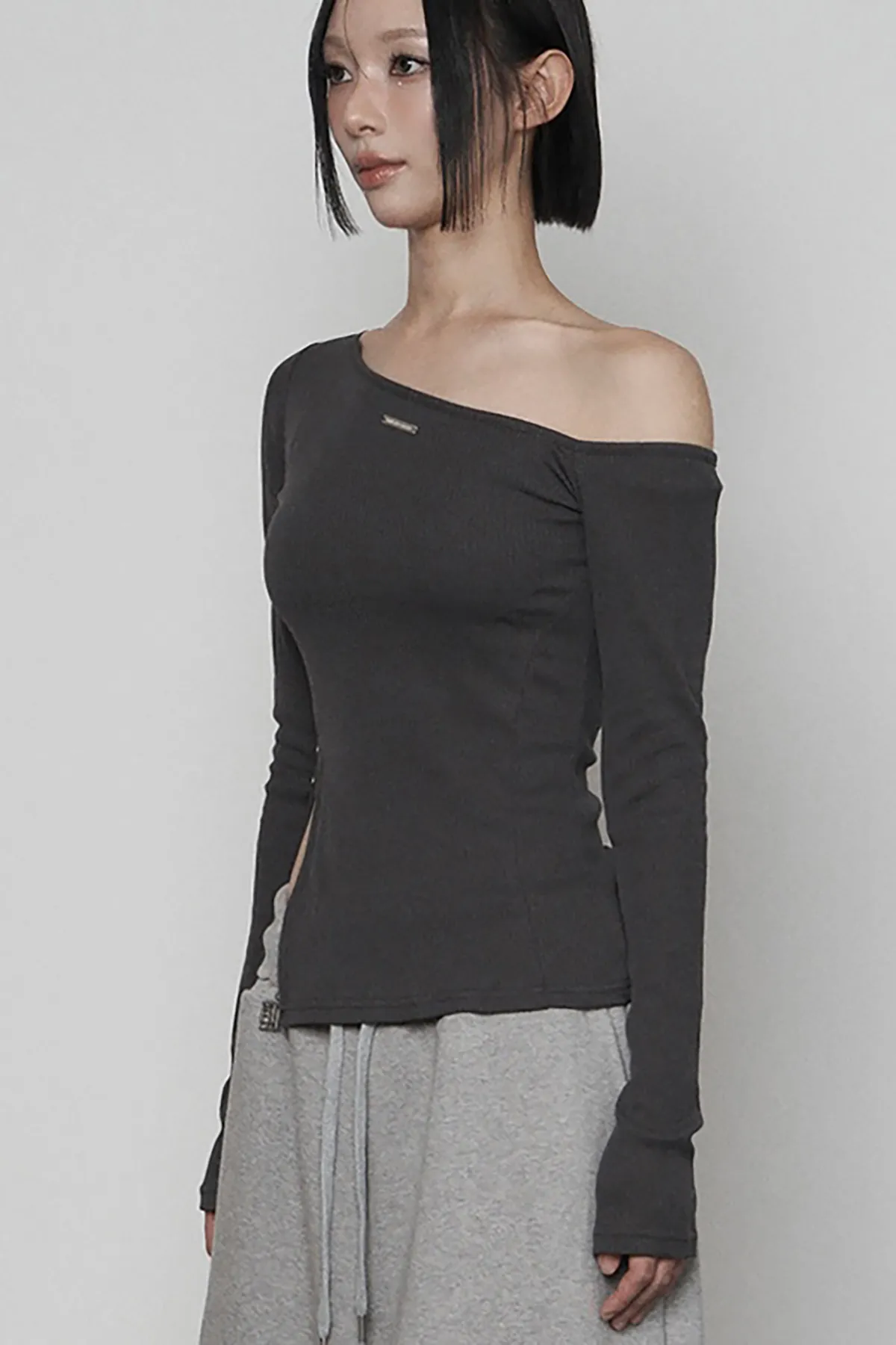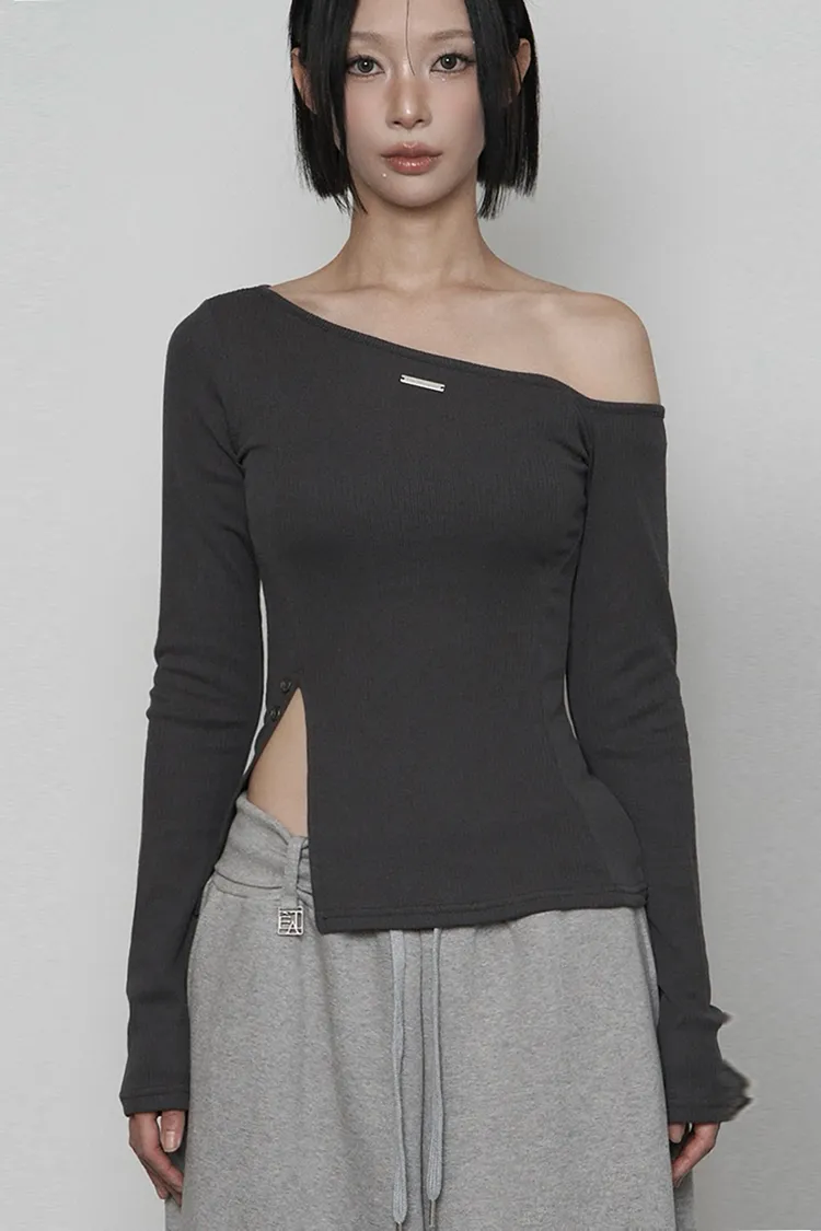 (闆娘pick)One-shoulder Basic Slit Long Sleeve