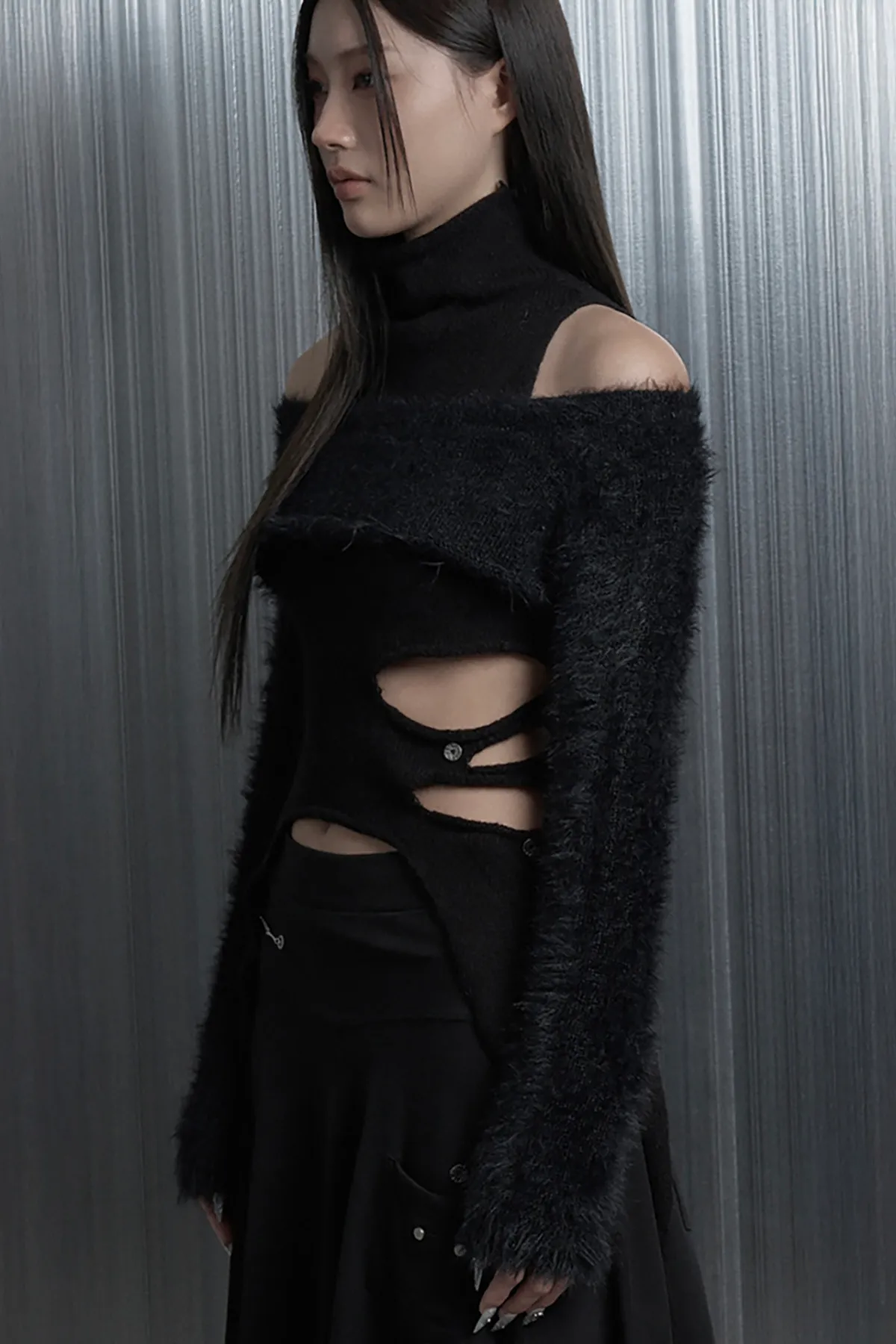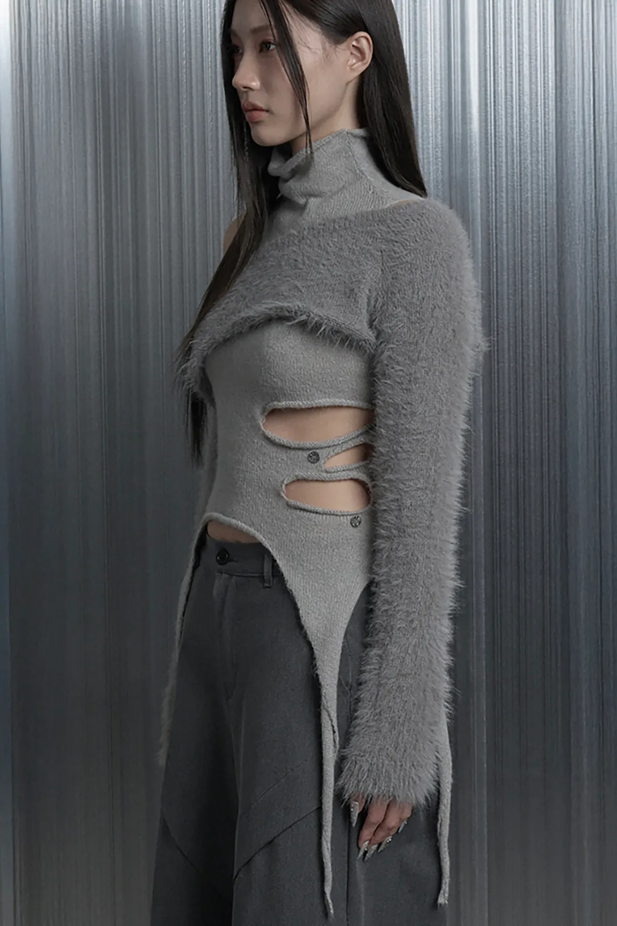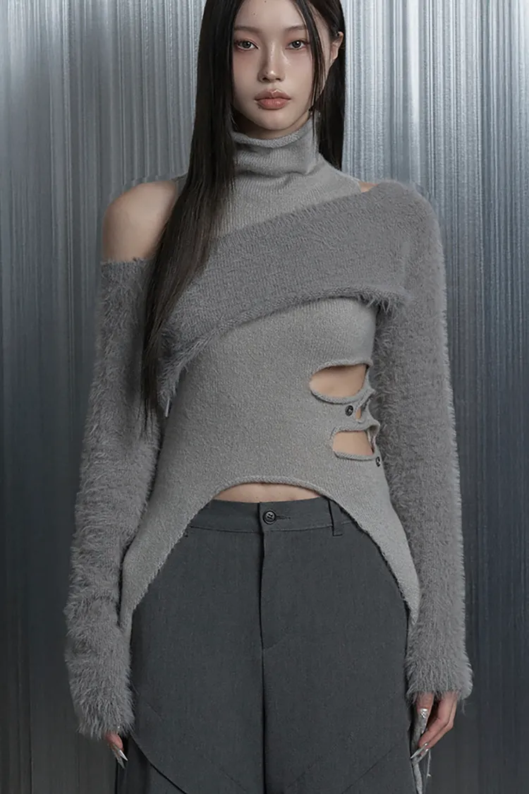 (闆娘pick)Cut-Out Halter Bolero Layered Kn